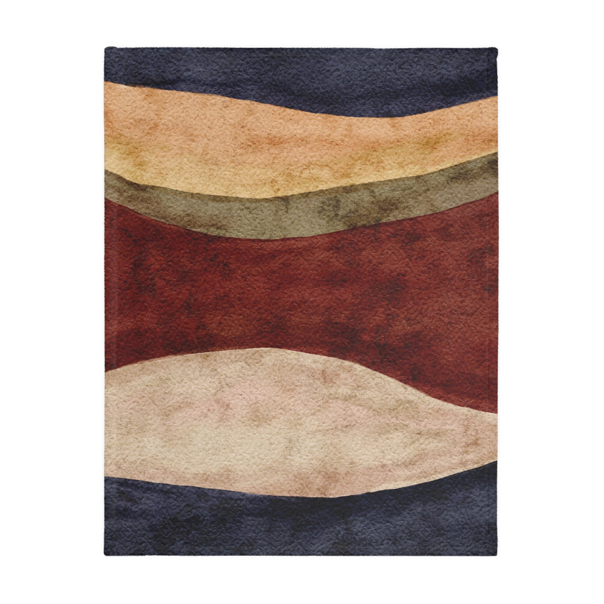 Bring warmth and modern style into your home with this matching abstract blanket and pillow set, designed in rich earth-tone waves that add depth, texture, and visual interest to any space. This design features flowing horizontal layers in warm neutrals, rust, clay, sand, and deep navy tones—perfect for creating a cozy, grounded atmosphere.