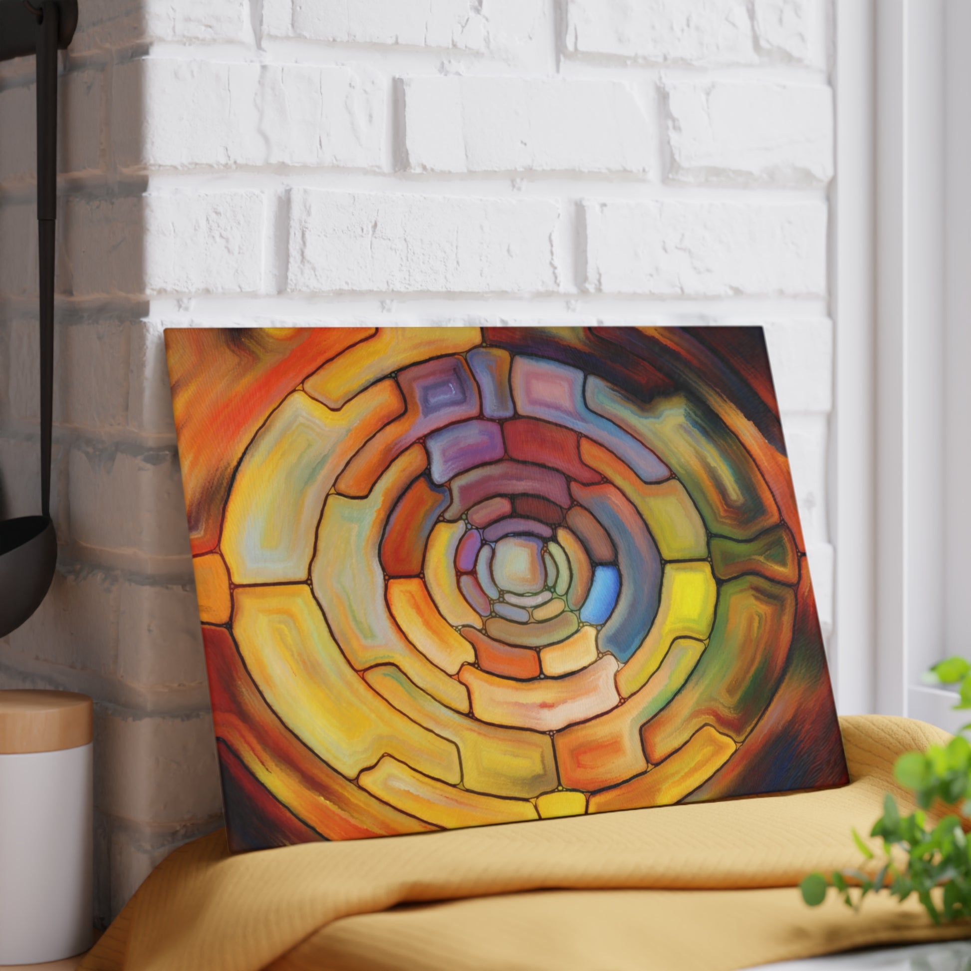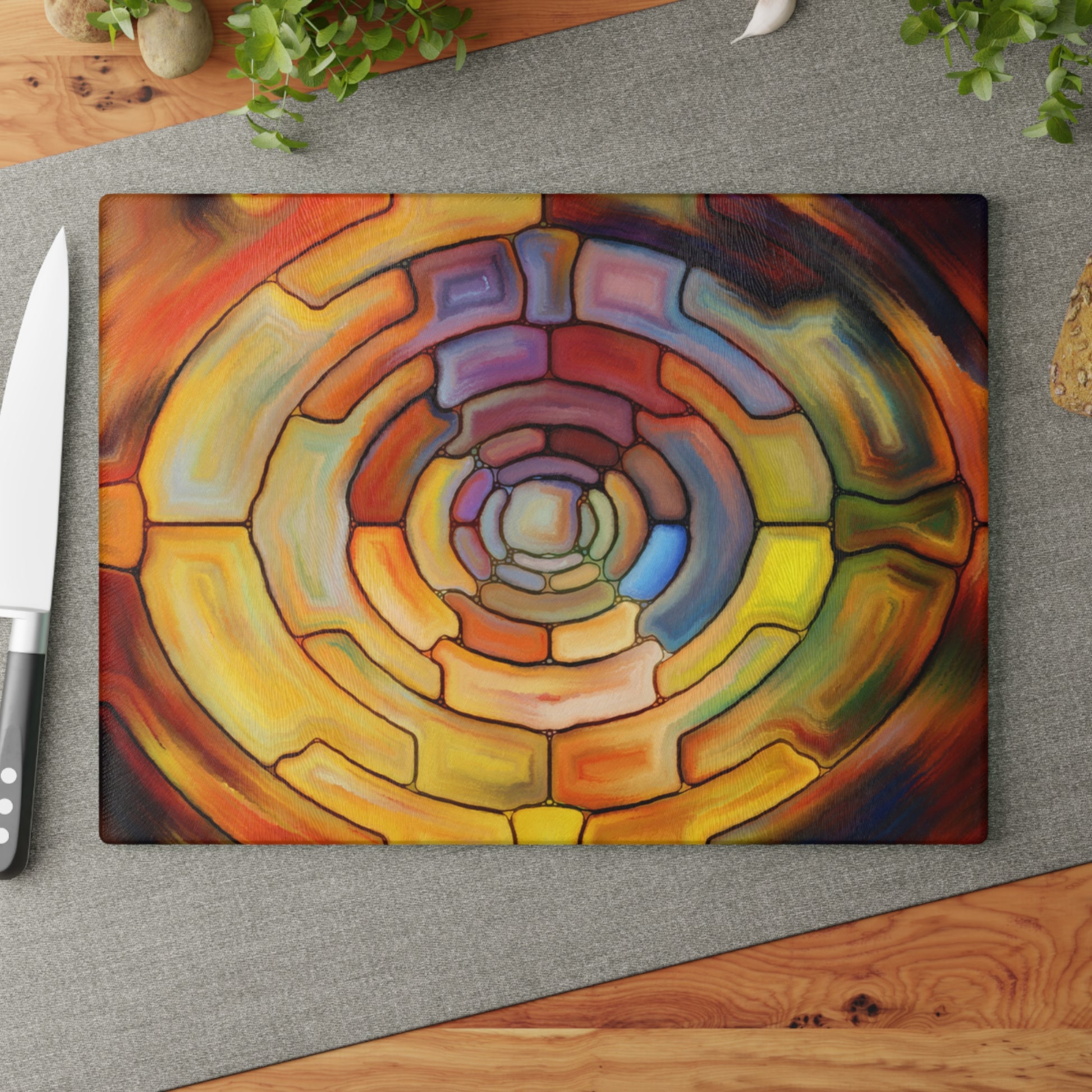 Abstract Spiral Glass Cutting Board | Colorful Circular Mosaic Art