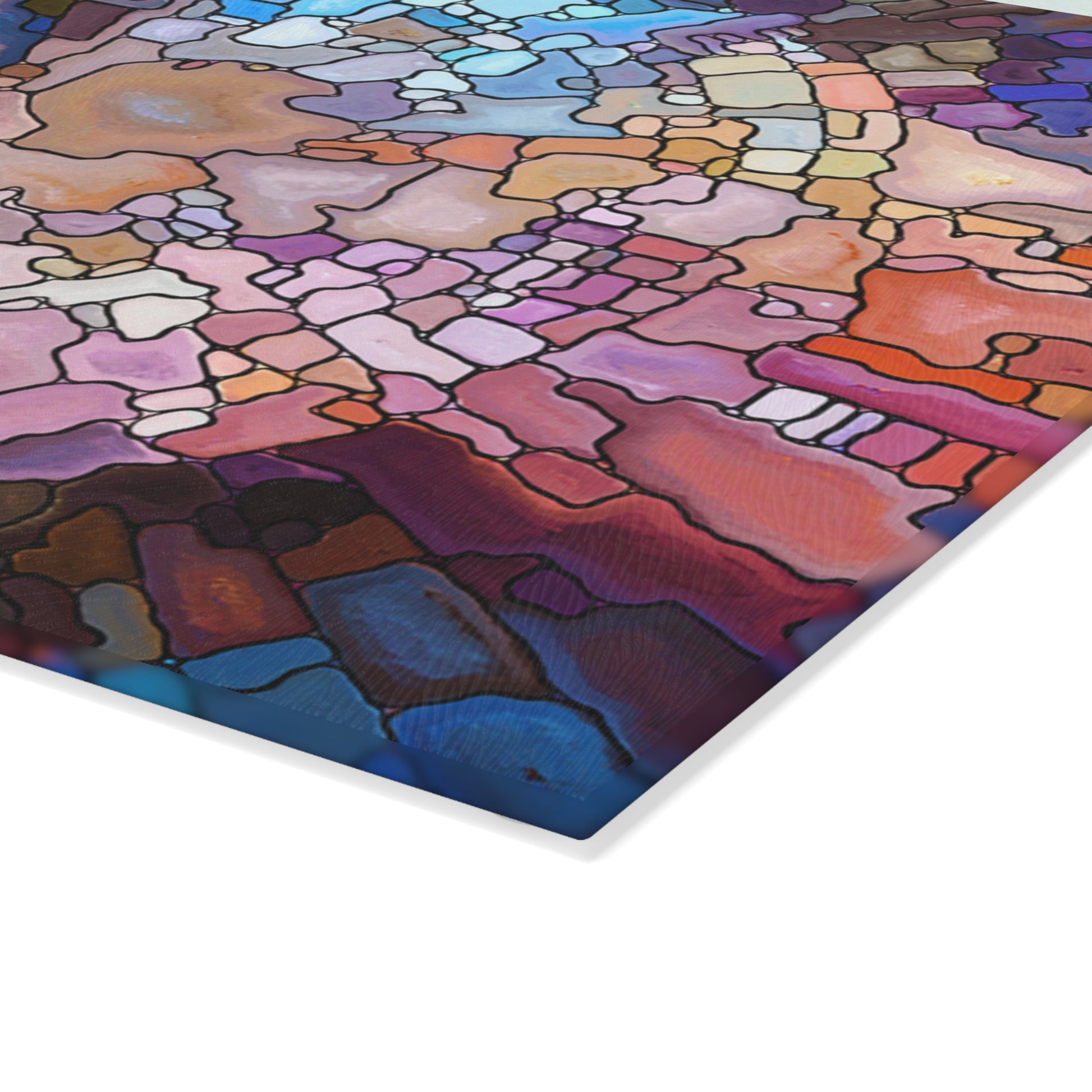 Abstract Stained Glass Mosaic Glass Cutting Board | Colorful Kitchen Decor