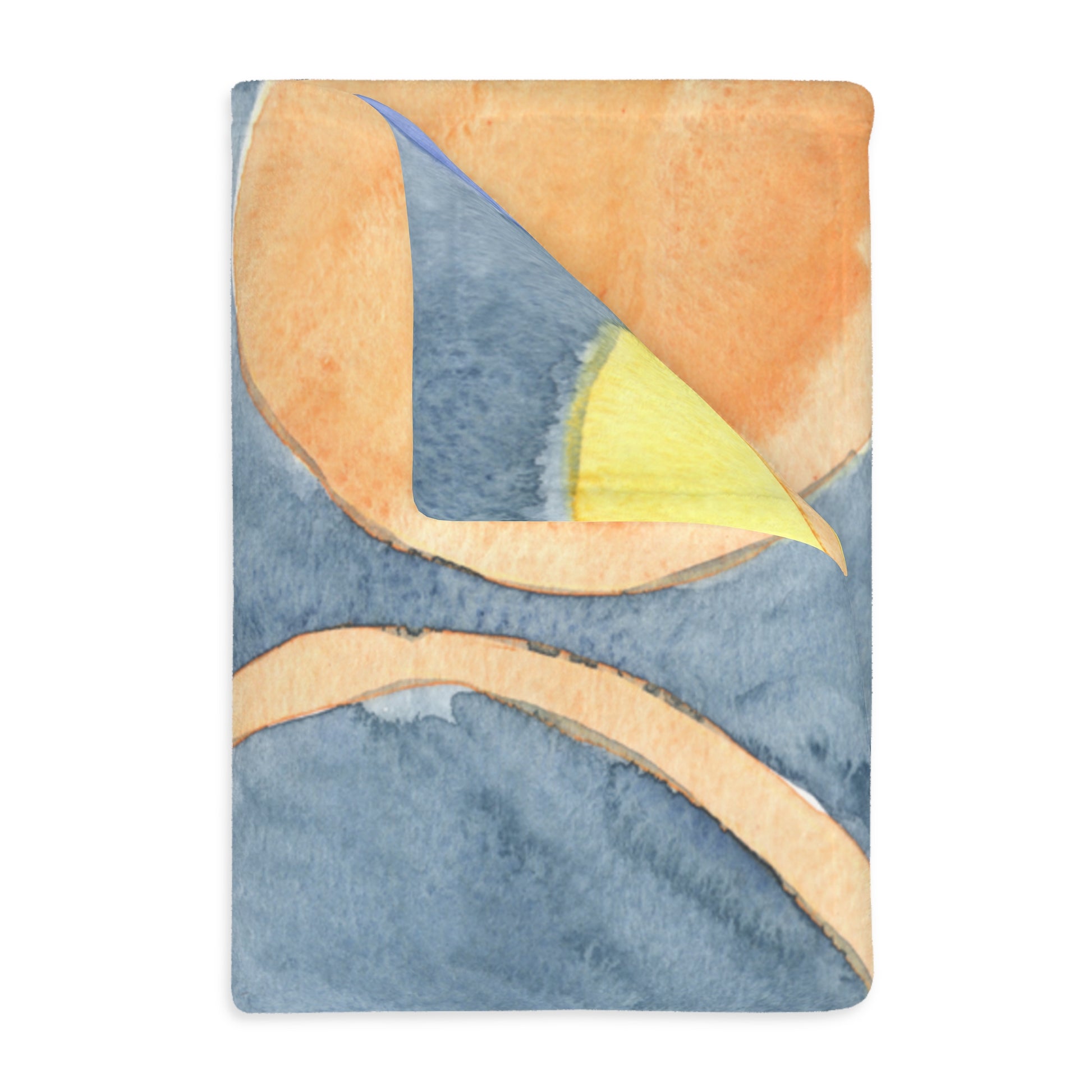 Wrap yourself in a soft, velvety hug that brightens quiet moments. This two-sided velveteen blanket carries a hand-painted watercolor of overlapping circles in warm oranges, sunny yellows and cool slate blues. The plush pile feels gentle against skin while the vivid print adds an artful, cozy accent to a reading nook, nursery, or sofa. Bring it along to evening picnics, stay-in movie nights, or slow mornings with tea — it settles around you like a little pause in a busy day.