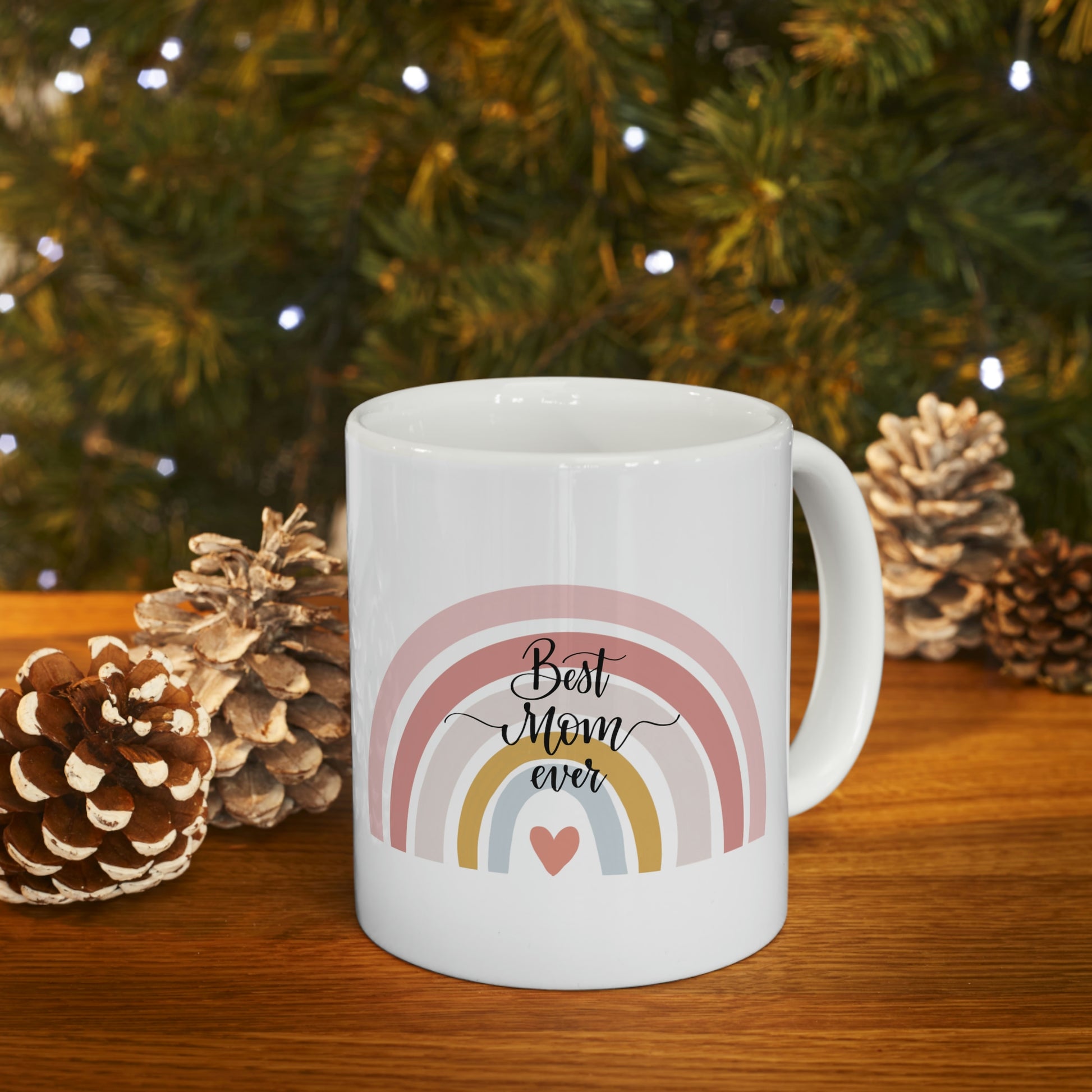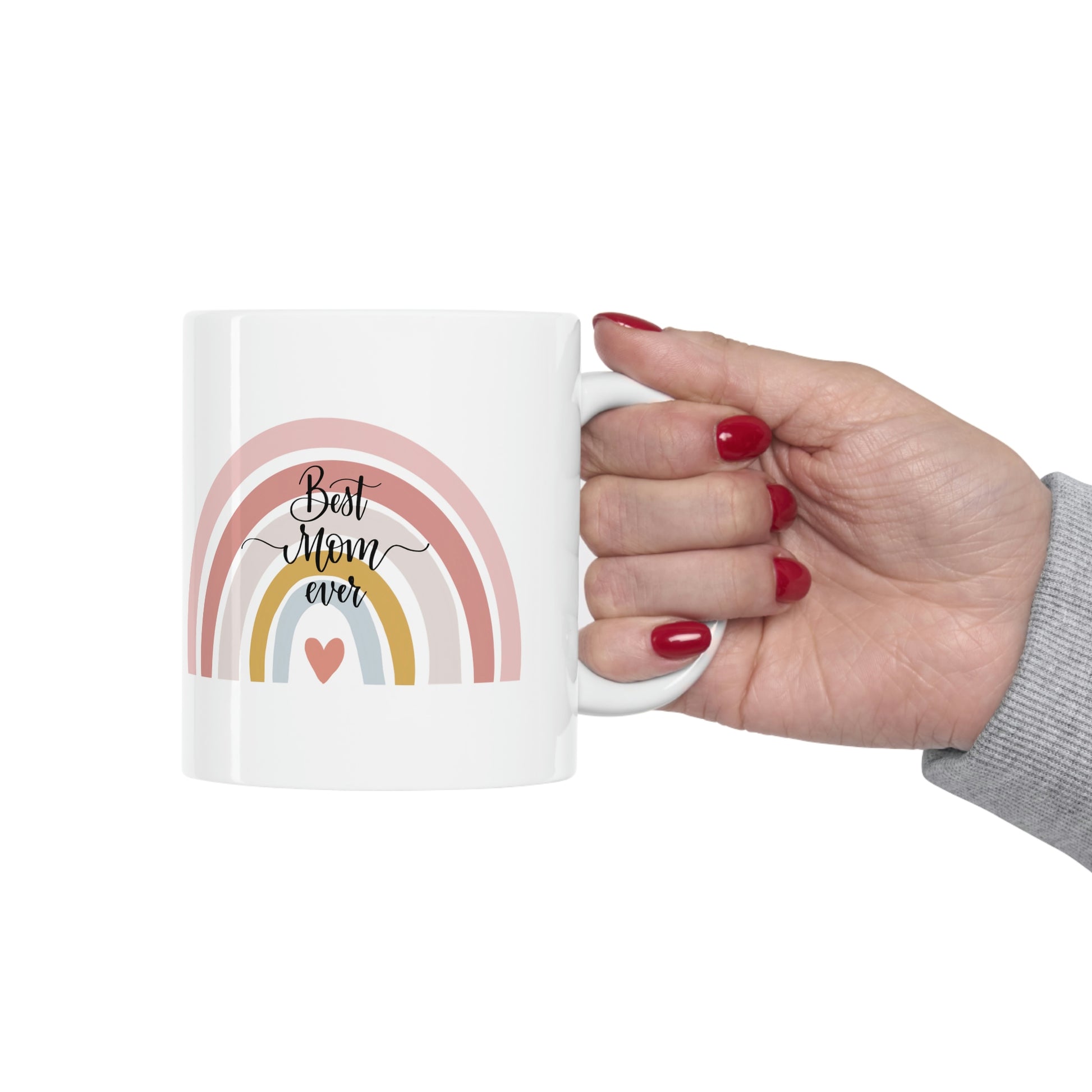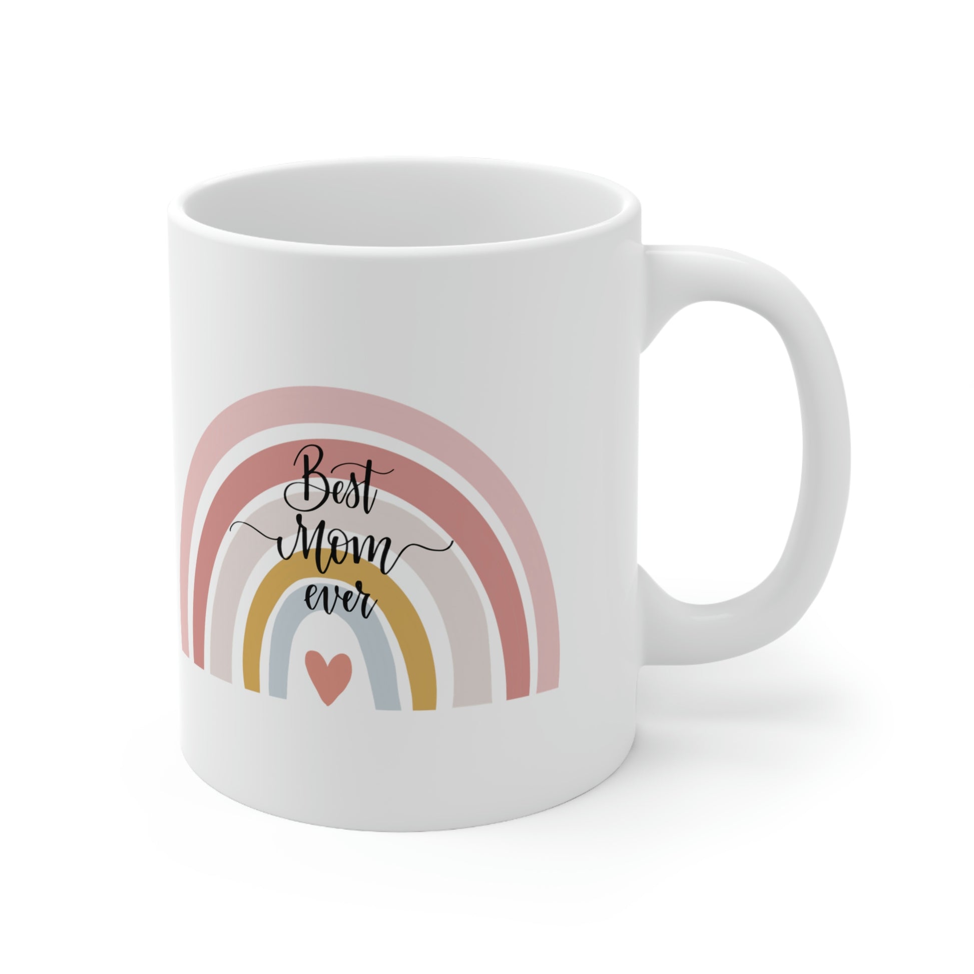 Best Mom Ever Pastel Rainbow and Heart Mug