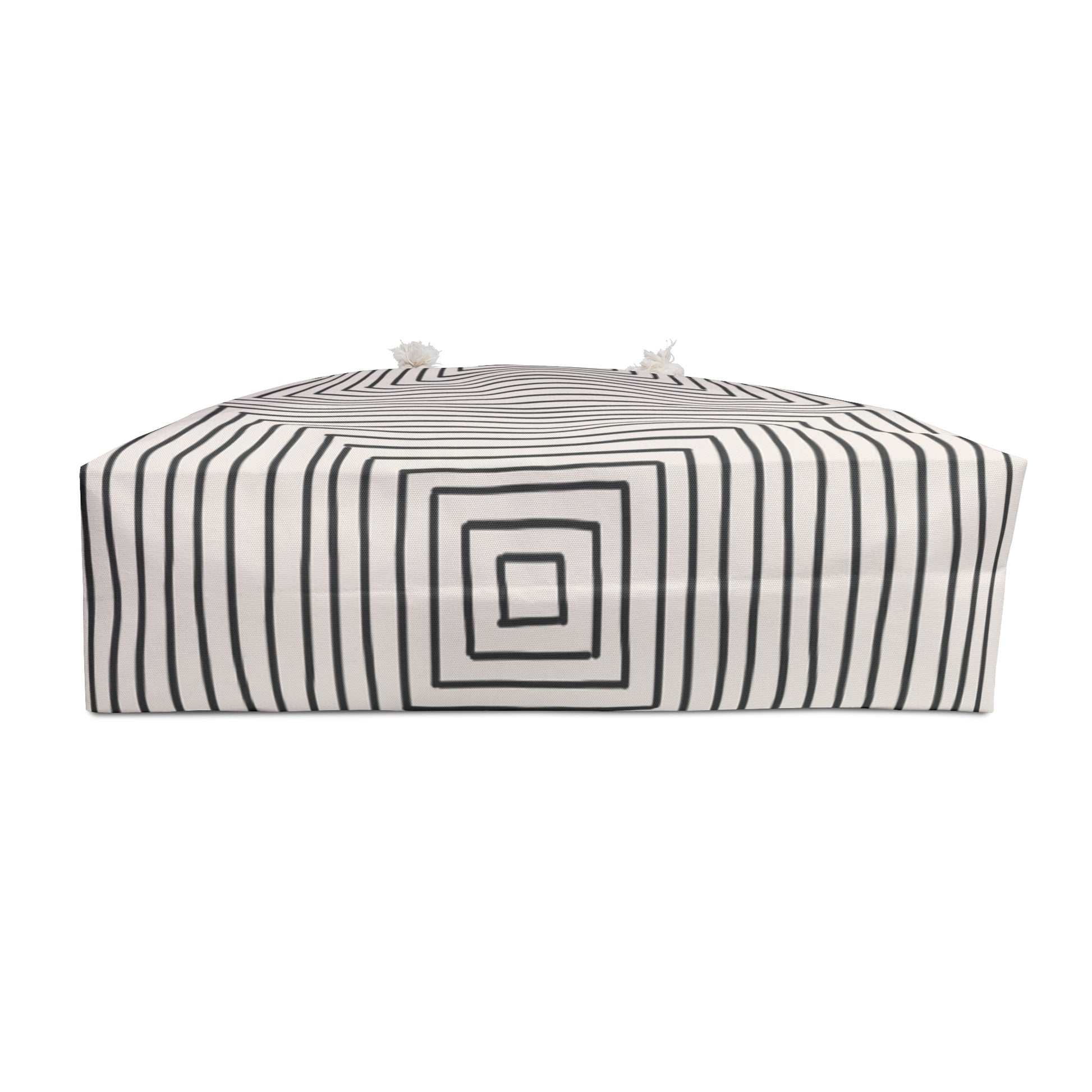 Carry everyday essentials in bold modern style with this Modern Geometric Rope Handle Weekender Tote. Featuring an eye-catching black and white striped geometric pattern and durable thick rope handles, this oversized tote is designed for effortless travel, beach days, gym trips, or weekend getaways. The spacious interior offers plenty of room for clothing, towels, books, or daily must-haves, while the sturdy rope straps provide comfortable shoulder carrying.