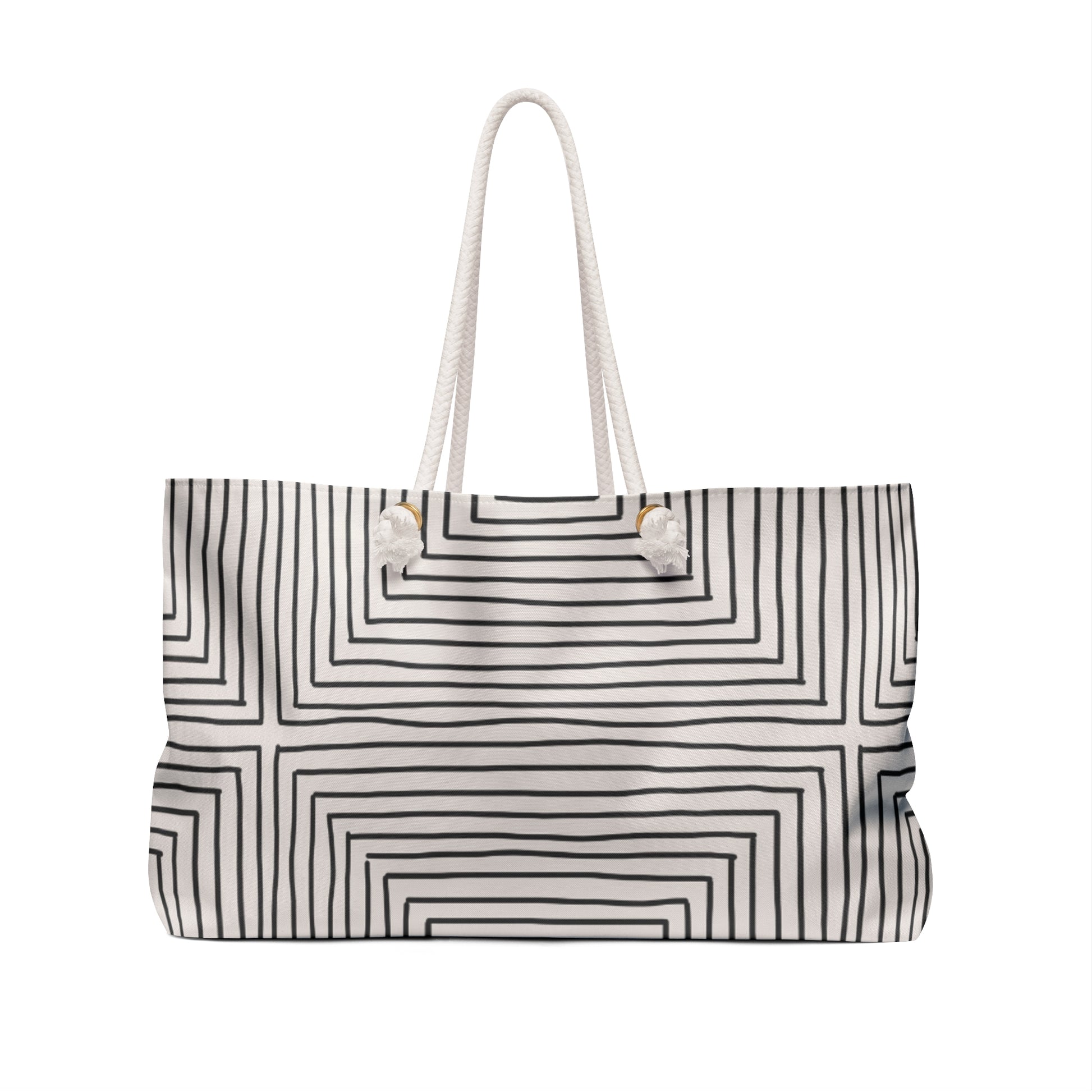 Black & White Striped Weekender Tote | Rope Handle Travel Bag