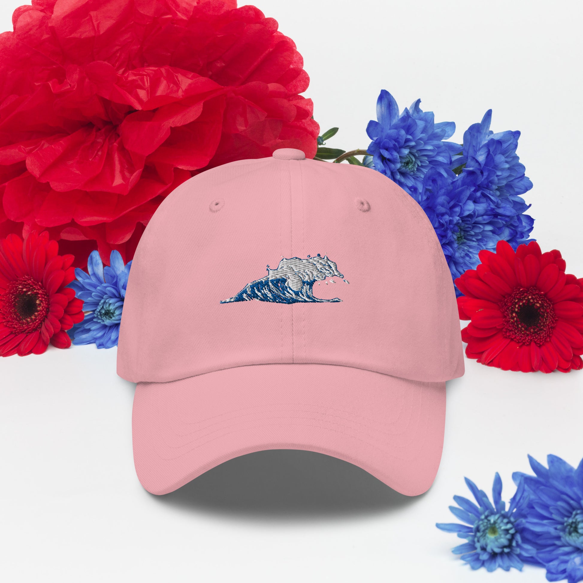 Catch the cool breeze of effortless style with our embroidered Blue Wave classic baseball cap. Ride the blue wave with laid-back and coastal vibes. This cap brings a touch of the ocean wherever you go.