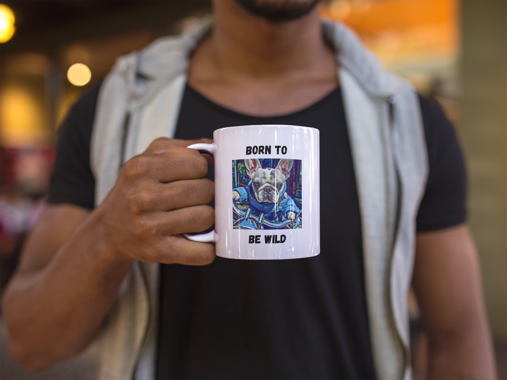 Born To Be Wild, Motorcycle Riding, French Bulldog, Mug