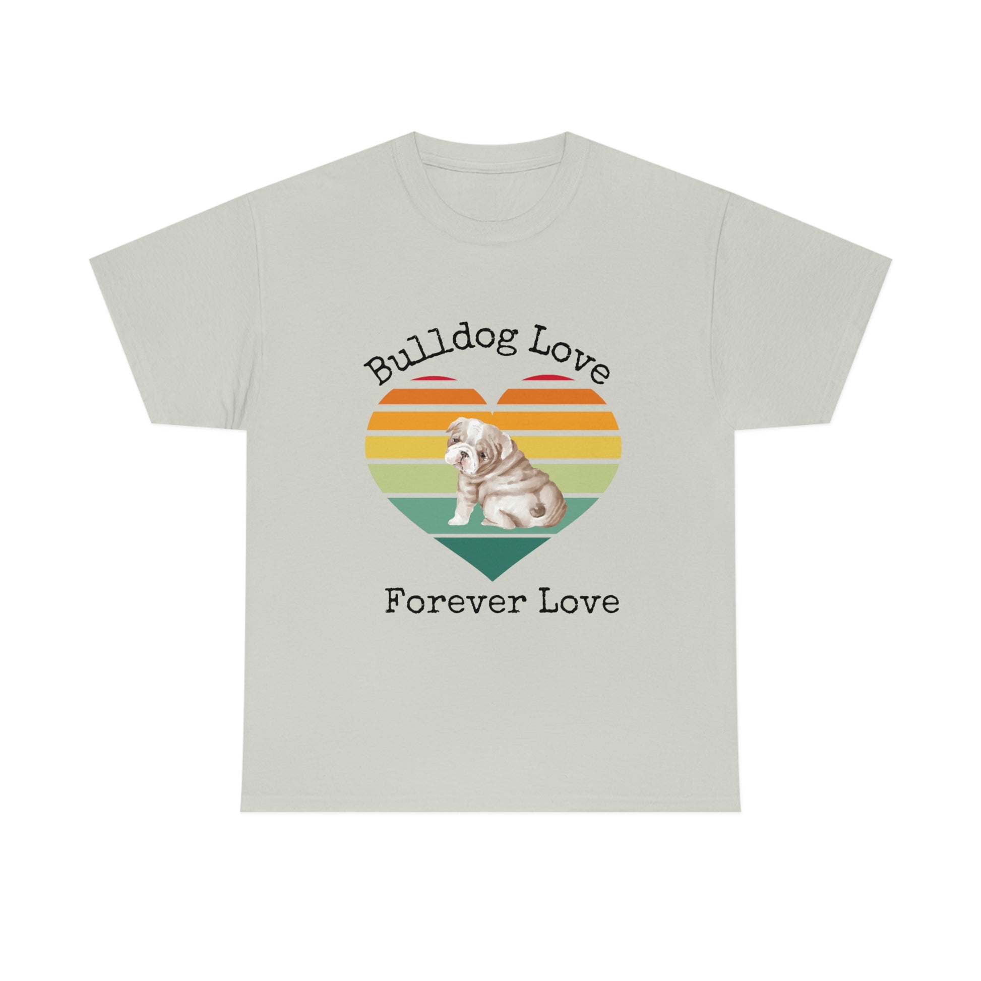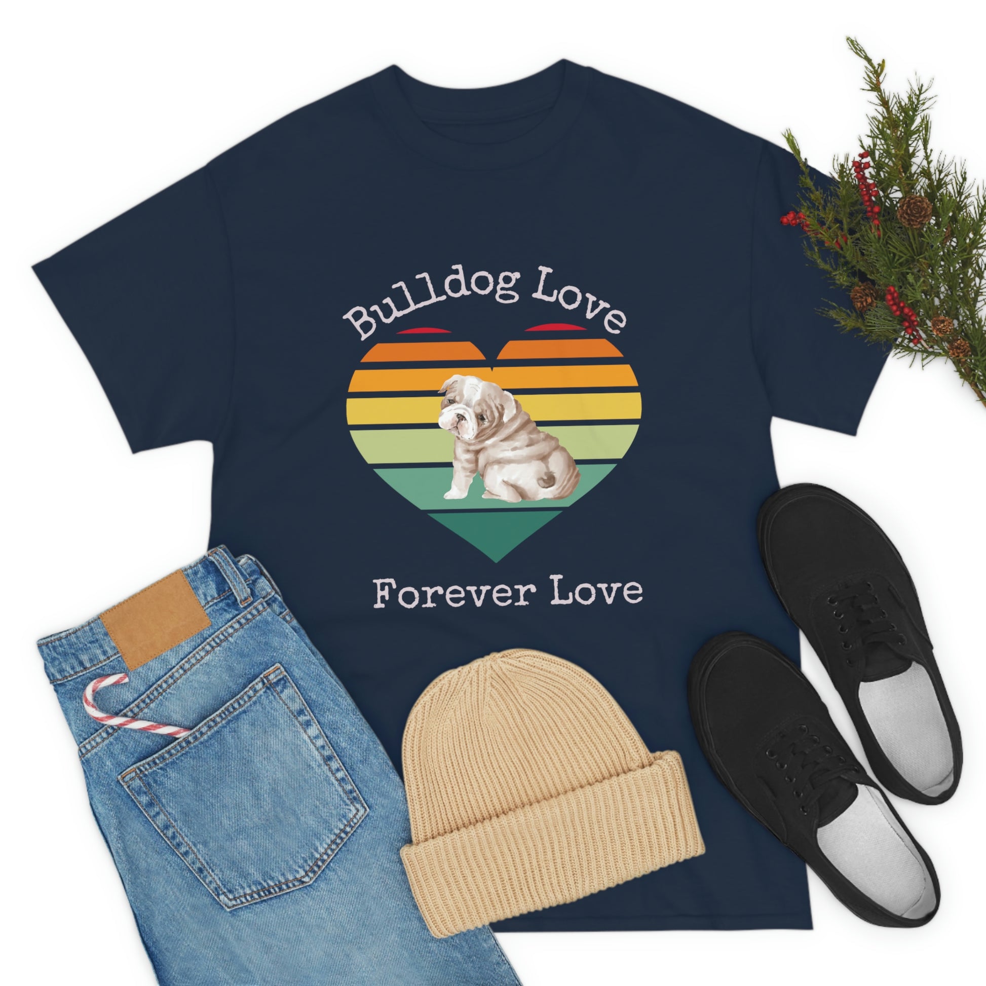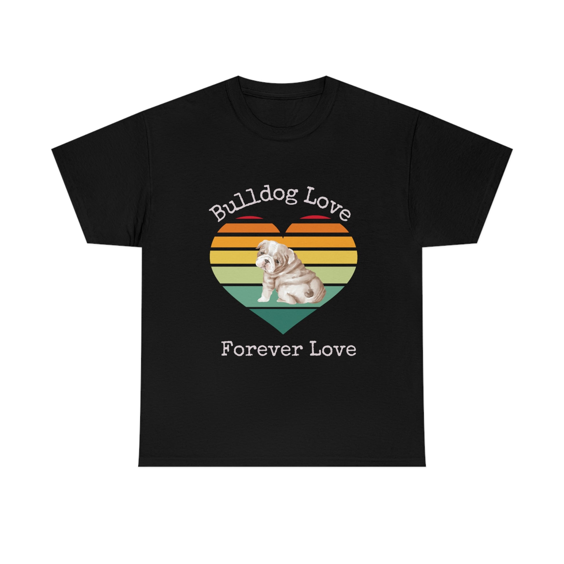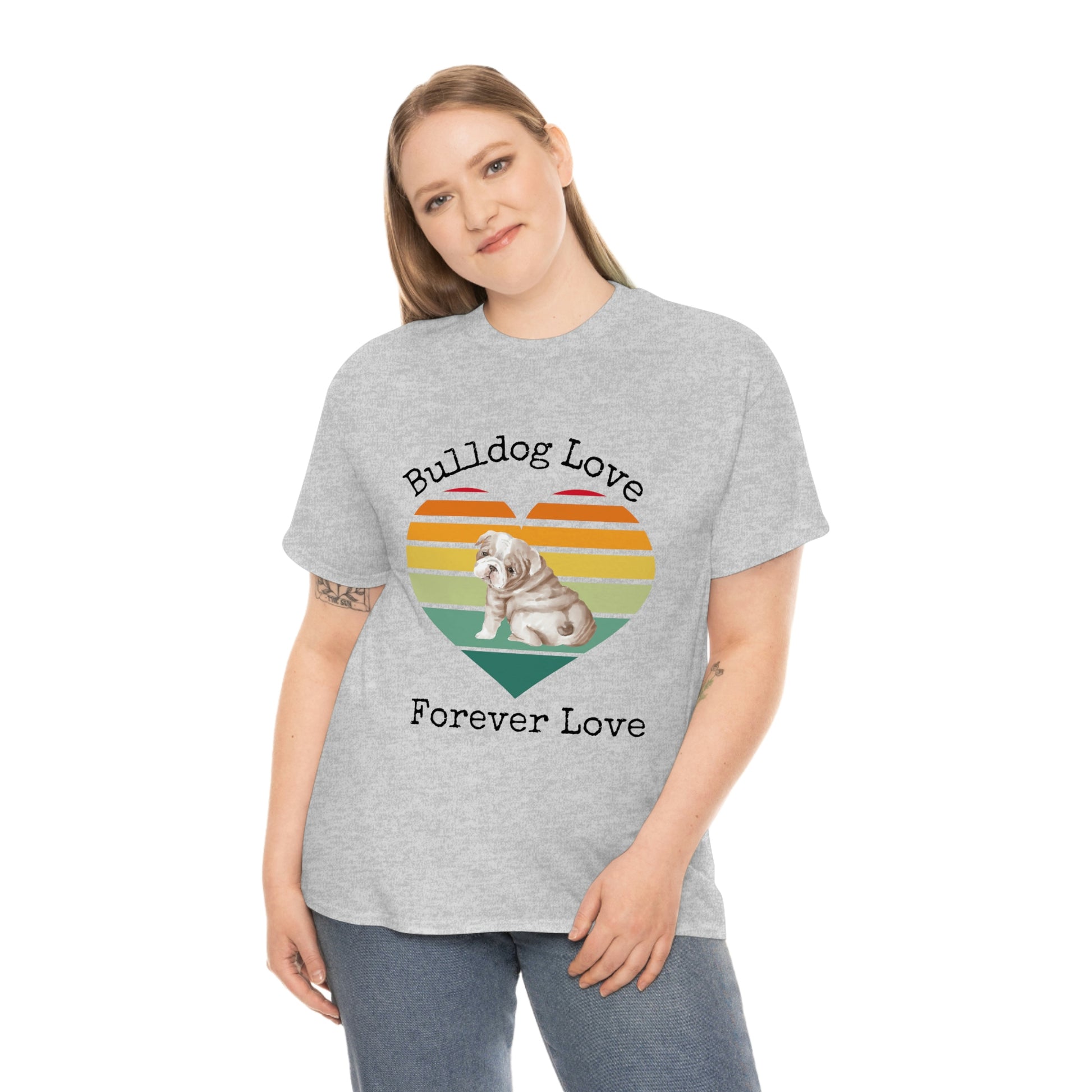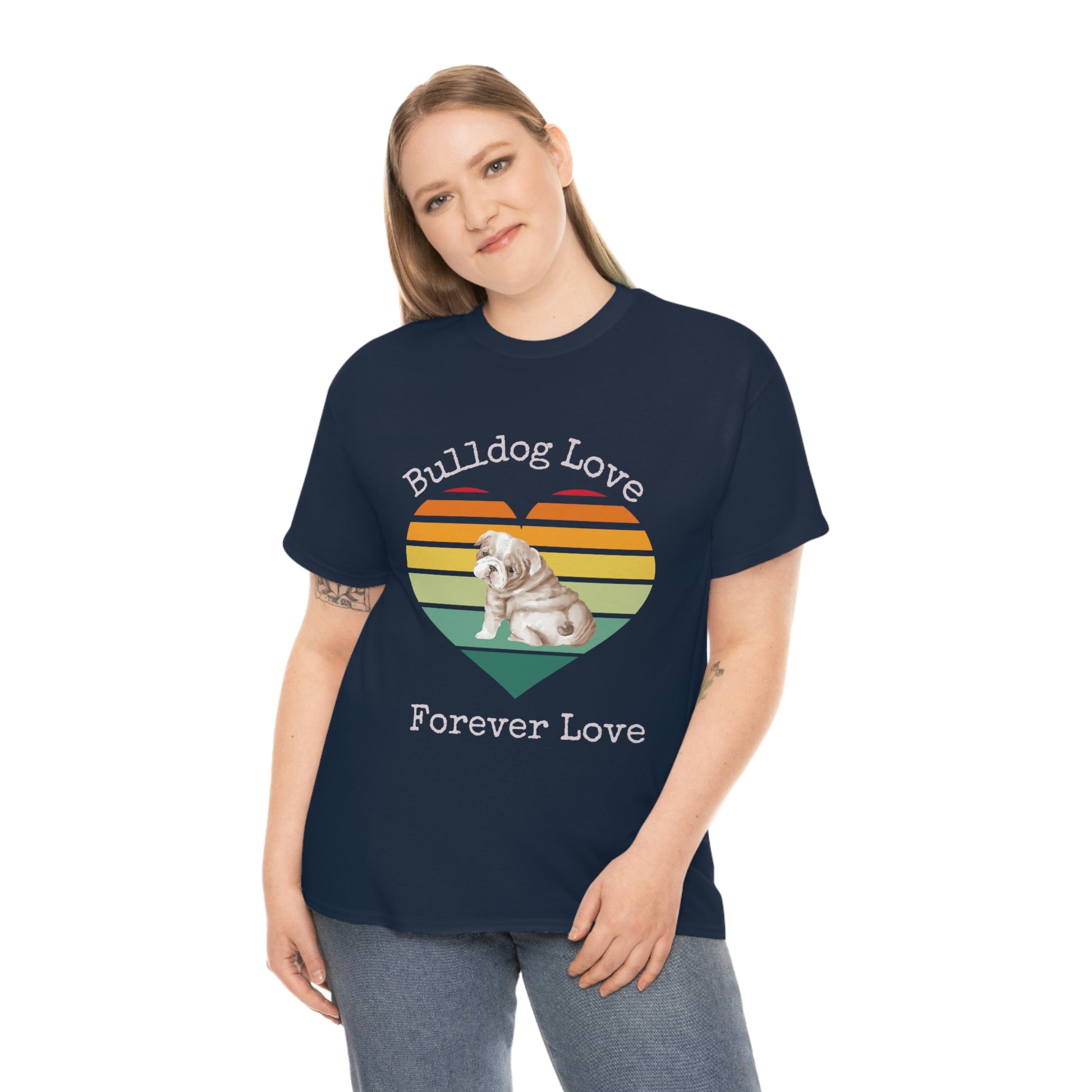 Introducing our latest addition to your wardrobe - the perfect t-shirt for all Bulldog lovers out there! Made with premium quality fabric, this t-shirt features an adorable illustration of a Bulldog with a heart, making it an instant hit for anyone who loves their Bulldog.