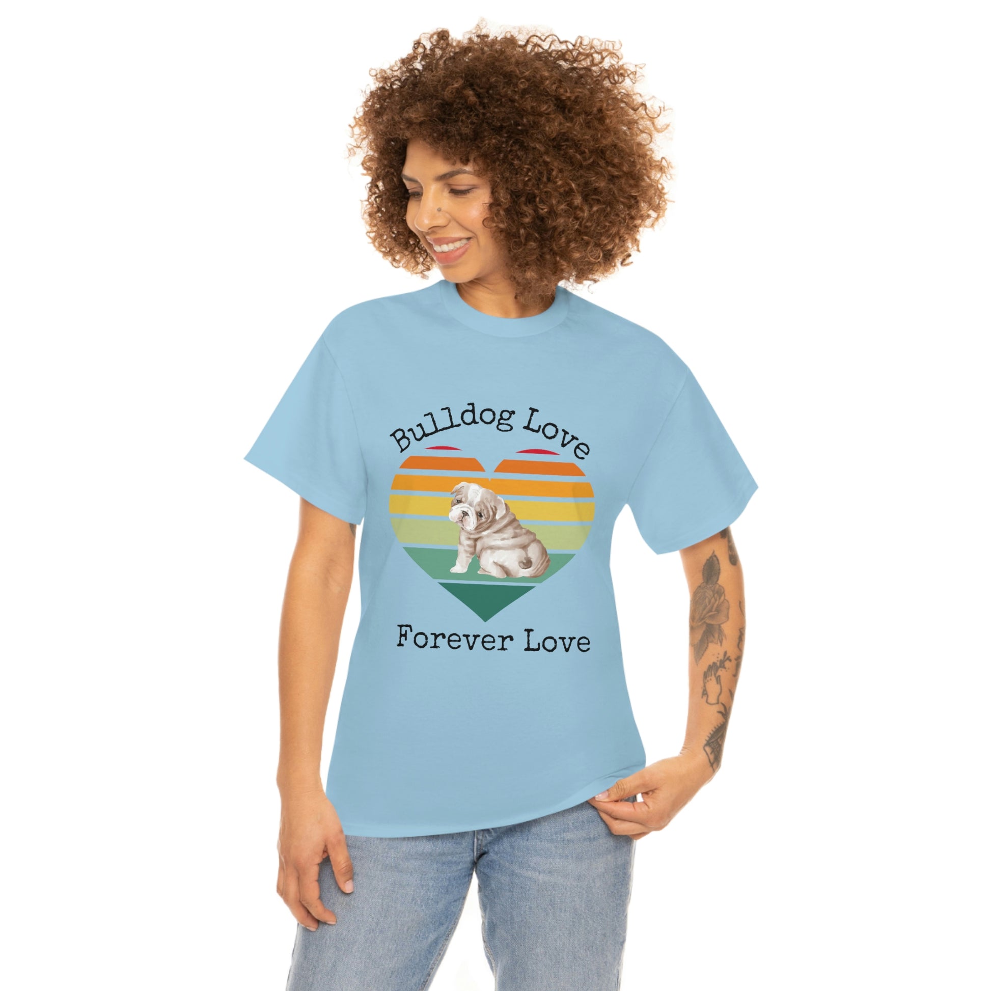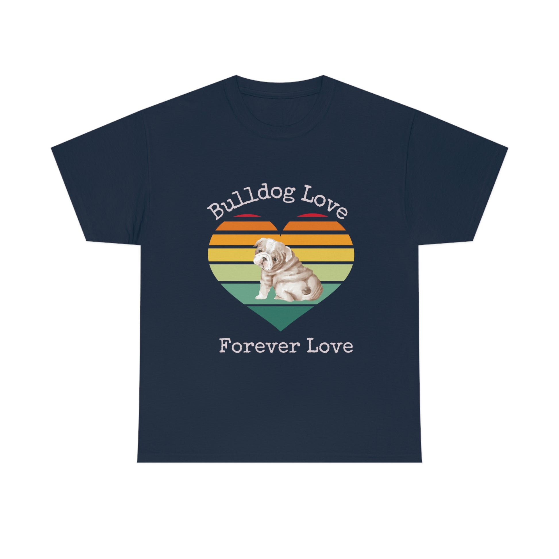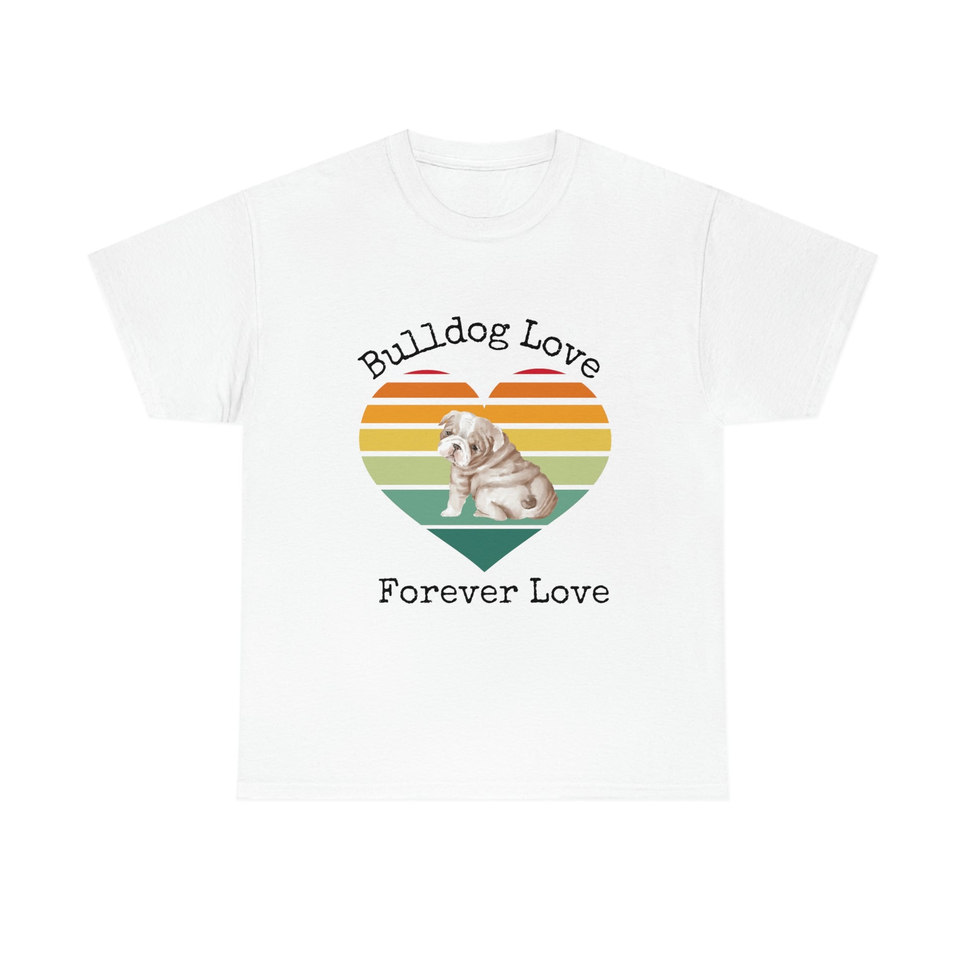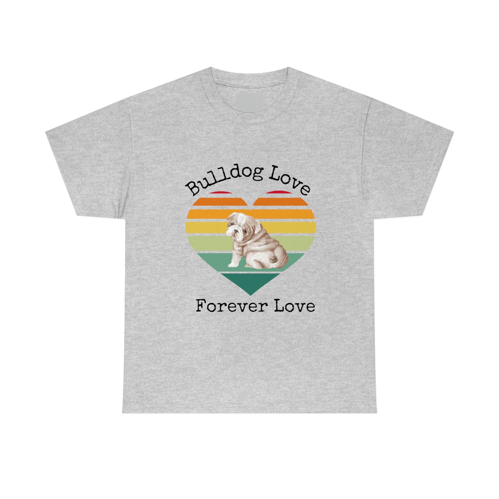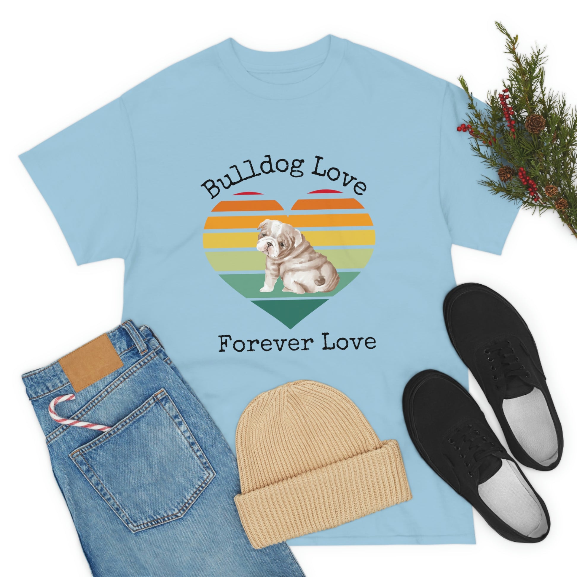 Introducing our latest addition to your wardrobe - the perfect t-shirt for all Bulldog lovers out there! Made with premium quality fabric, this t-shirt features an adorable illustration of a Bulldog with a heart, making it an instant hit for anyone who loves their Bulldog.