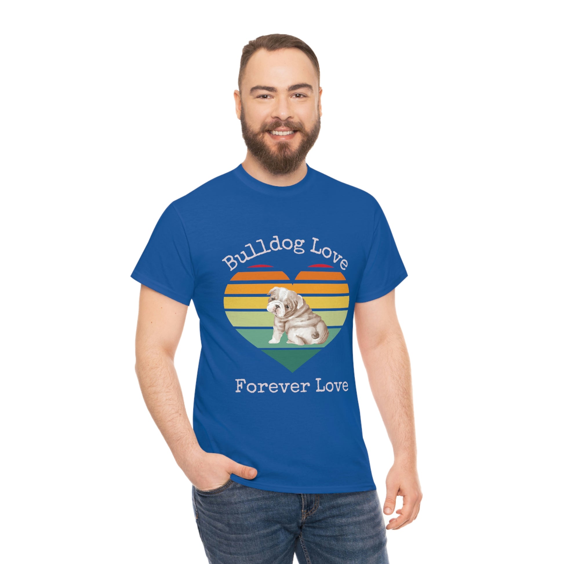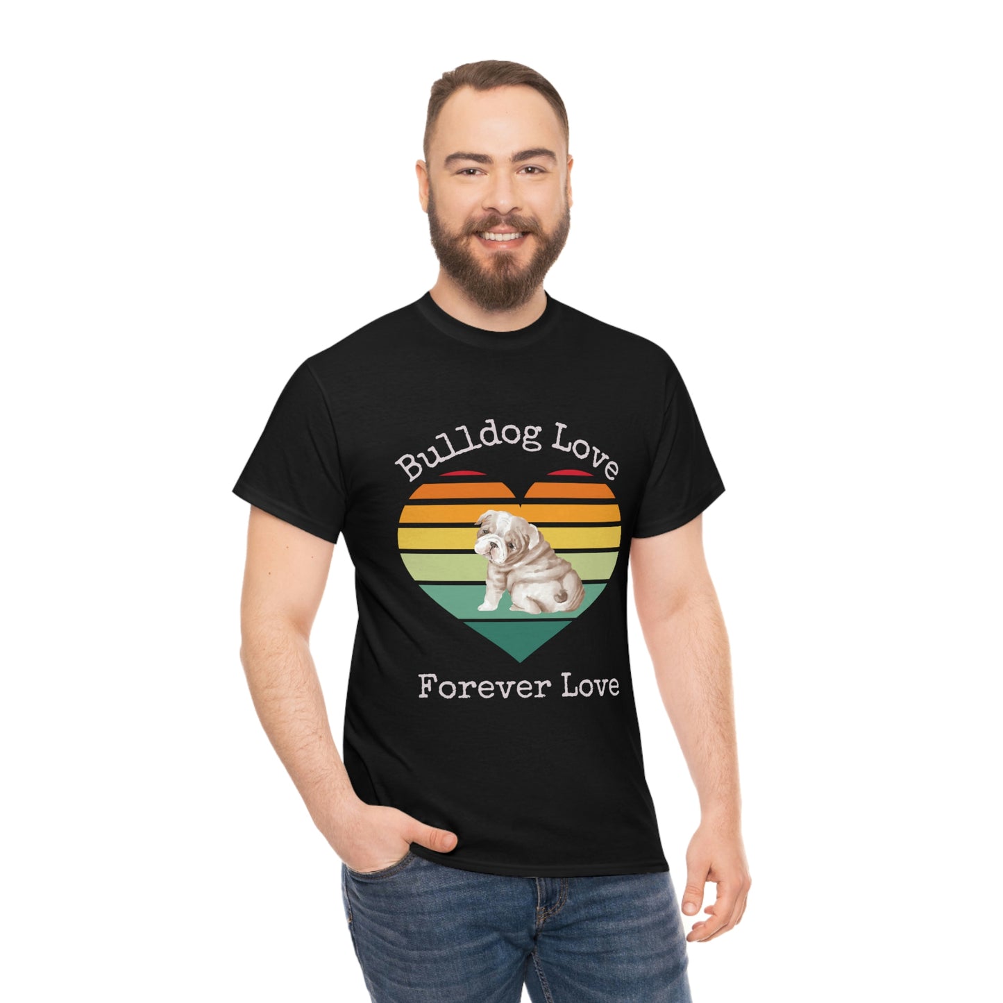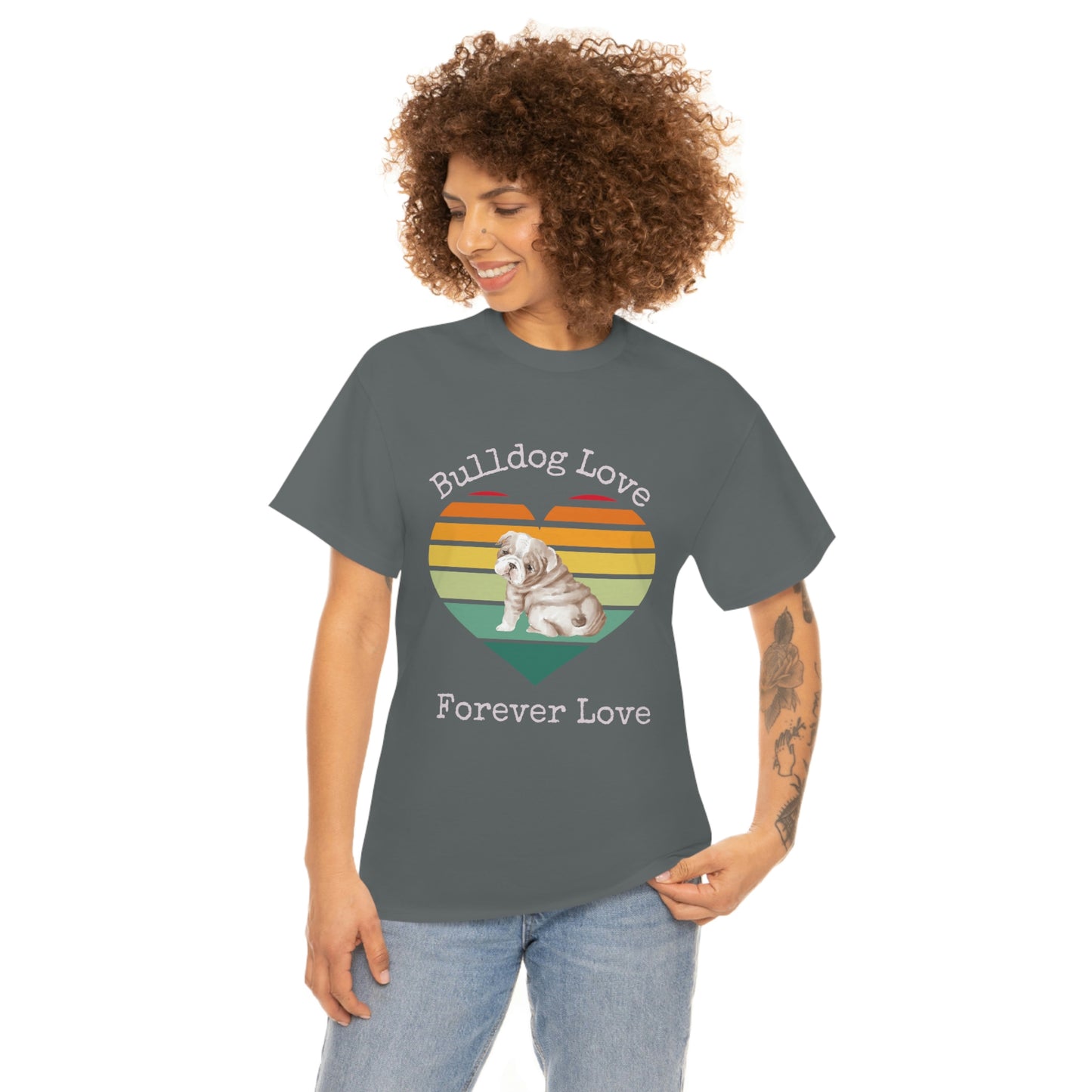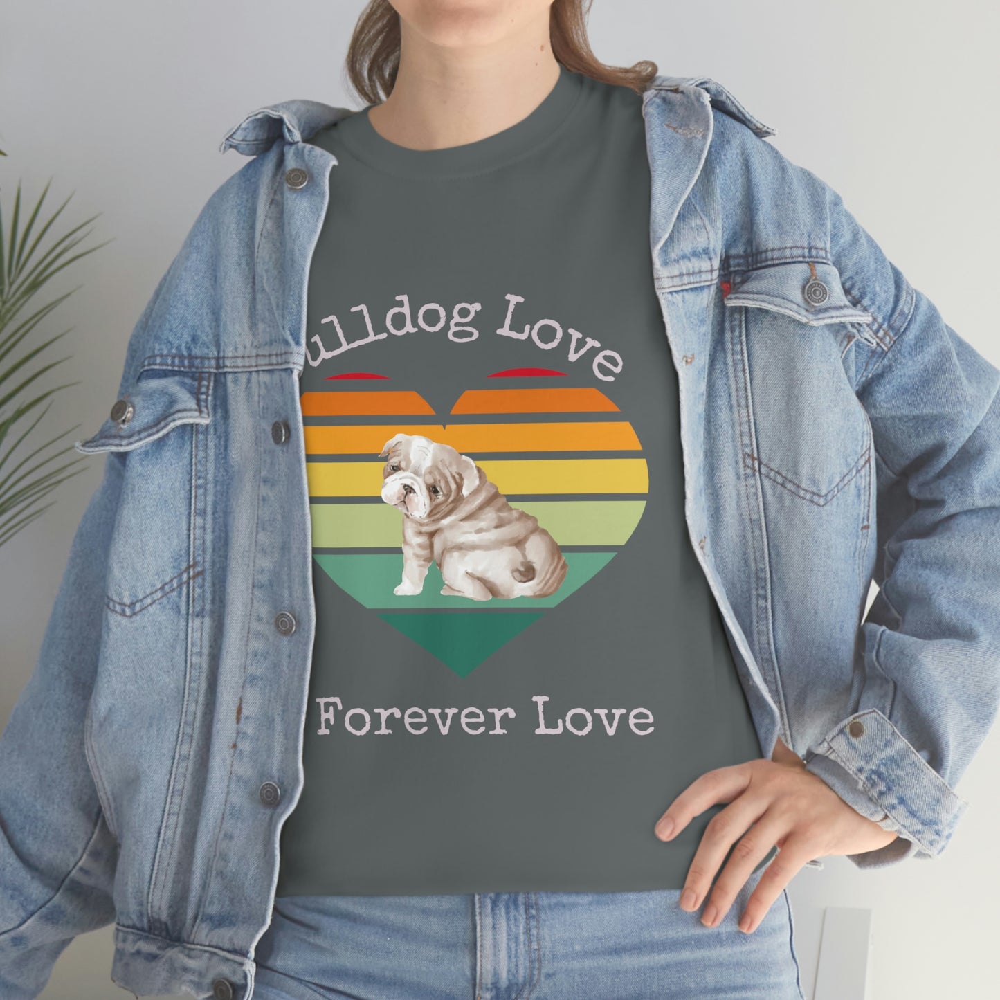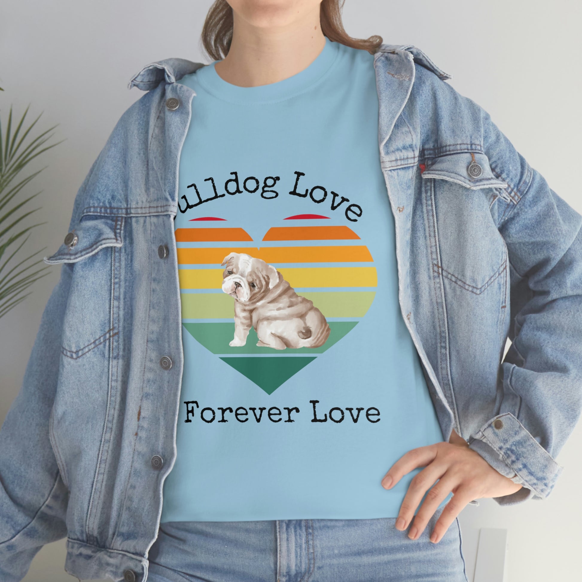 Introducing our latest addition to your wardrobe - the perfect t-shirt for all Bulldog lovers out there! Made with premium quality fabric, this t-shirt features an adorable illustration of a Bulldog with a heart, making it an instant hit for anyone who loves their Bulldog.