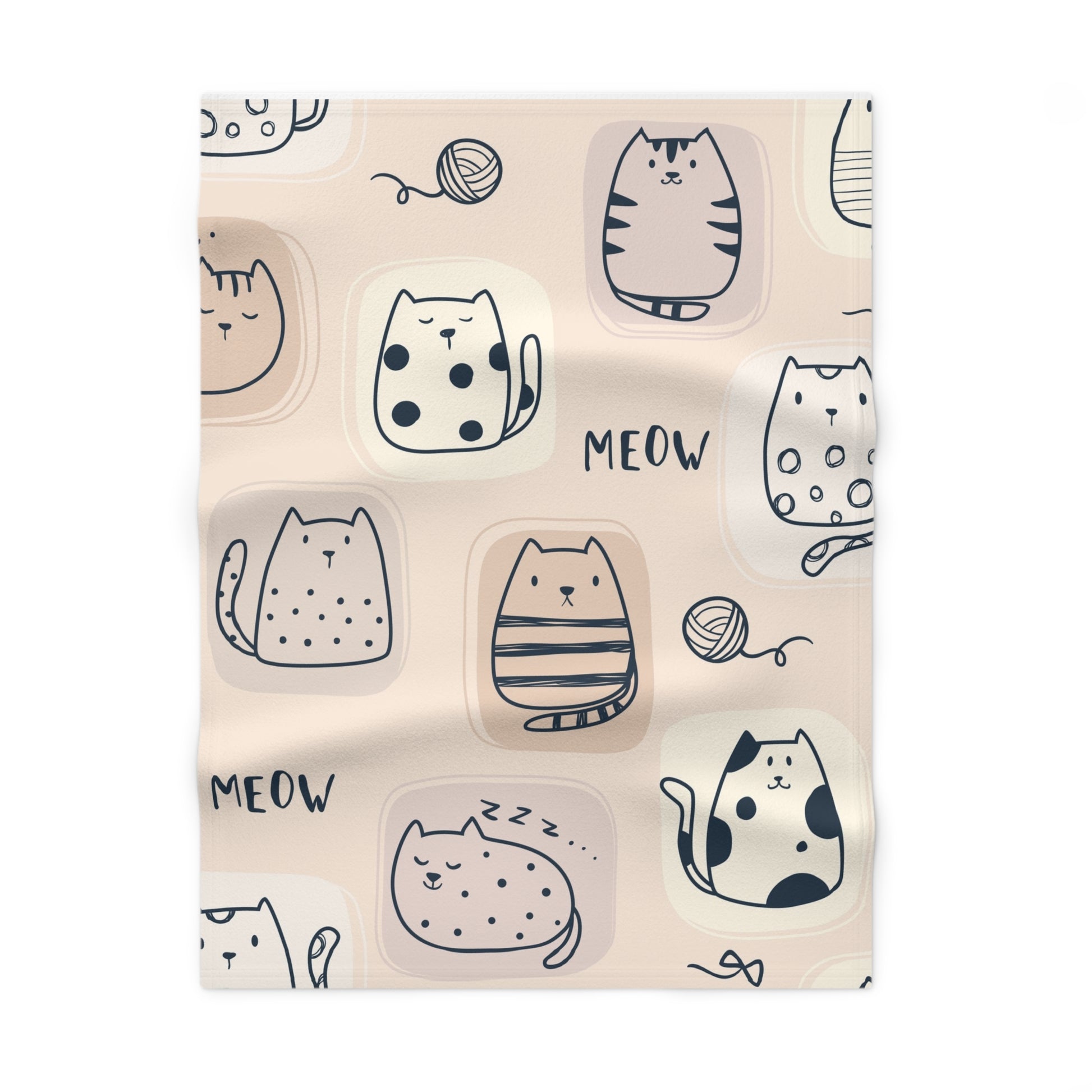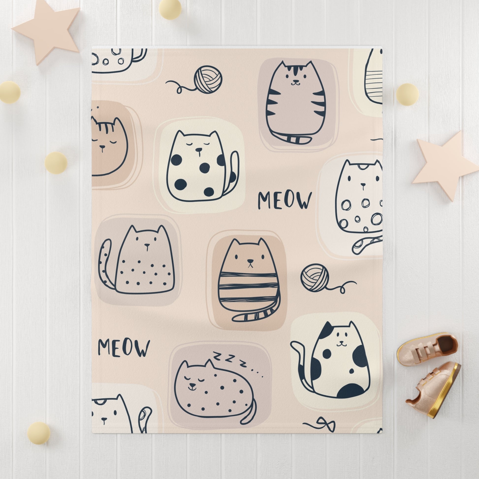 This baby blanket features adorable cartoon cats with balls of twine, creating a playful and cozy atmosphere for your little one. Perfect for cuddling up during nap time or bedtime, this soft fleece blanket is a must-have for any baby's nursery. Ideal for baby showers, birthdays, and everyday use.