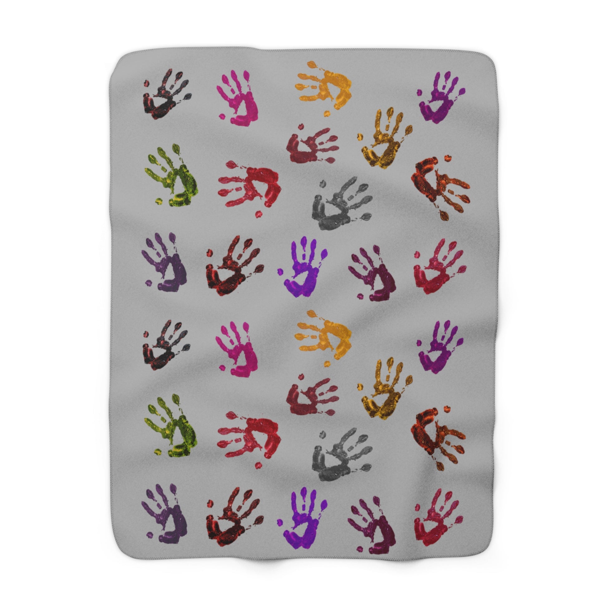 Colorful Handprint Sherpa Blanket — Cozy Kids & Family Throw Colorful Handprint Sherpa Blanket – Playful Kids Throw, Soft Cozy Gift