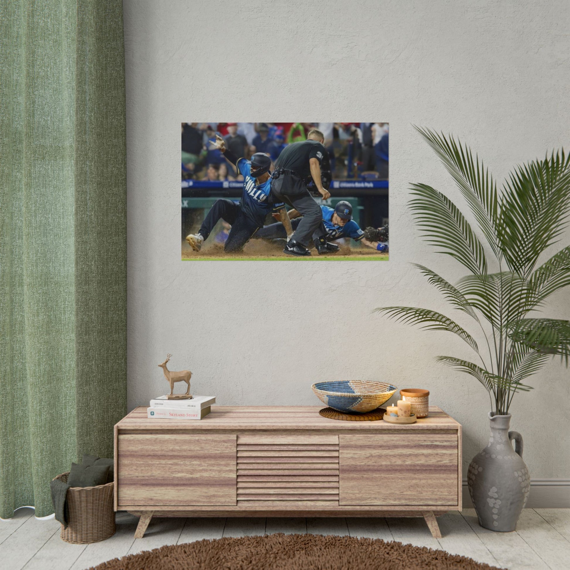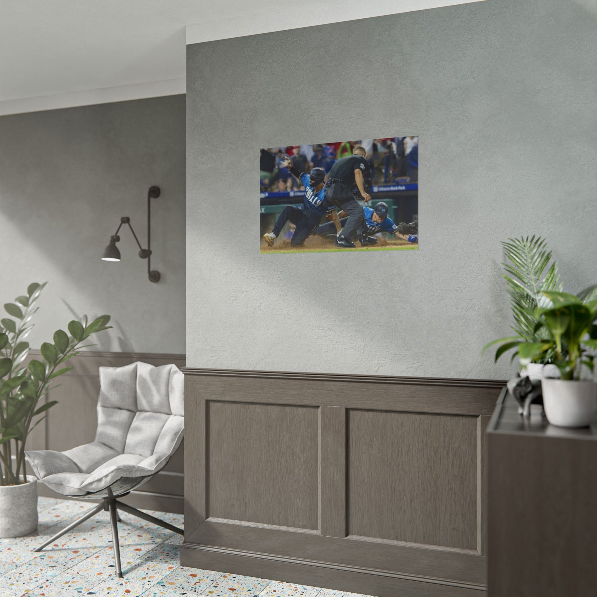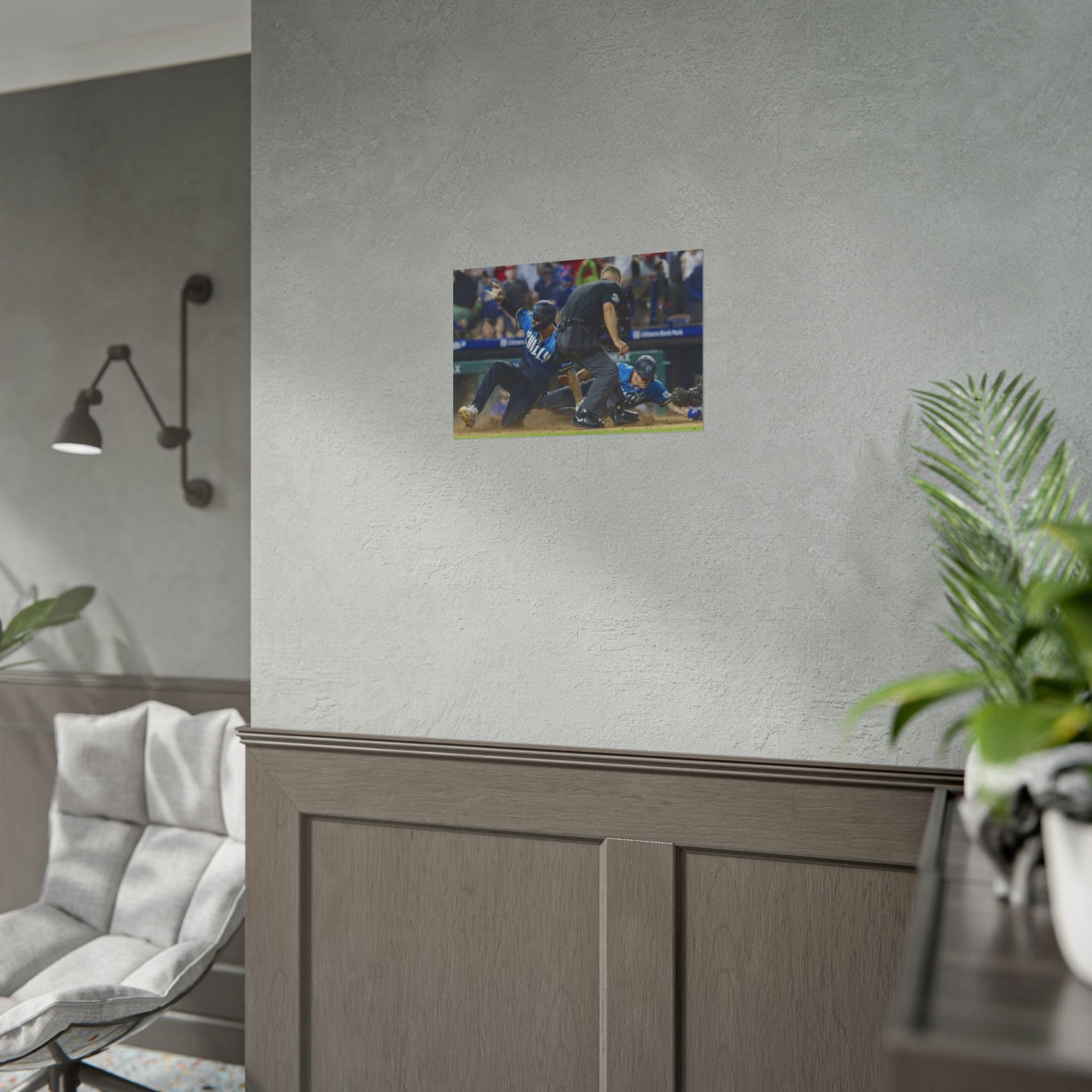 Celebrate one of the most iconic moments in Phillies baseball with this high-quality poster featuring Nick Castellanos and J.T. Realmuto performing a dramatic double slide at home plate! Perfect for Philadelphia Phillies fans, sports lovers, and collectors, this print captures the energy, teamwork, and grit of MLB action. Whether you're decorating a man cave, sports room, office, or gifting to a die-hard Philly fan, this poster brings a legendary moment to life. A great gift idea for Father’s Day, birthdays, or any occasion for baseball enthusiasts!