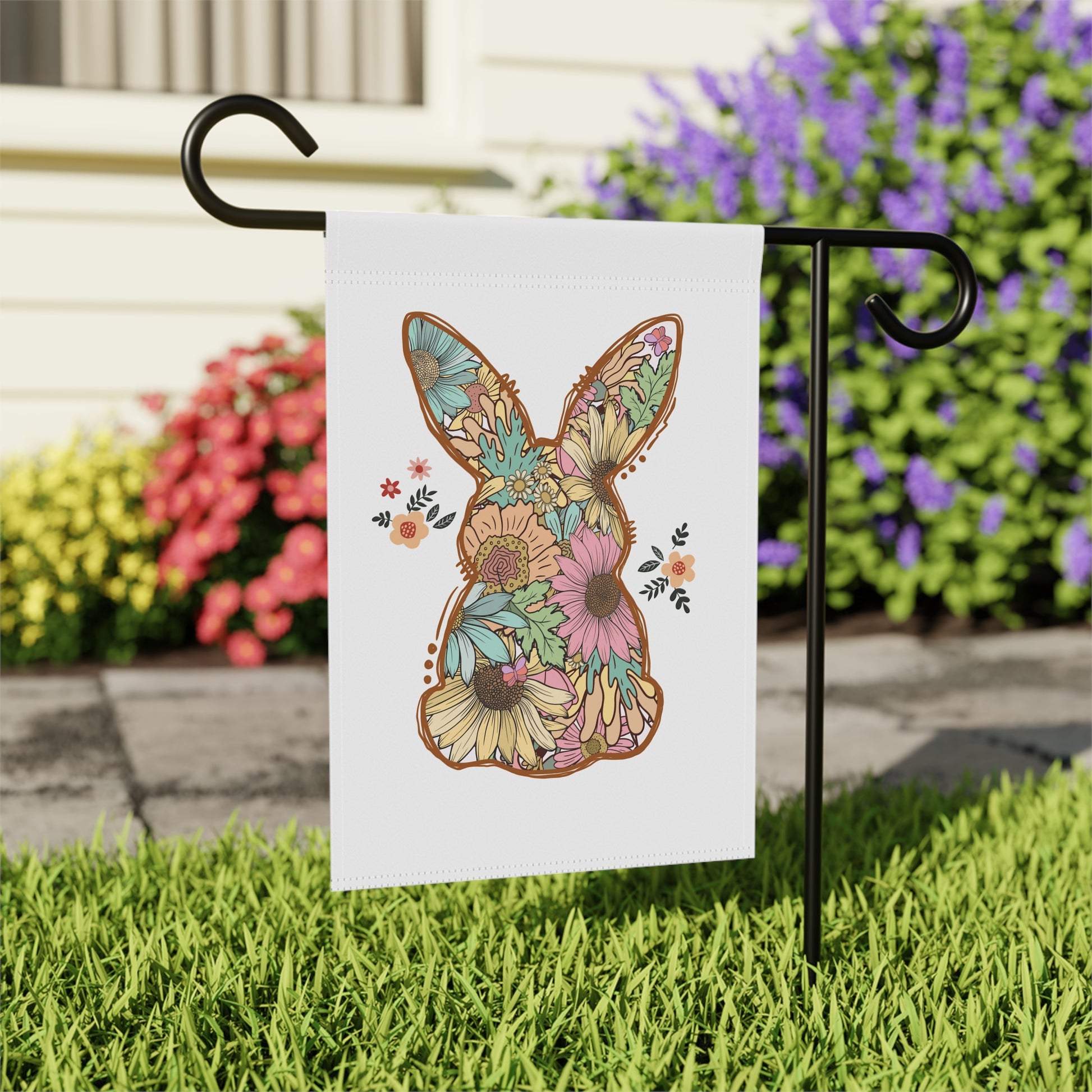 Floral Bunny Garden Flag | Spring Easter Yard Flag | Boho Rabbit Outdoor Decorgn