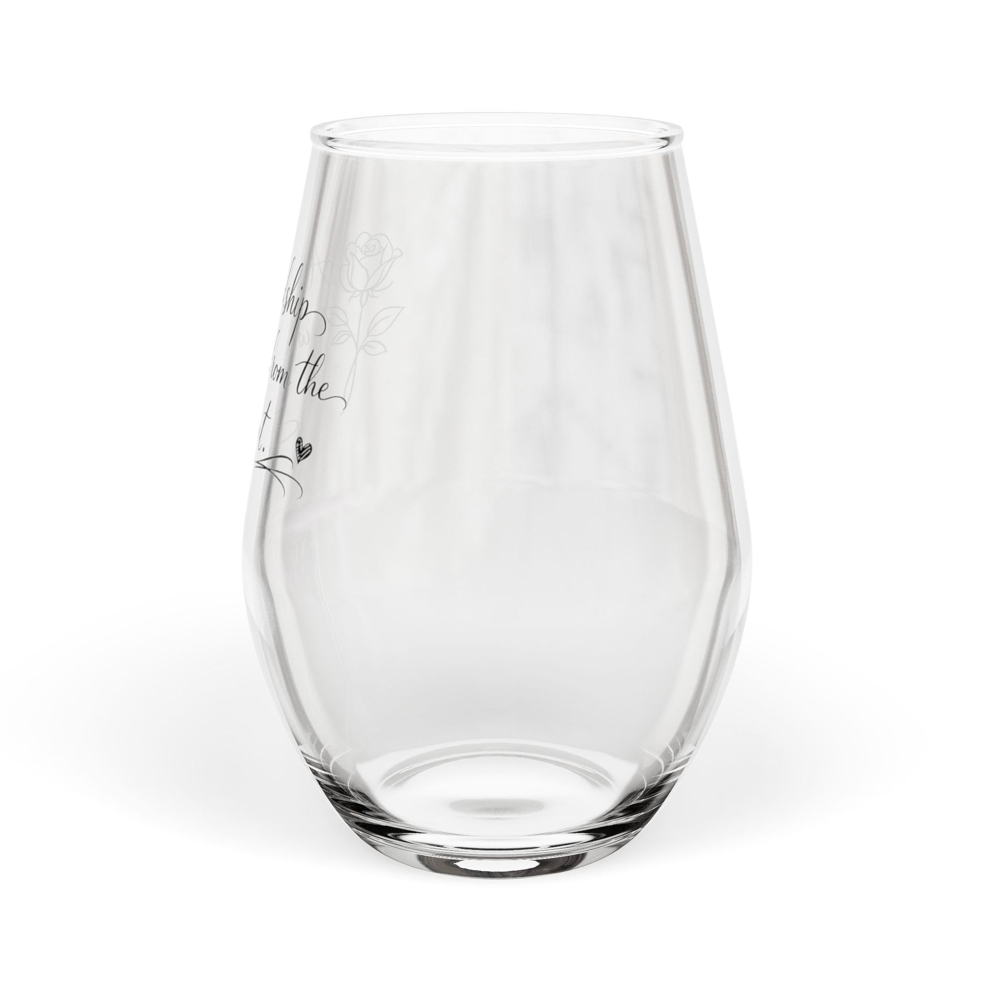 Celebrate the beauty of true connection with this elegant “A Friendship Written from the Heart” stemless wine glass. Featuring delicate script lettering and a graceful floral accent, this timeless design honors the deep bonds that stay with us forever. Perfect as a friendship gift, sympathy gift, or remembrance keepsake, this glass offers comfort, love, and meaning—whether shared over a quiet toast or displayed as a heartfelt reminder of someone special. Thoughtfully designed for both everyday use and special moments, this glass makes a beautiful gift for those times when words matter most.