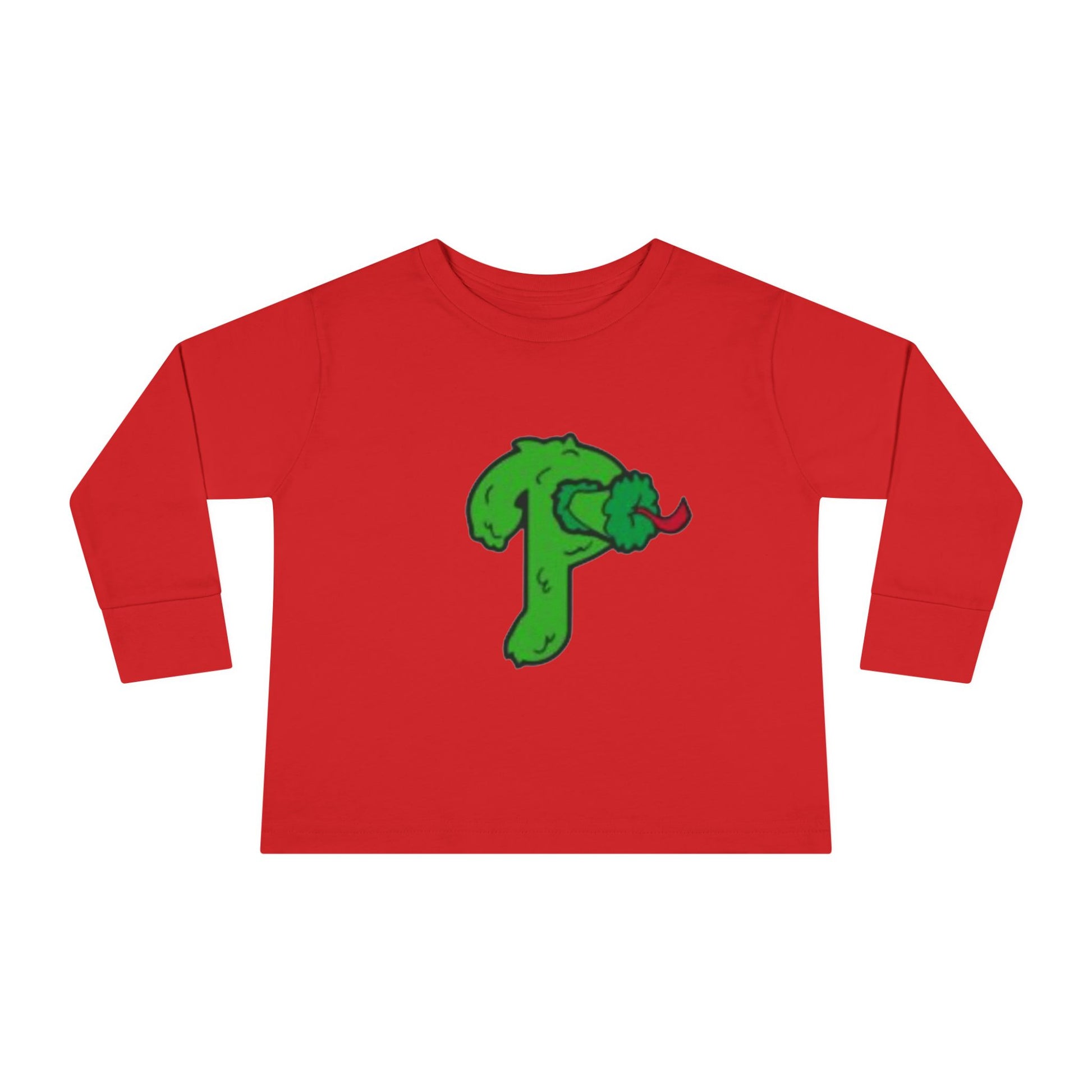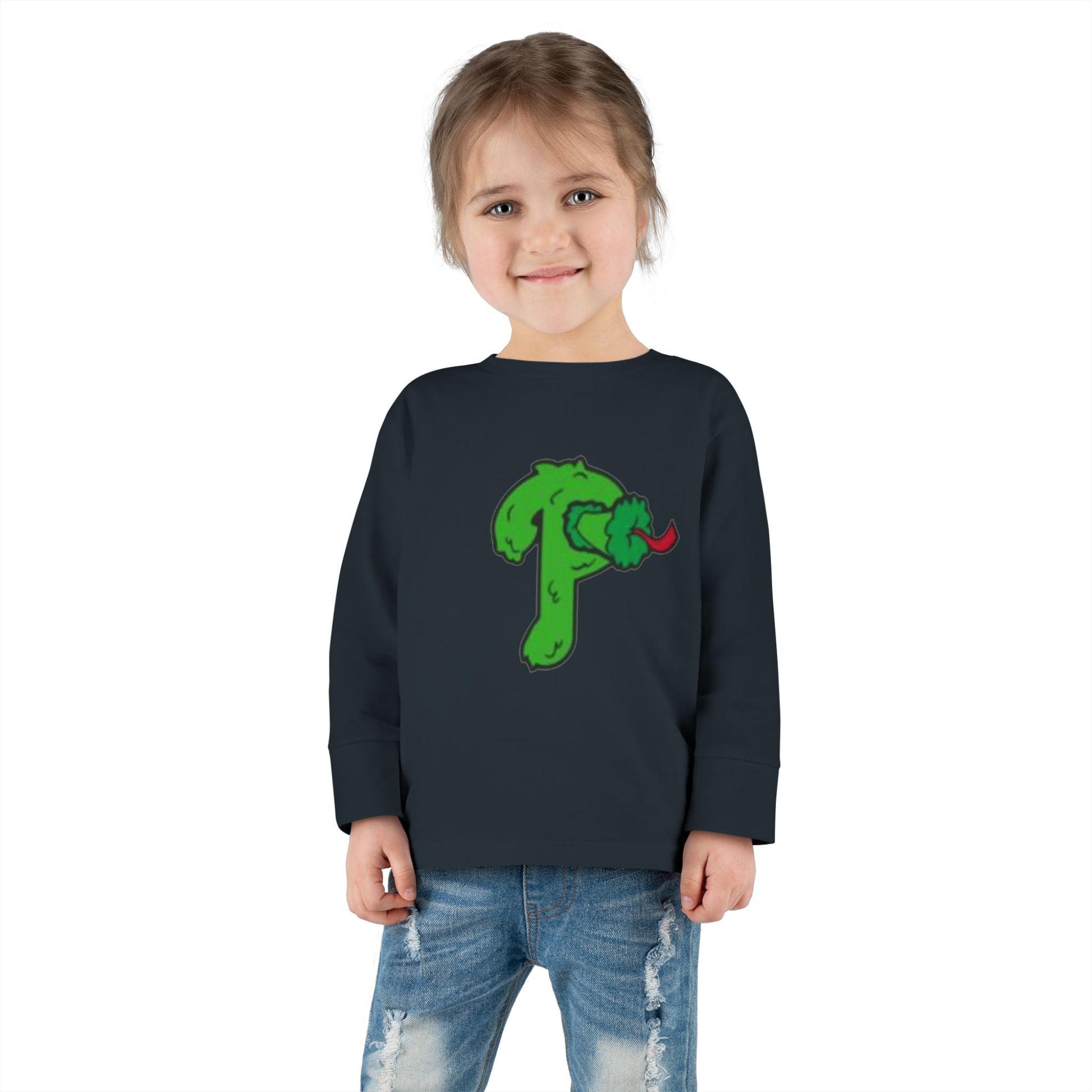 Funny Cartoon Mascot Toddler Long Sleeve Tee | Baseball Fan T-Shirt