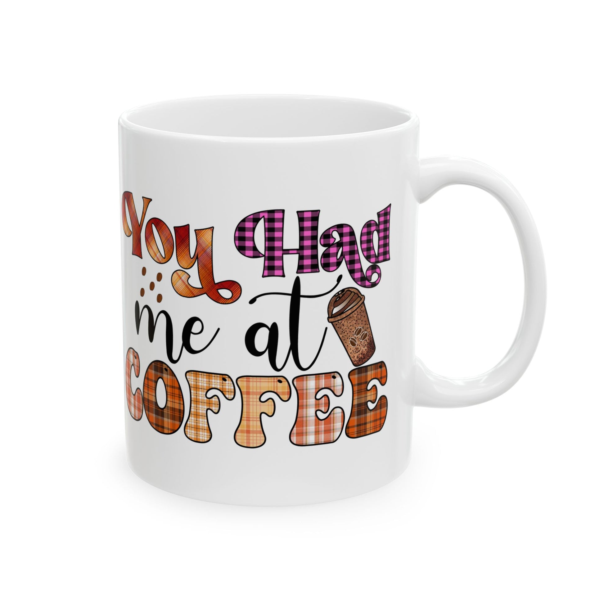 Fun coffee mug that says "You Had Me At Coffee". Perfect gift for coffee lovers and those who enjoy a good laugh in the morning. Ideal for gifting on Valentine's Day, birthdays, anniversaries, holidays, or as a thoughtful gesture for a friend.
