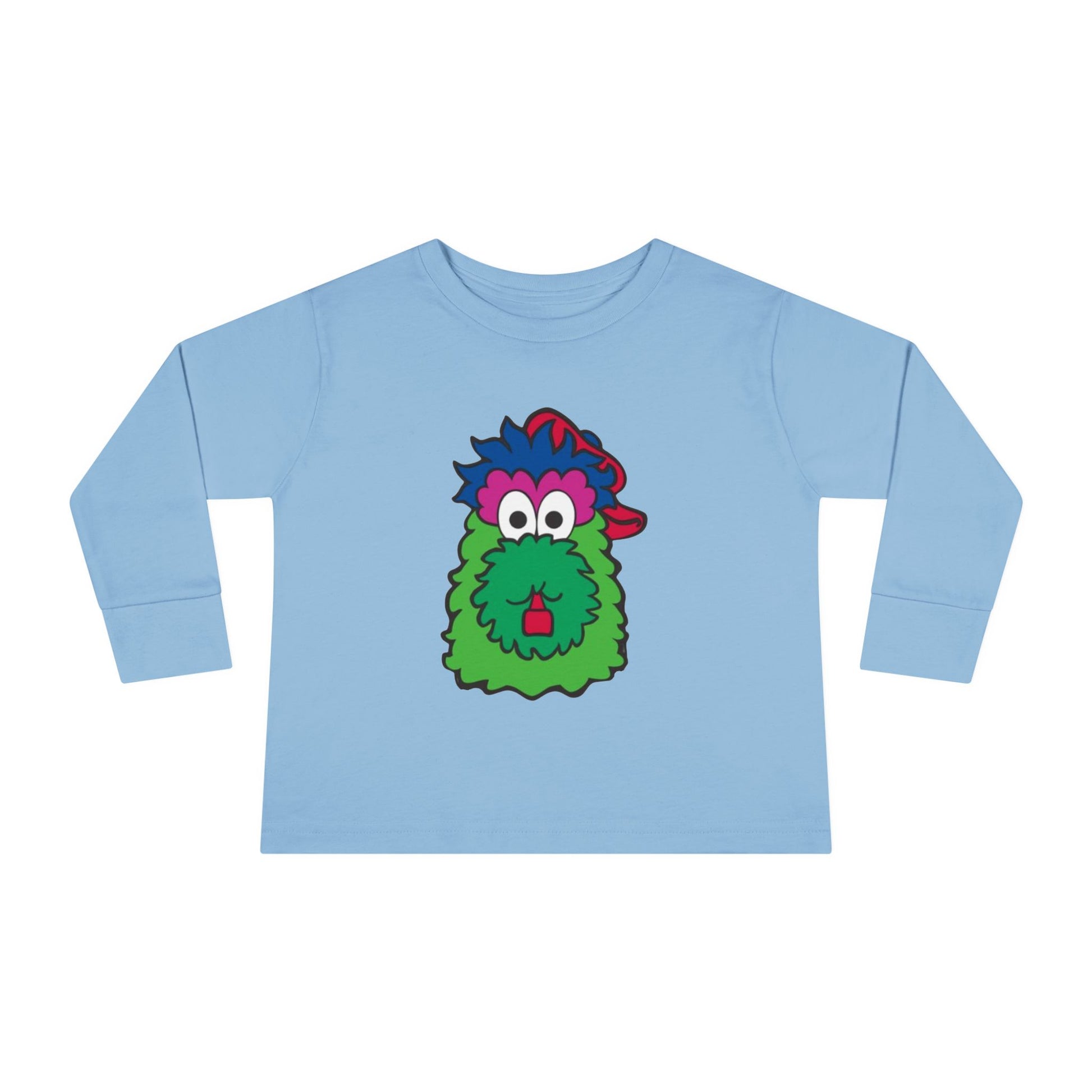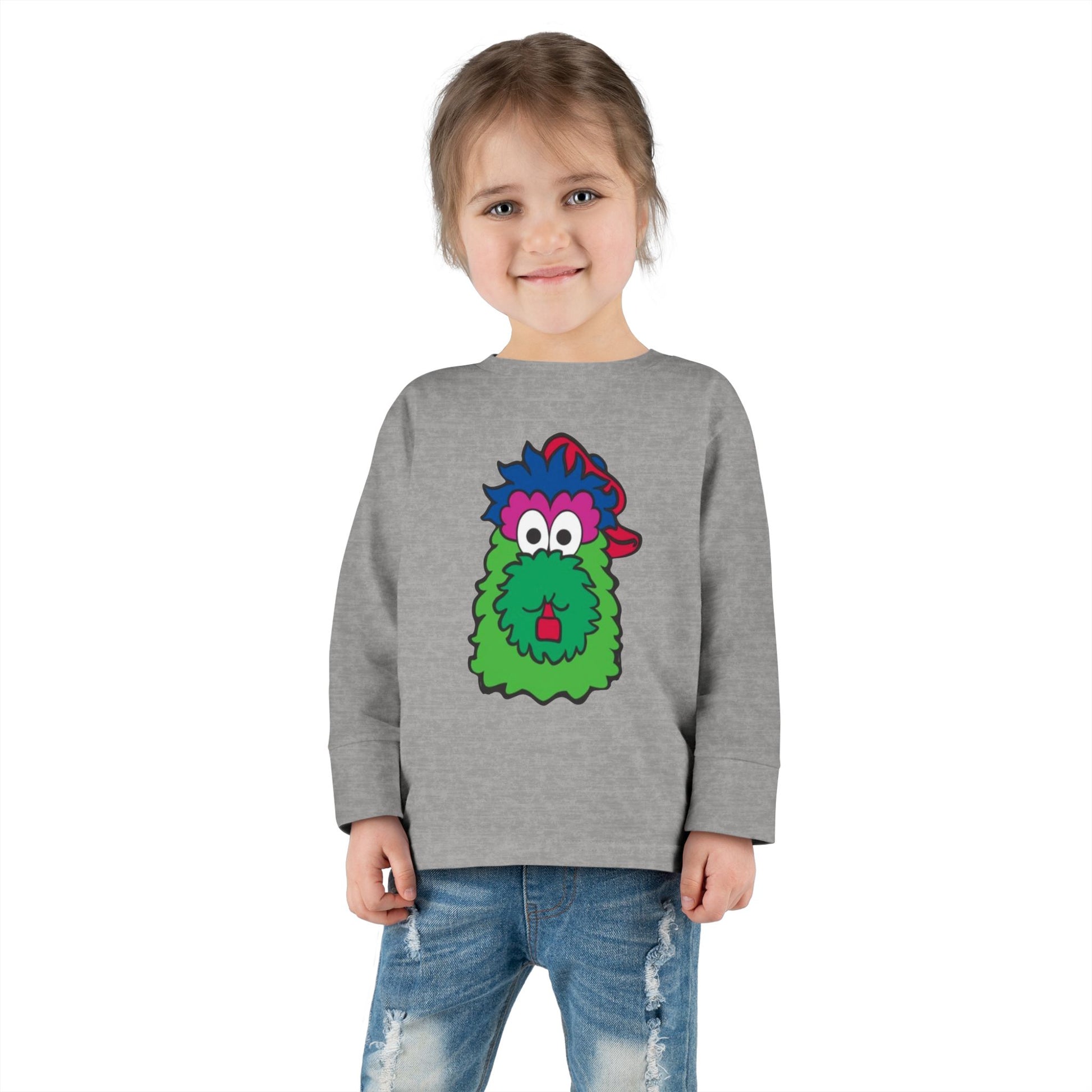 Cute Cartoon Mascot Kids Shirt – Fun Green Character Long Sleeve Tee