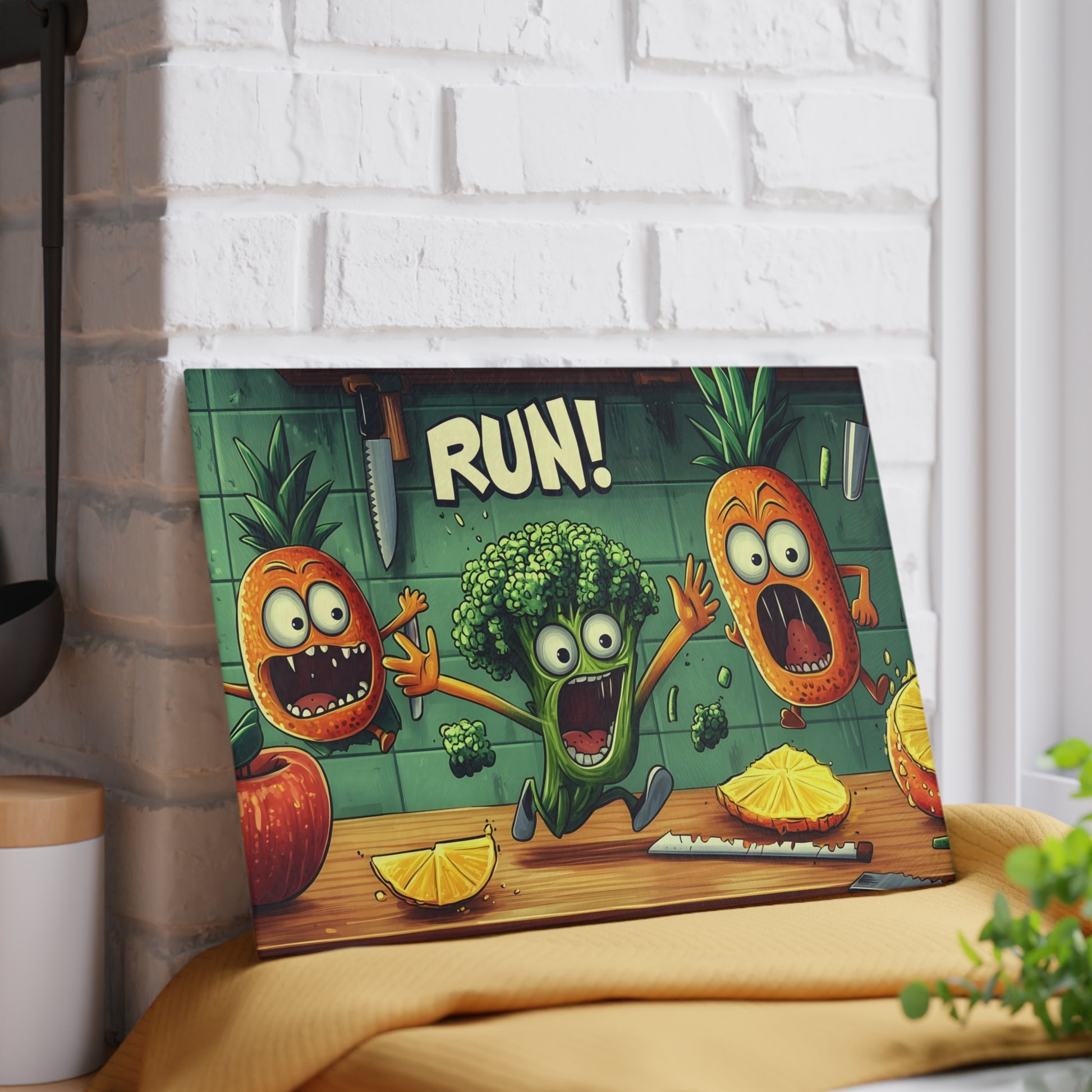 Funny Veggie Glass Cutting Board | Whimsical Kitchen Decor Gift