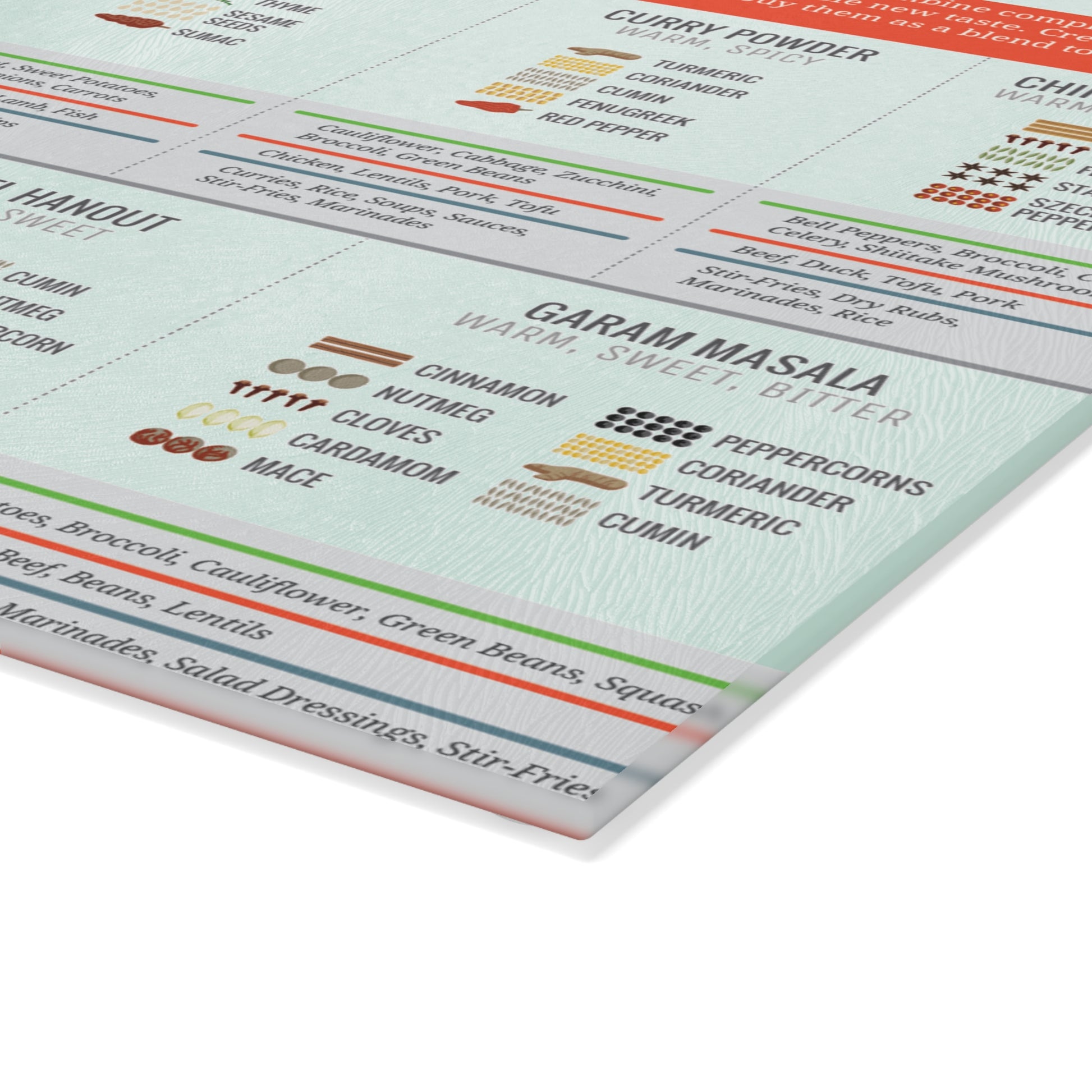 Each blend includes flavor profiles, suggested pairings, and uses, making it a handy and stylish reference for every cooking adventure. Printed on high-quality material, this art piece adds both beauty and function to your kitchen, pantry, or dining area.