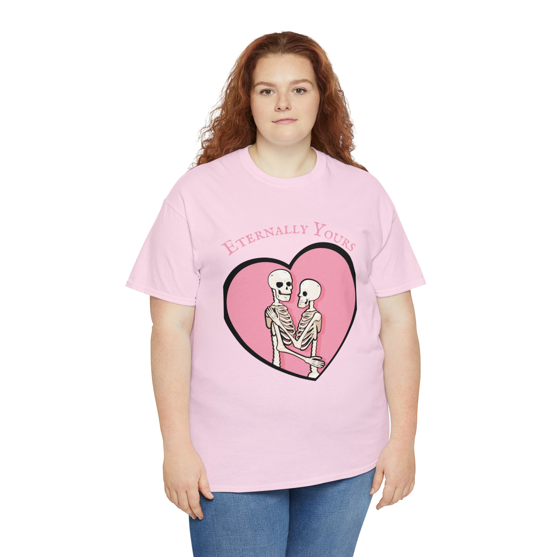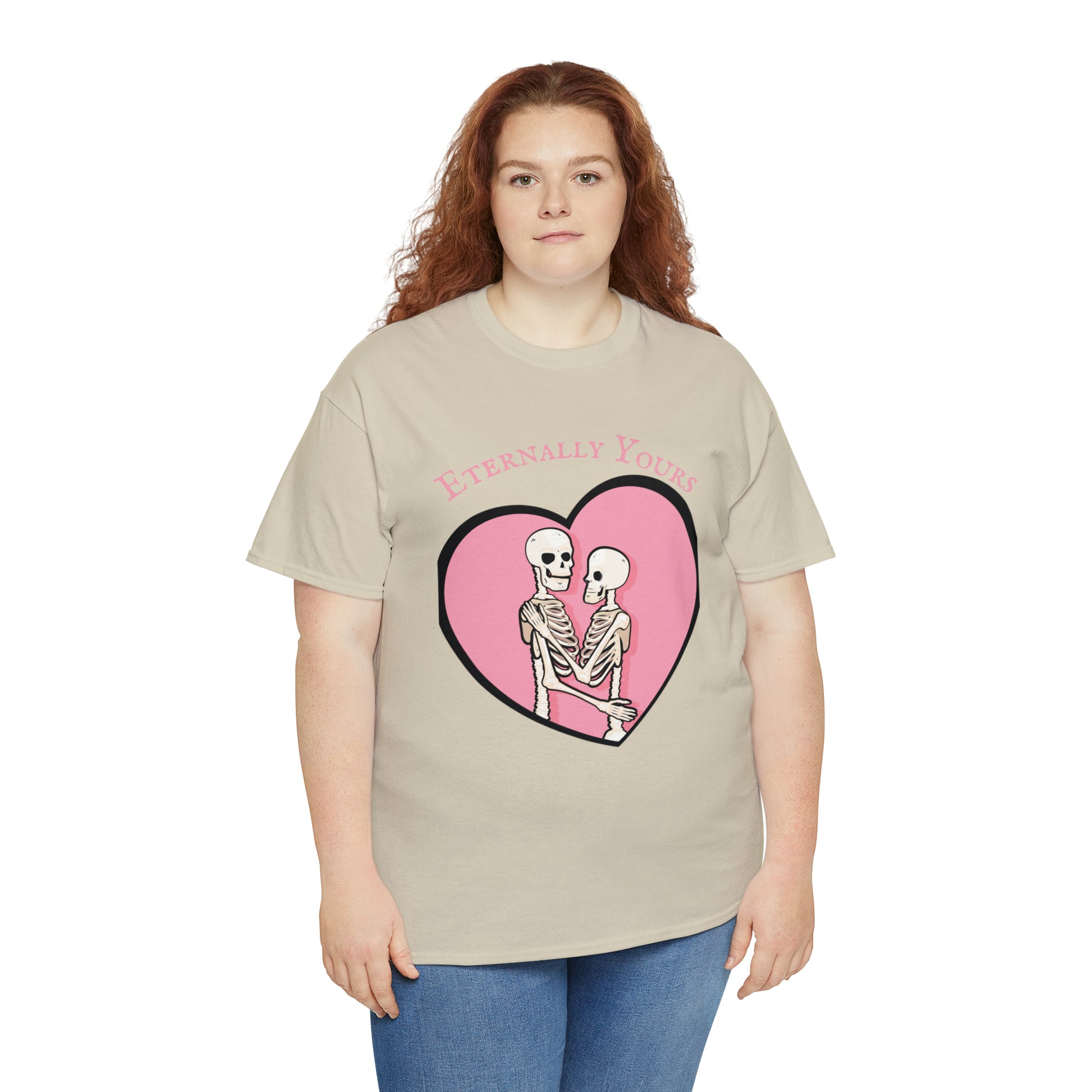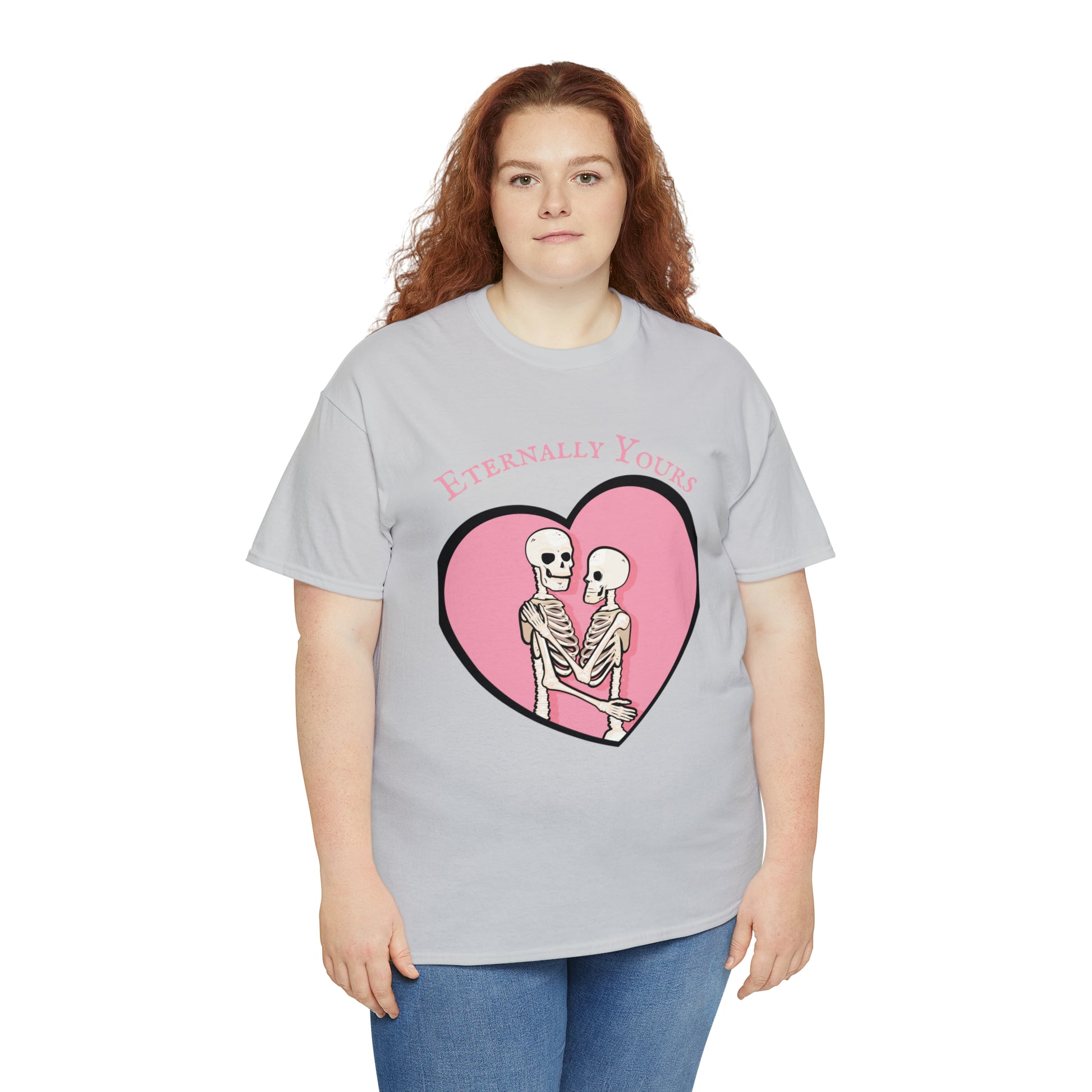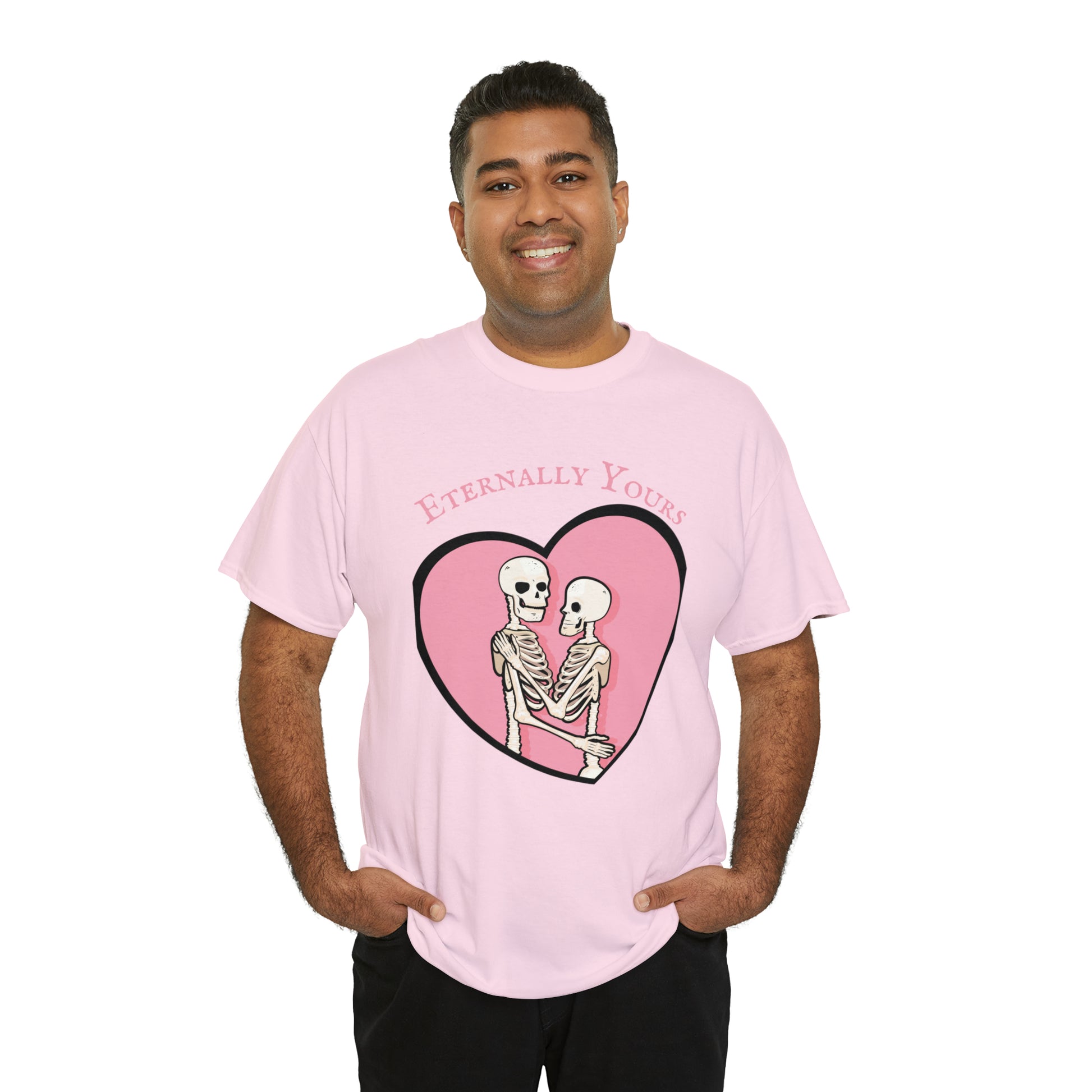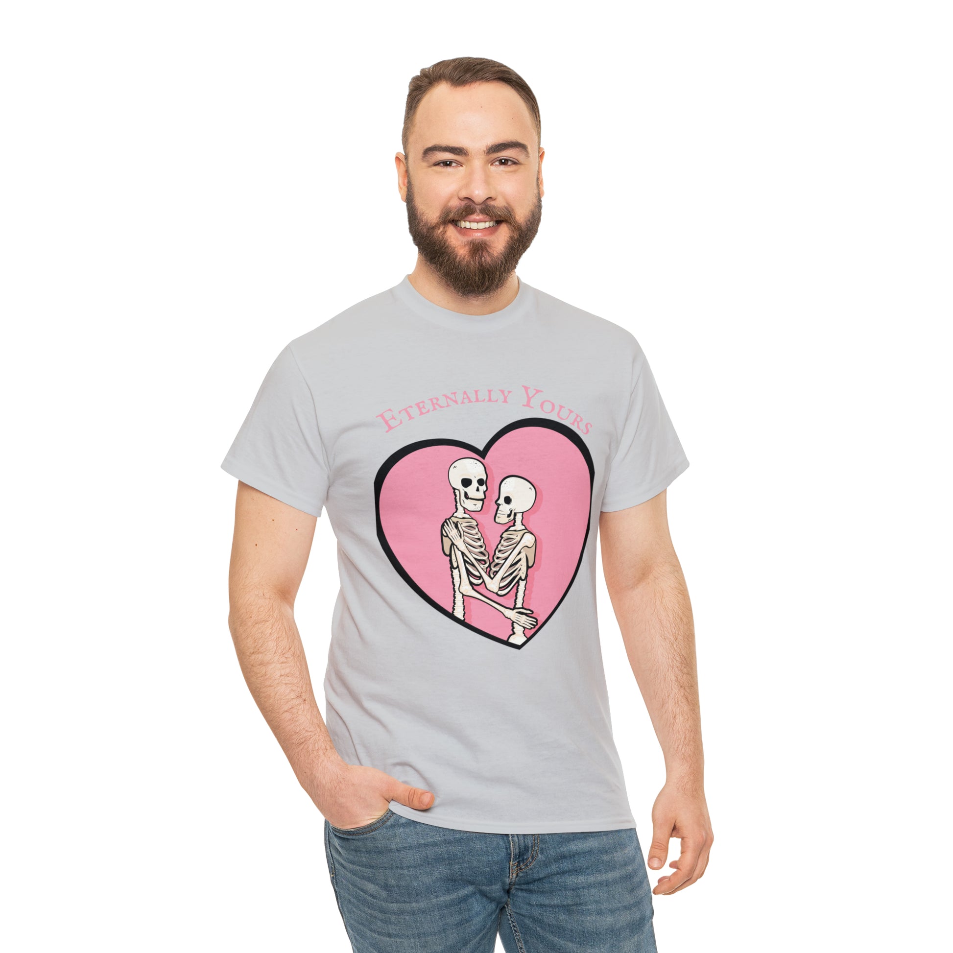 This 'Eternally Yours' Halloween Love T-Shirt is the perfect spooky gift for your favorite sweetheart. Show your Boo that your love is un-d(e)athable with this t-shirt that features two skeletons embracing and a punny phrase for an extra spooky touch!