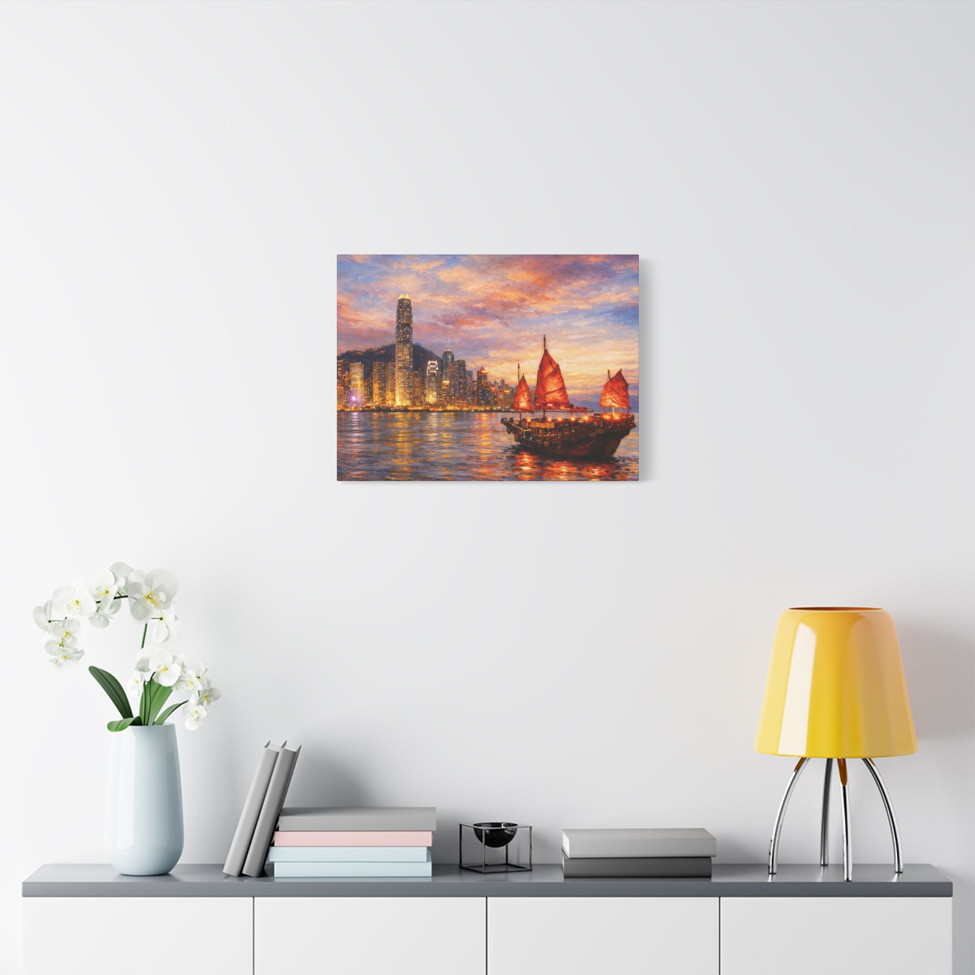 Perfect for modern homes, offices, or travel-inspired interiors, this piece blends elegant realism and painterly texture, making it a striking focal point without overpowering your décor. A matte stretched canvas that brings a warm harbor evening into your space. This piece works as a quiet focal point in living rooms, entryways, or offices, inviting slow moments of reflection and the gentle hum of distant city lights.