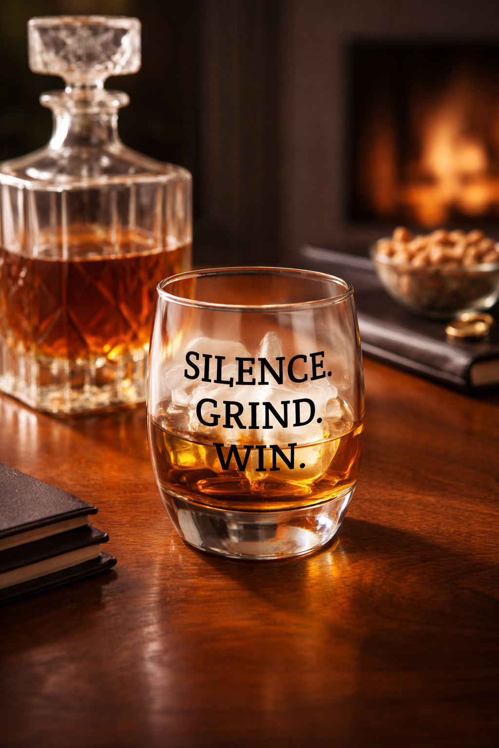 Hustle Mindset Whiskey Glass | Silence Grind Win Bar Glass