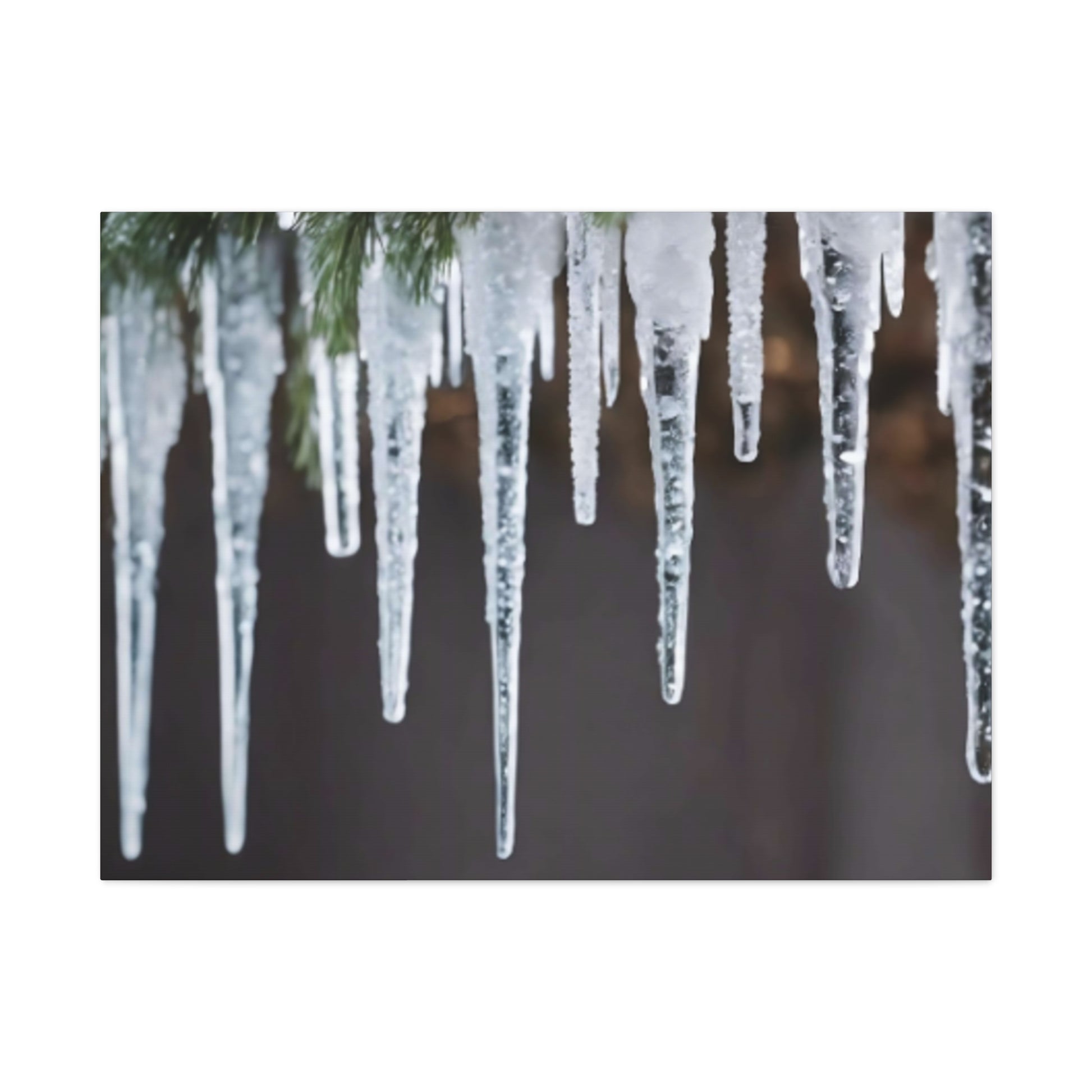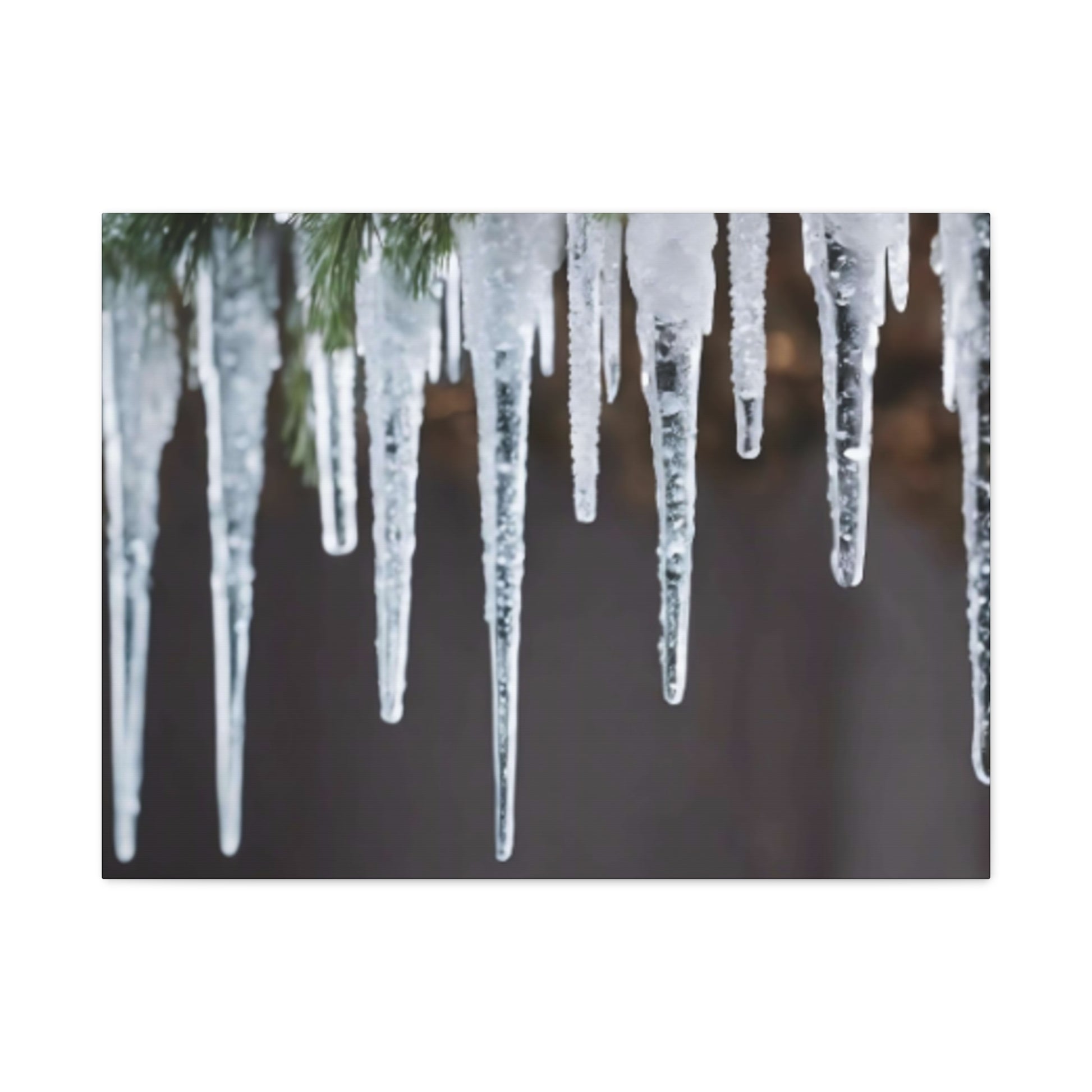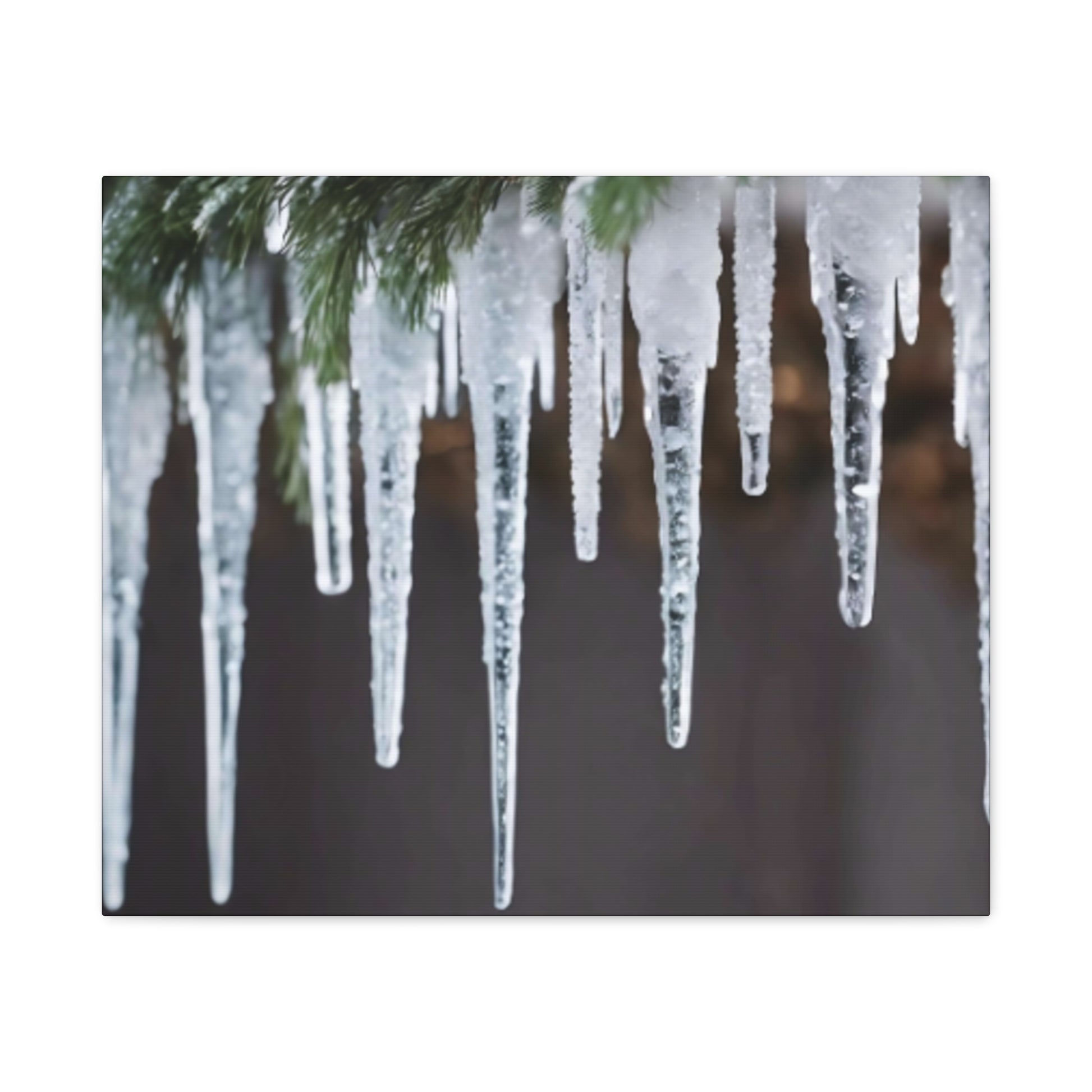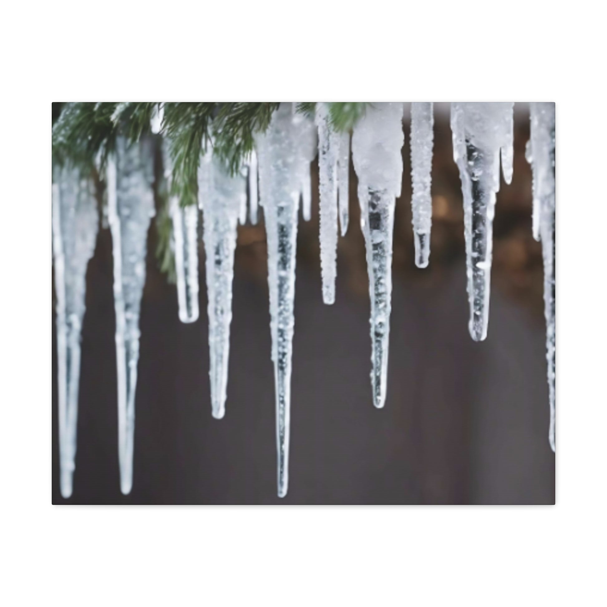 Add a touch of winter wonderland to your home with this canvas Christmas wall art featuring icicles on a pine branch. Perfect for mantle decor during the holiday season, this piece brings a festive and cozy atmosphere to any room. Ideal for those who love decorating for Christmas and want a unique and sustainable piece of art to showcase in their home.