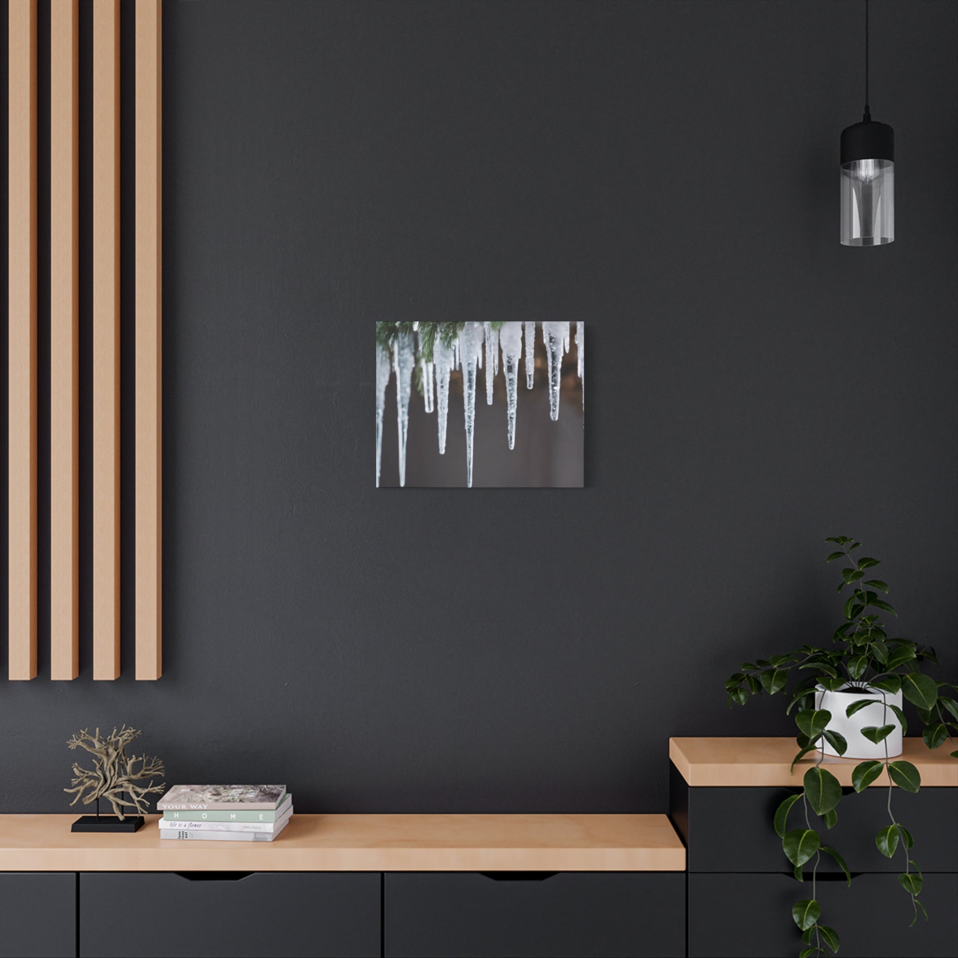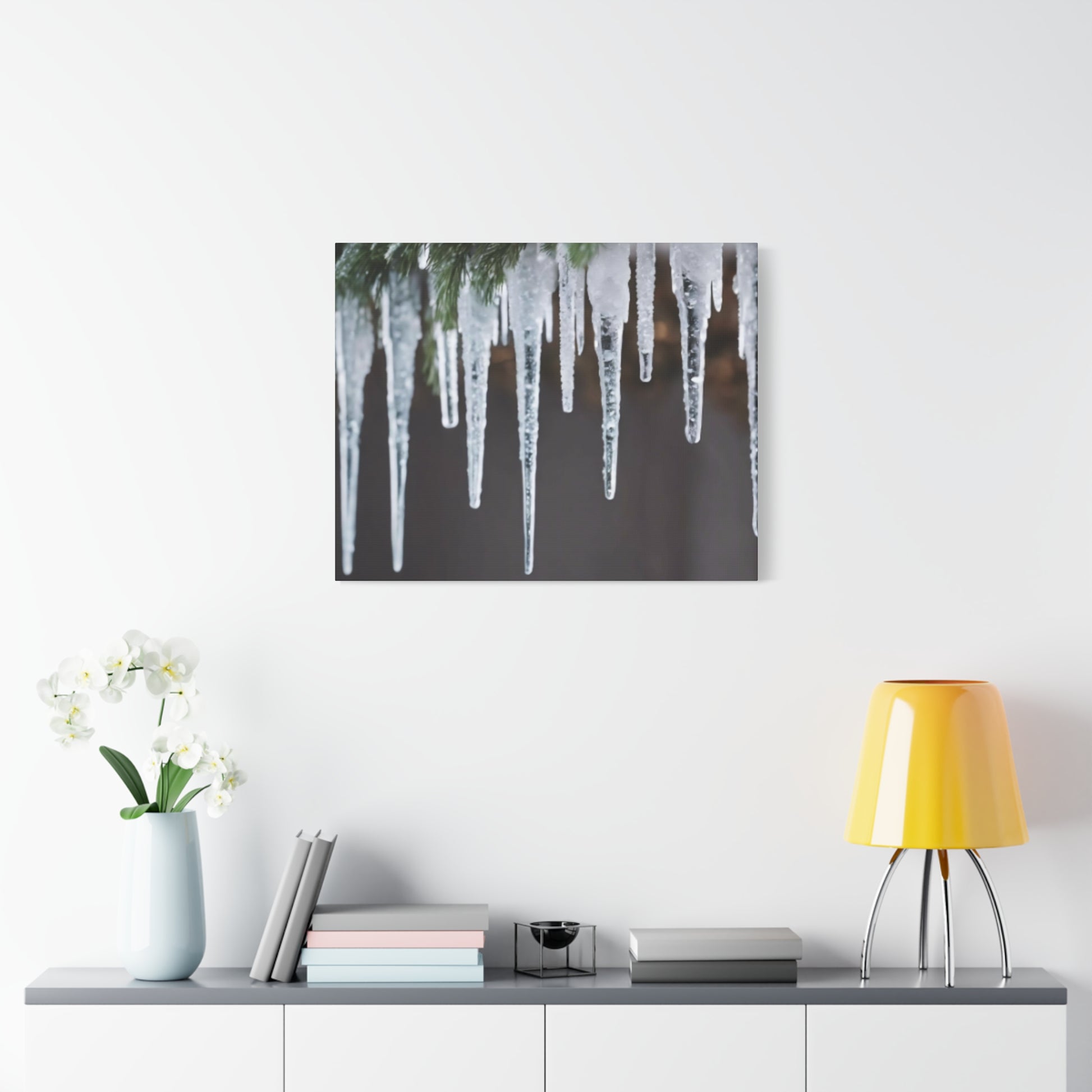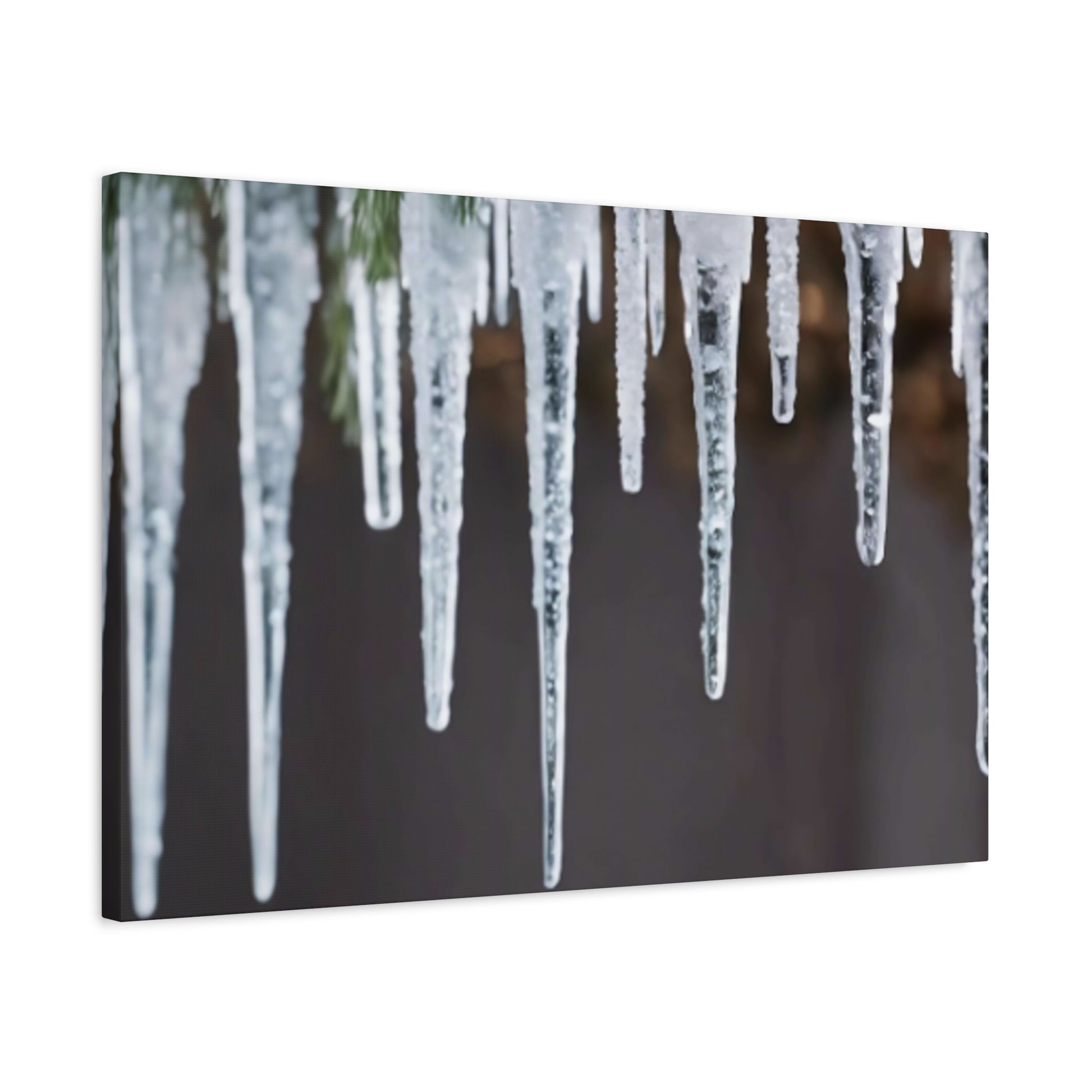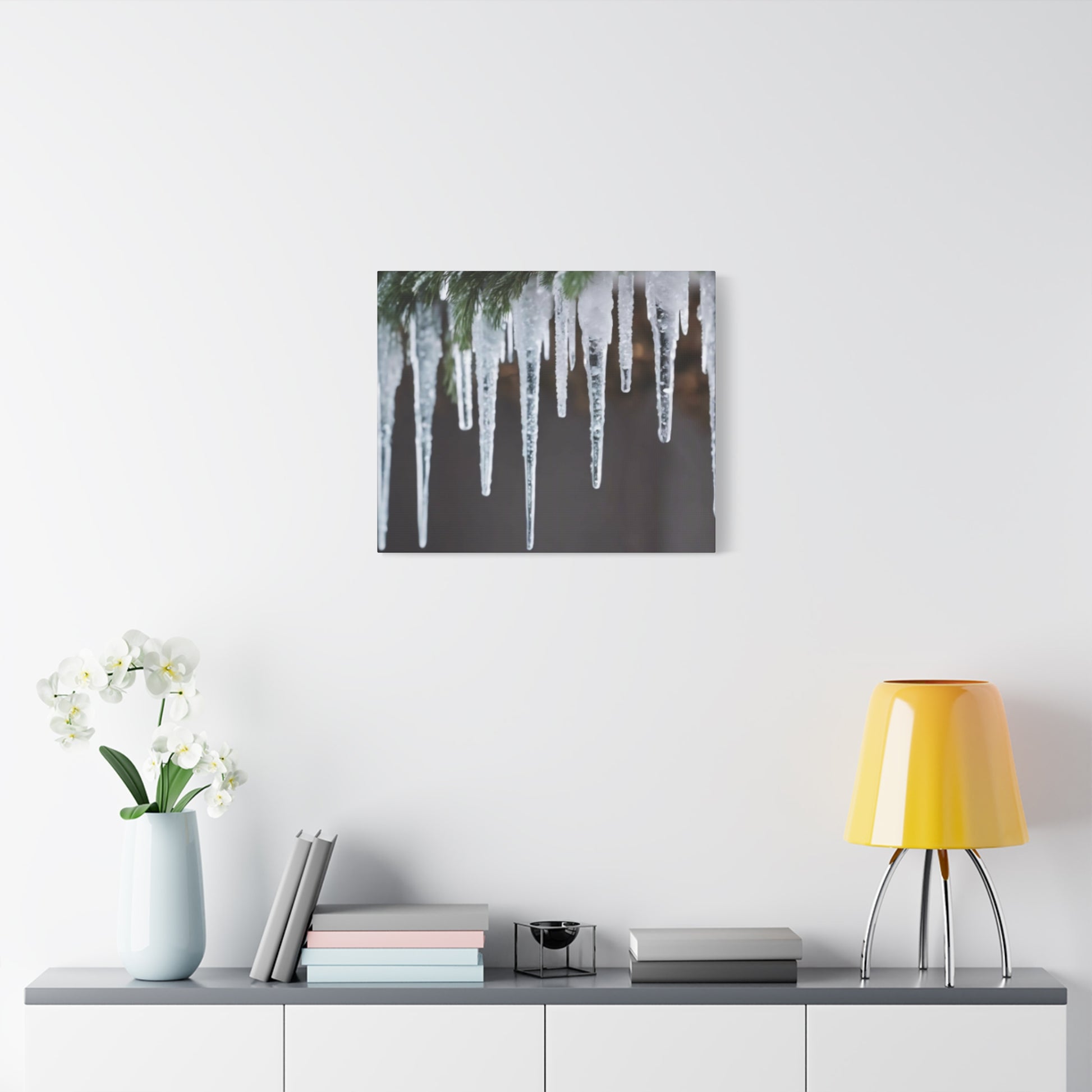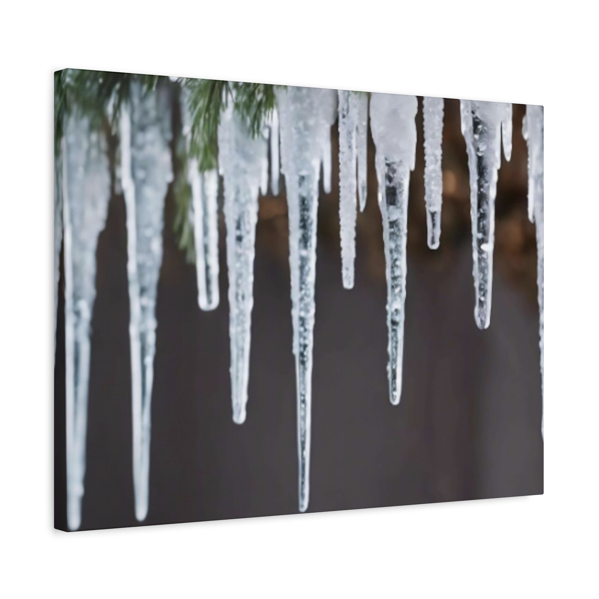 Add a touch of winter wonderland to your home with this canvas Christmas wall art featuring icicles on a pine branch. Perfect for mantle decor during the holiday season, this piece brings a festive and cozy atmosphere to any room. Ideal for those who love decorating for Christmas and want a unique and sustainable piece of art to showcase in their home.