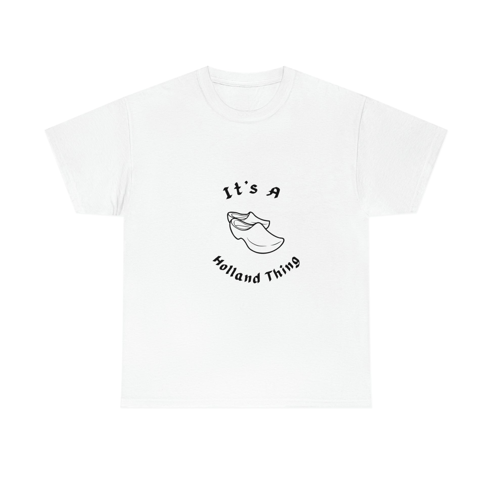Looking for a fun and playful way to show off your Dutch pride? Check out our new "It's a Holland Thing" t-shirt, featuring a delightful drawing of traditional Dutch shoes.