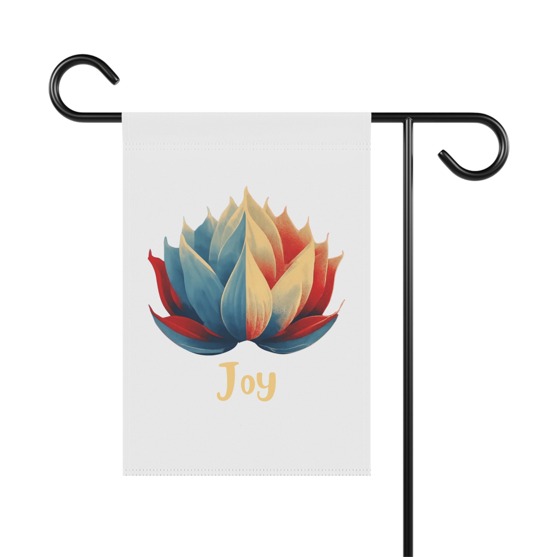 Bring serenity and color to your outdoor space with this Joy Lotus Garden Flag. Featuring a vibrant lotus flower in rich blue, red, and golden tones with the word “Joy” beneath, this flag creates an uplifting focal point for gardens, porches, patios, or entryways. The lotus symbolizes peace, renewal, and positivity — making this flag a meaningful accent for your home or a thoughtful gift for someone special.