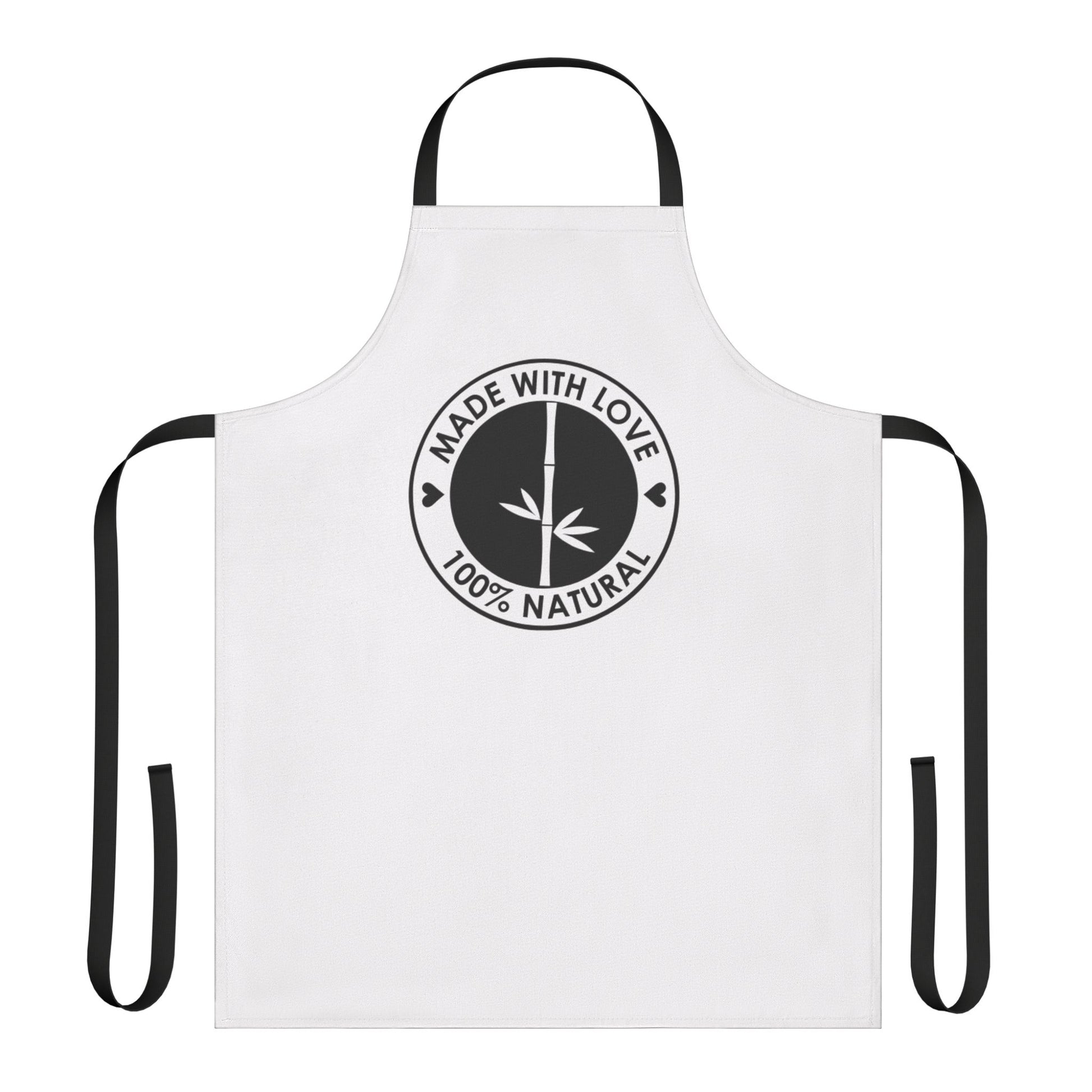 Made With Love 100% Natural Chef Apron — White Apron with Black Ties
