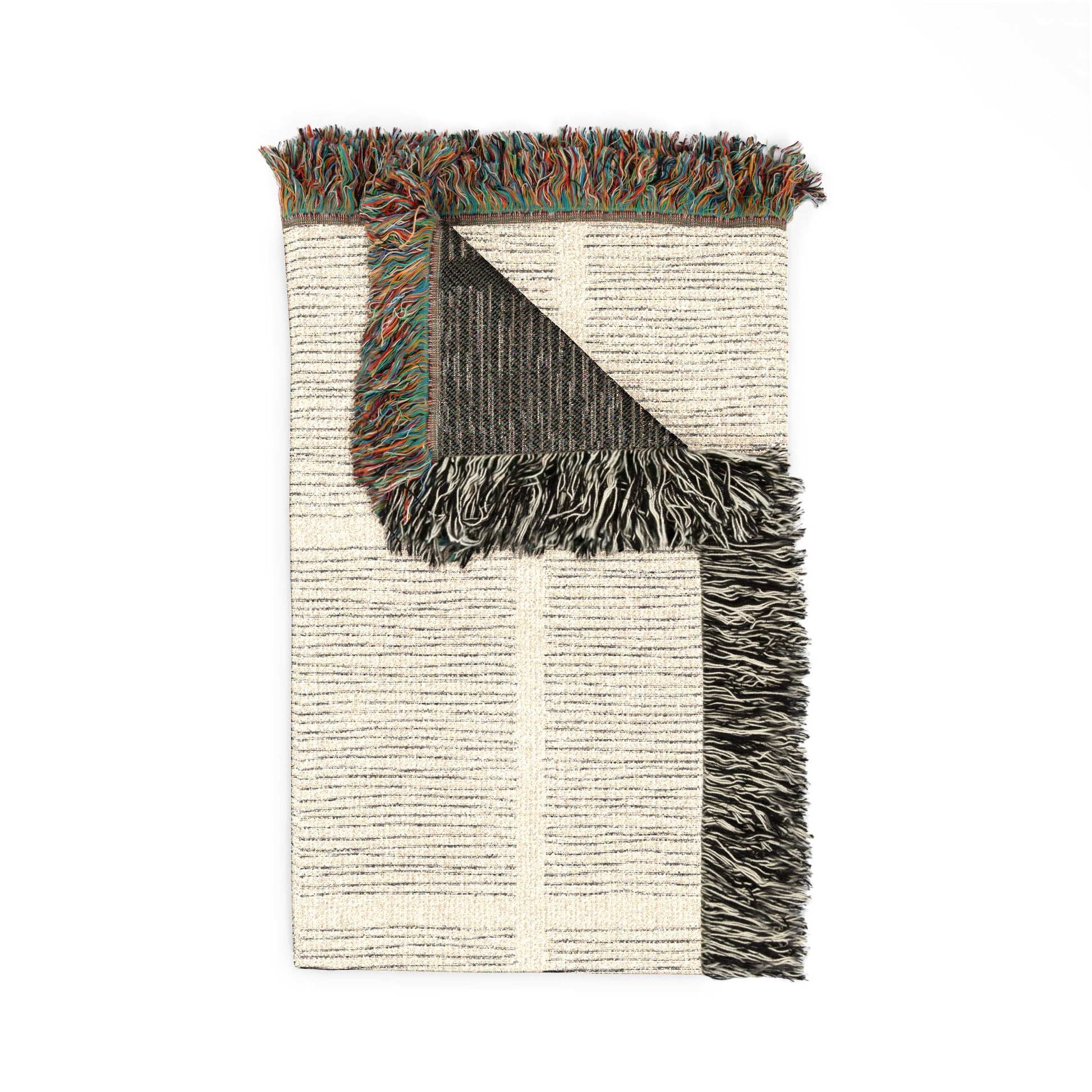 - Finished with multicolor fringe edging