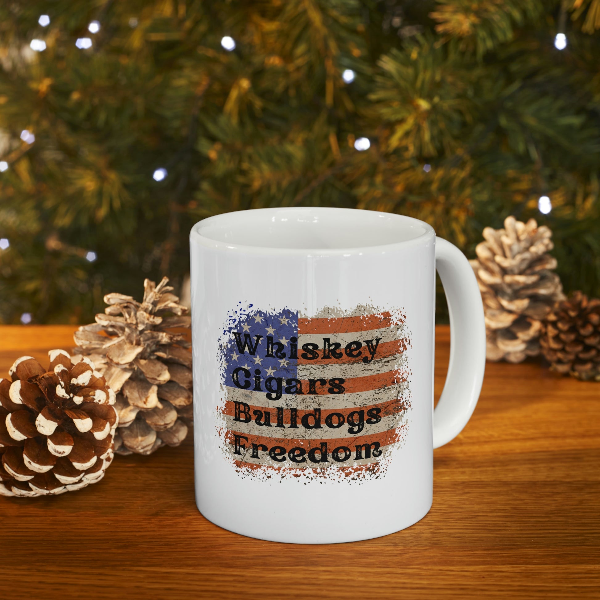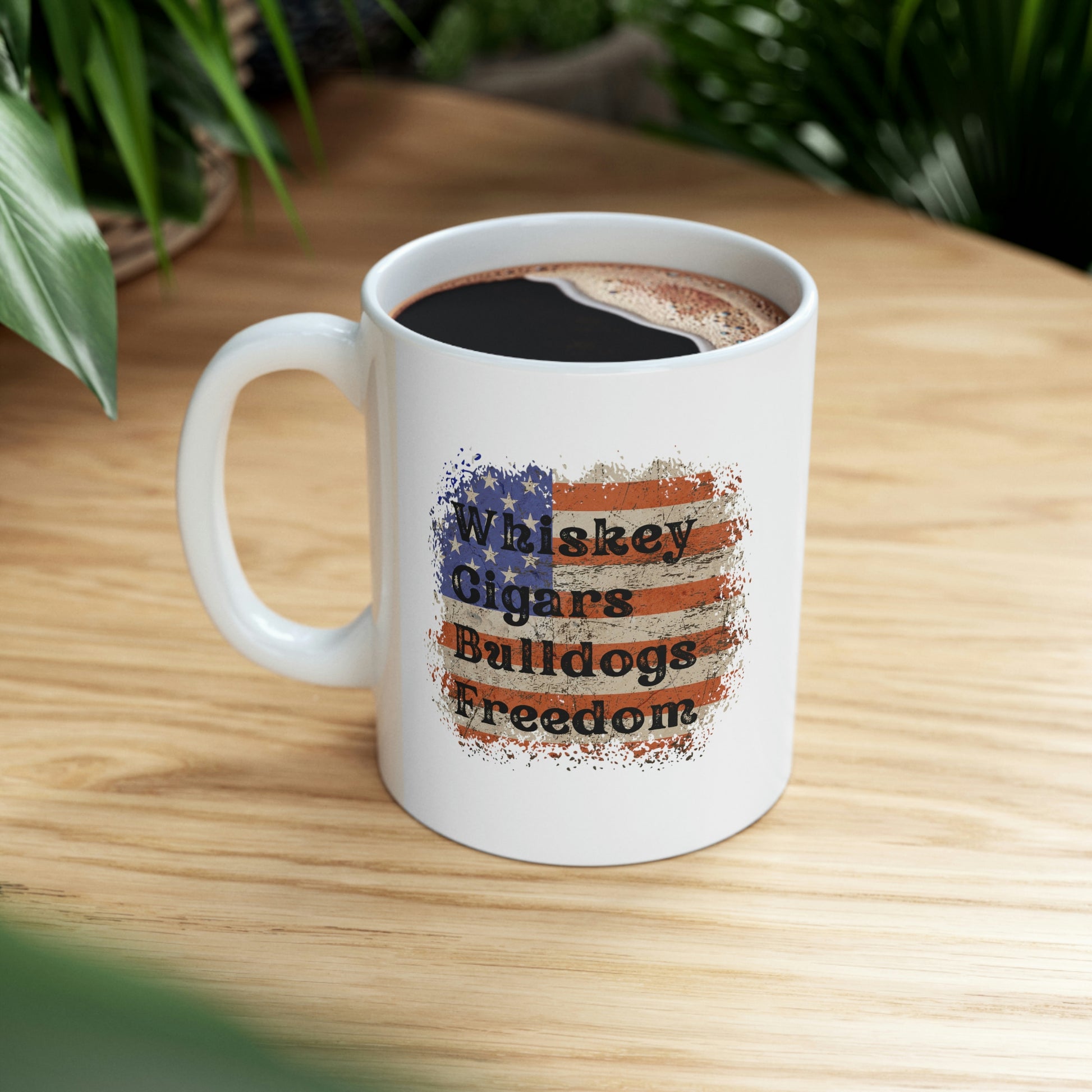 Patriotic Rustic USA Flag Whiskey Cigars Bulldog Mug