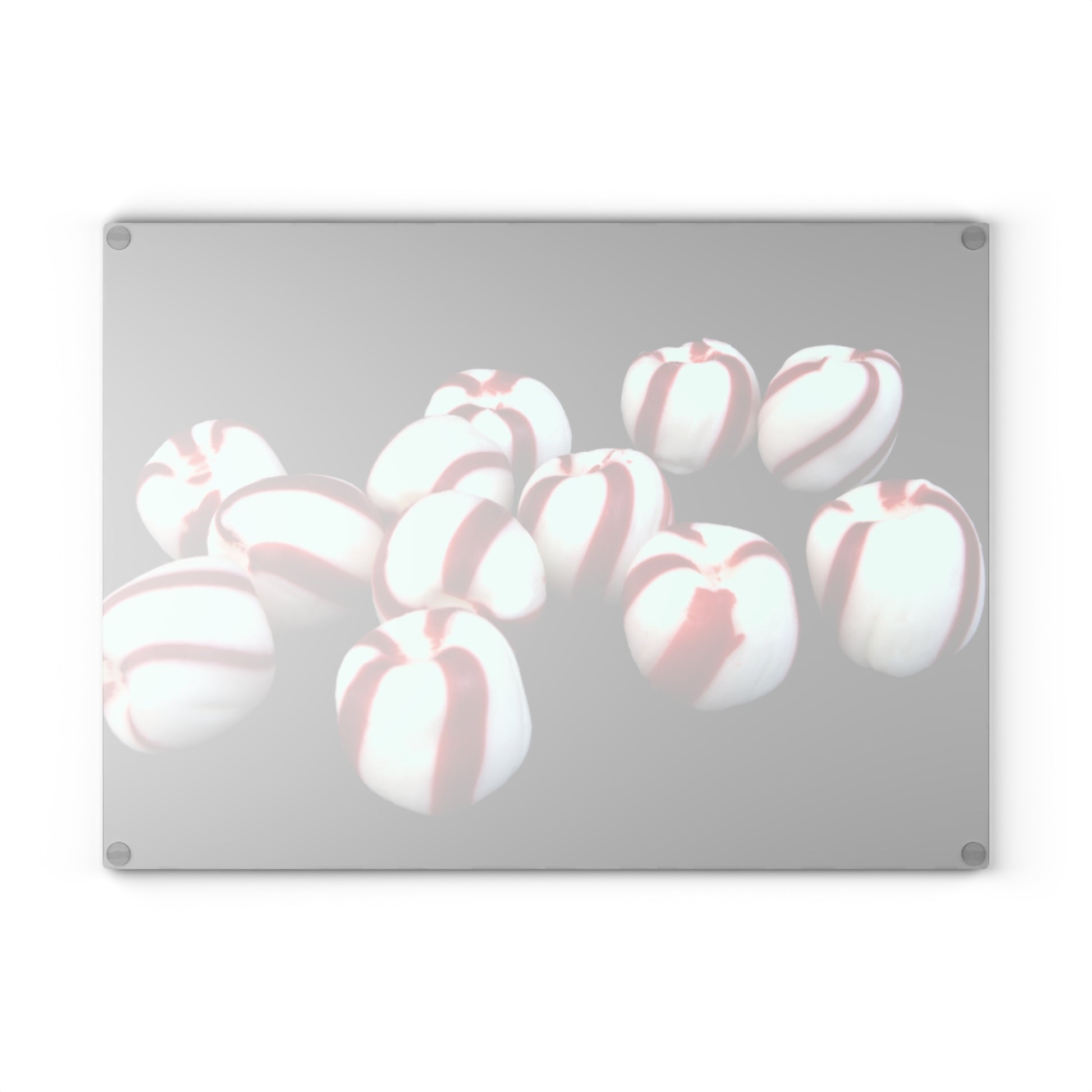 Brighten up your kitchen this holiday season with this festive glass cutting board, adorned with a delightful peppermint candy pattern! The vibrant red-and-white candies bring a cheerful, nostalgic touch to your holiday cooking and entertaining. Made from durable, heat-resistant tempered glass, this cutting board not only adds a splash of holiday spirit but is also practical for all your kitchen needs – from prepping ingredients to serving hors d’oeuvres.