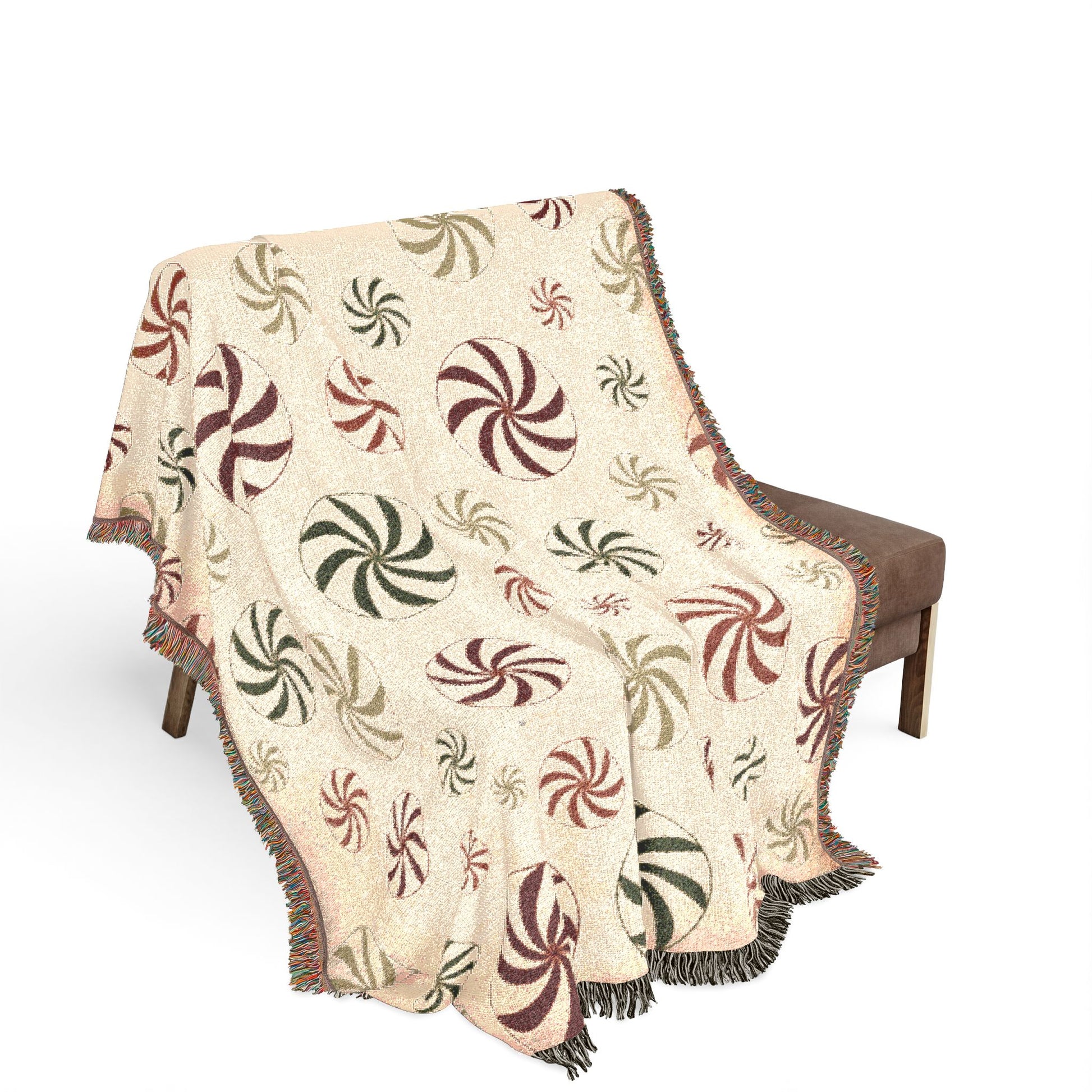 Peppermint Swirl Woven Throw Blanket | Cozy Christmas Holiday Decor