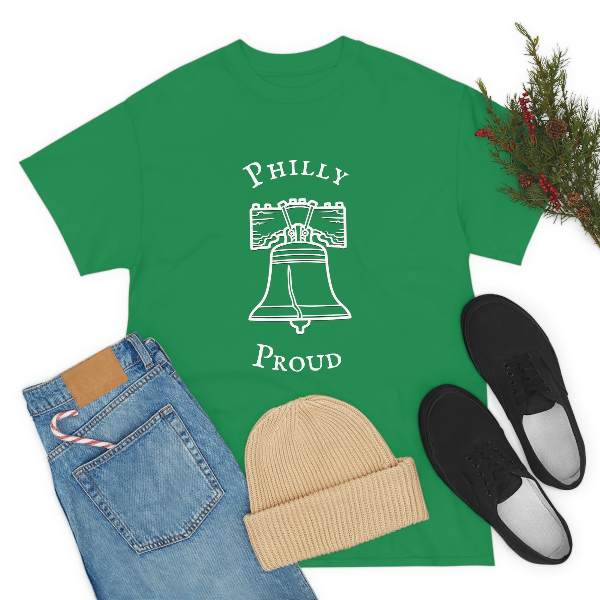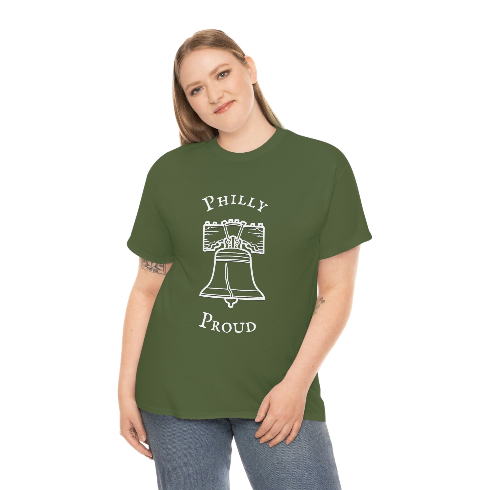 Looking for a way to show your Philly pride? Look no further than our "Philly Proud" t-shirt! With a bold design featuring the iconic Liberty Bell, this shirt is the perfect way to show off your love for the City of Brotherly Love.
