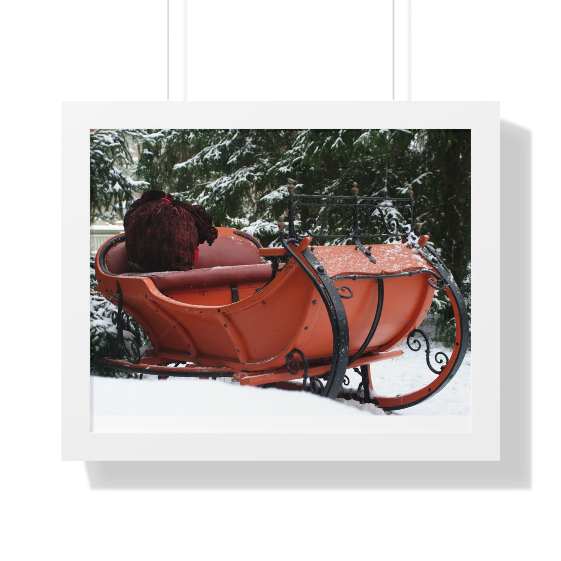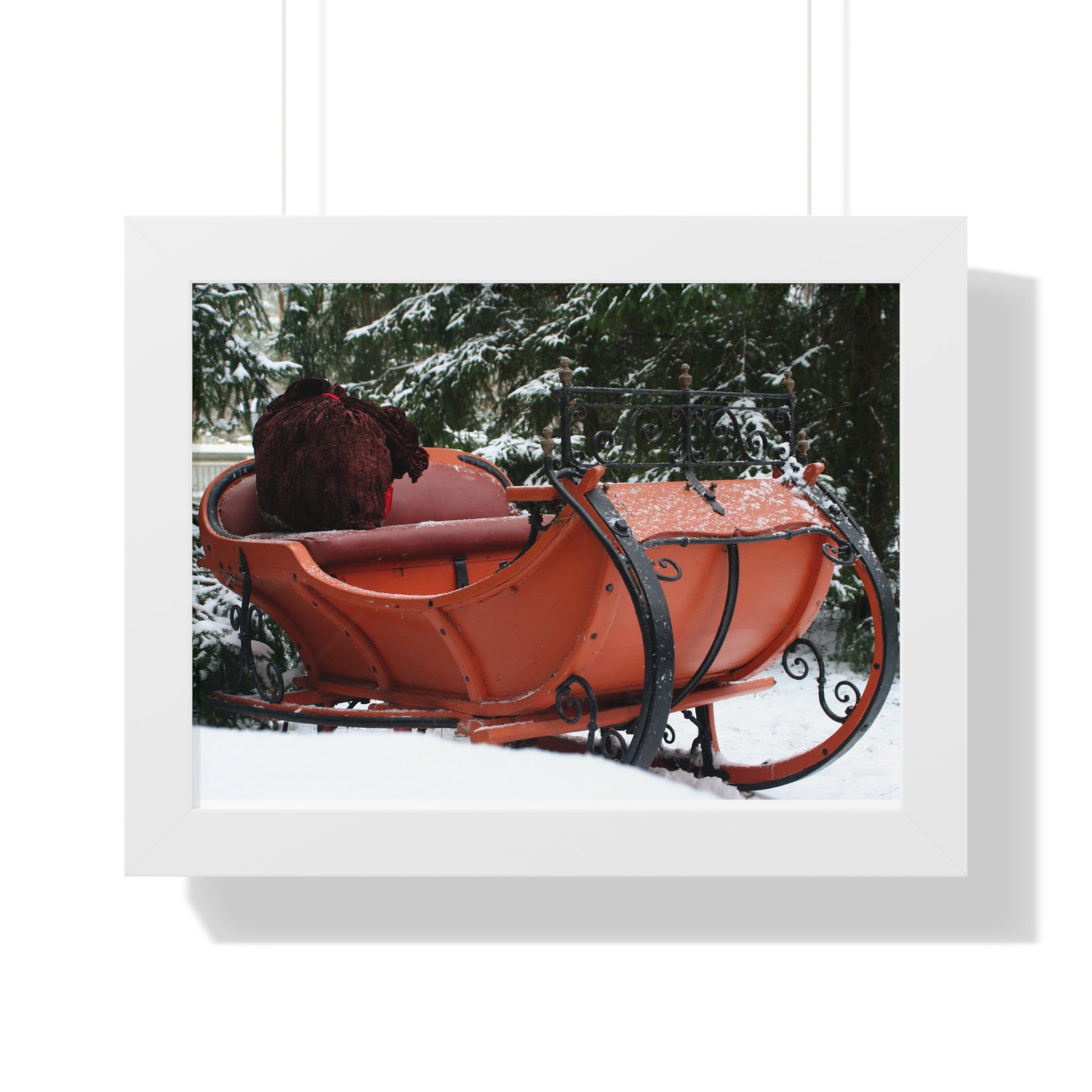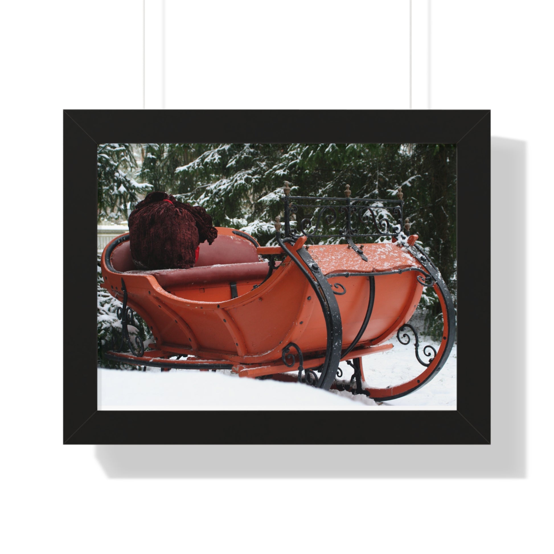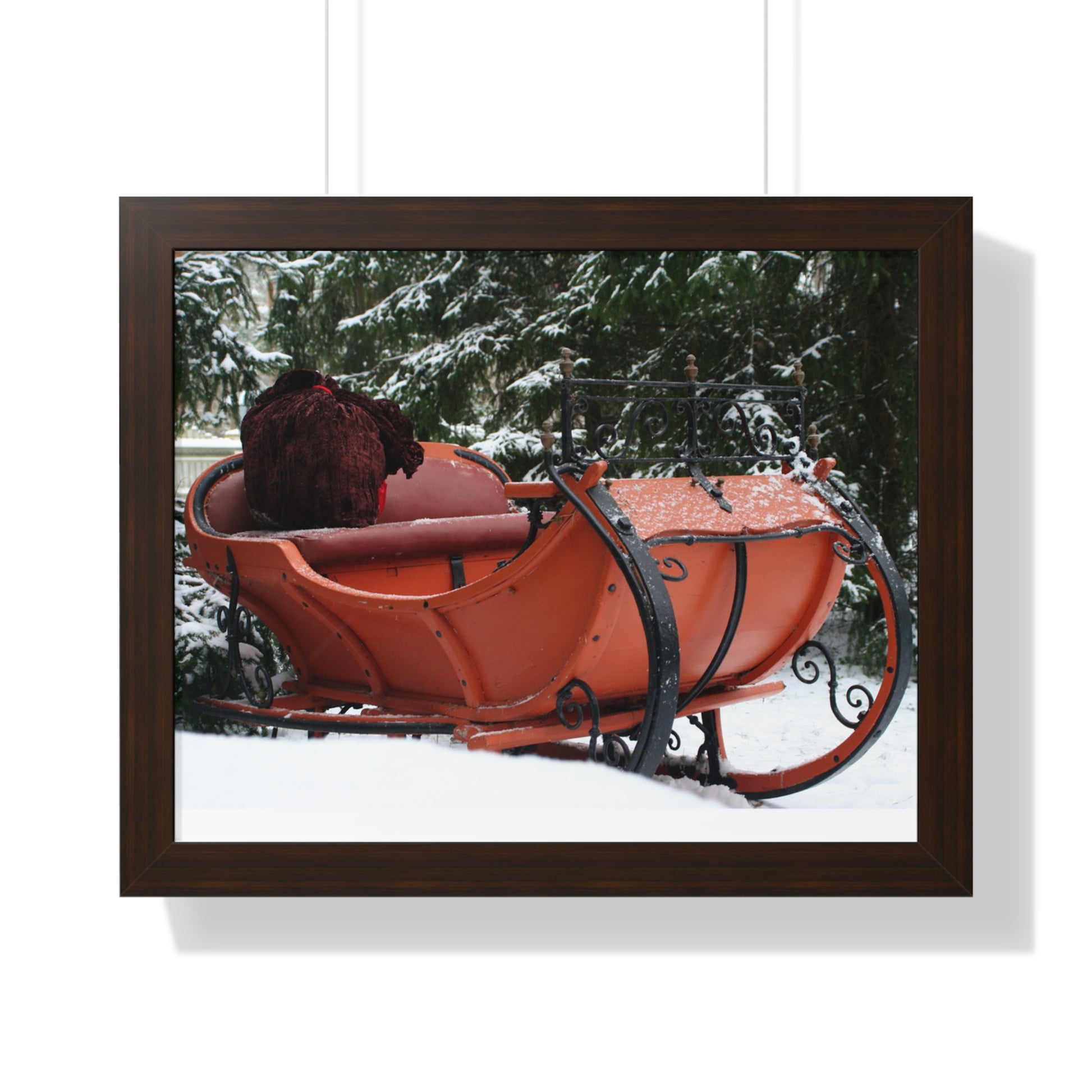 Featuring a festive image of Santa's sleigh in the snow with a bag of toys, this framed posted is perfect for adding a touch of holiday cheer to any room. Perfect as wall or mantle art holiday decor. It gives off a cozy and cheerful vibe, making it ideal for those who love Christmas and festive decorations This poster is a great addition to any home during the holiday season and can also be a thoughtful gift for friends and family.