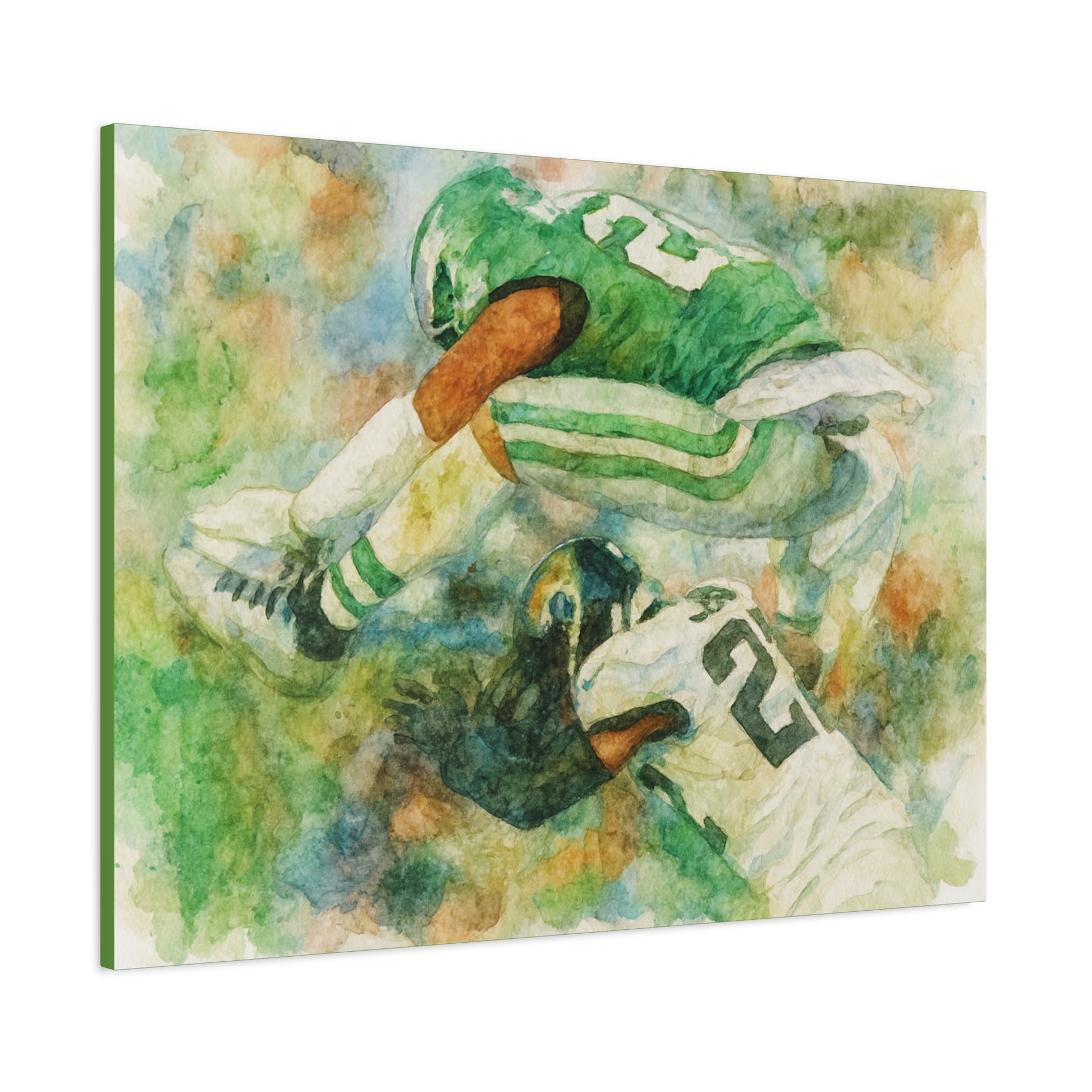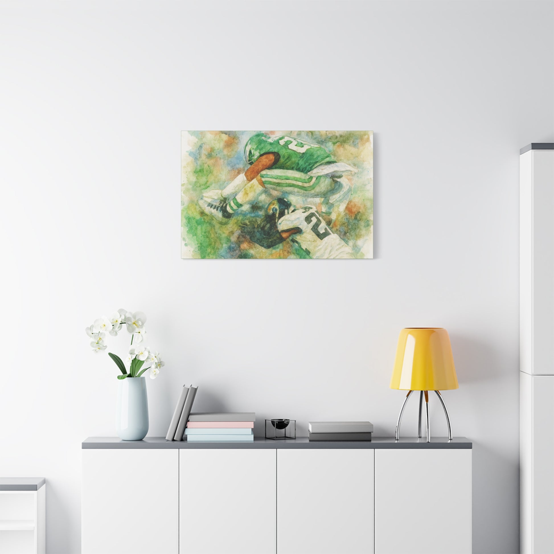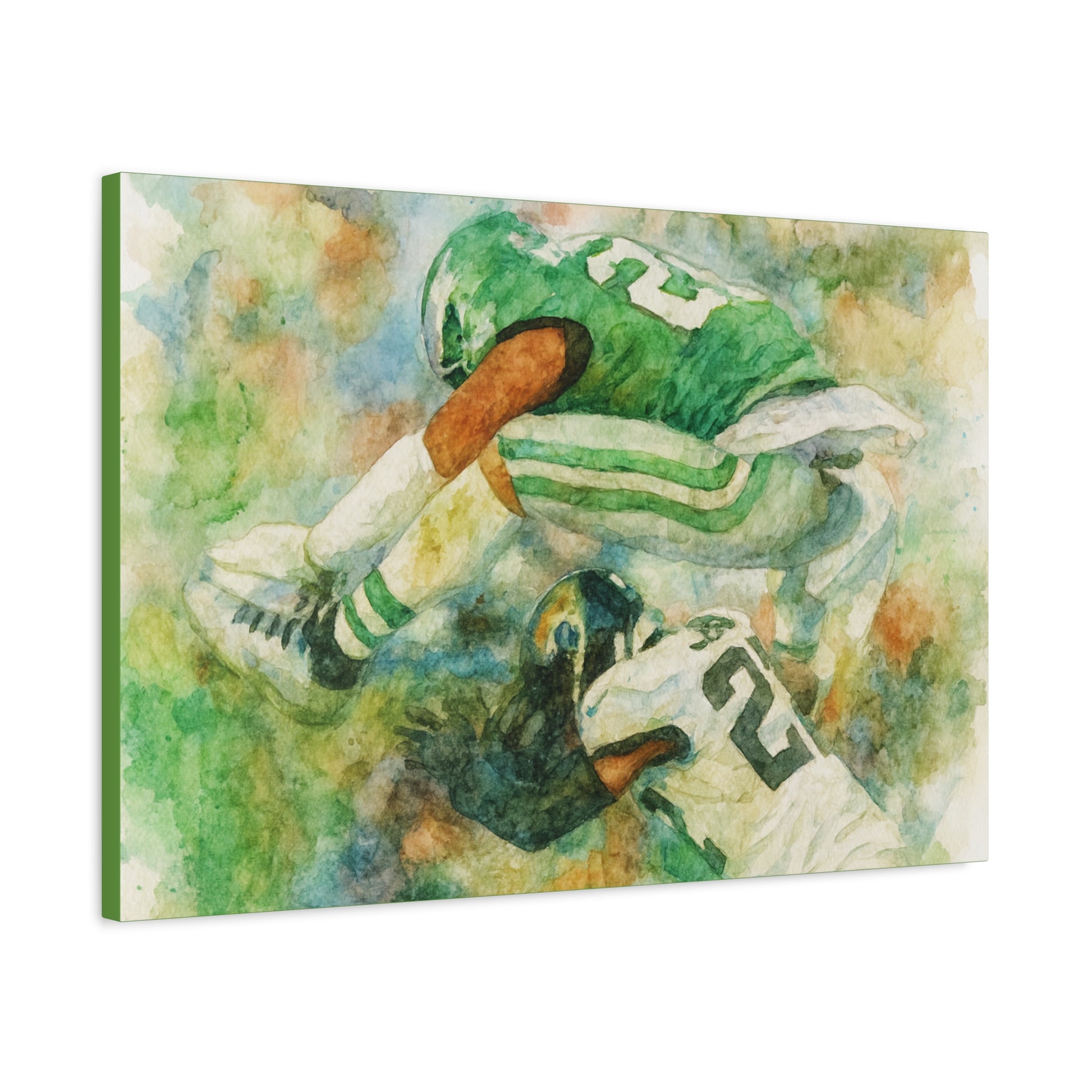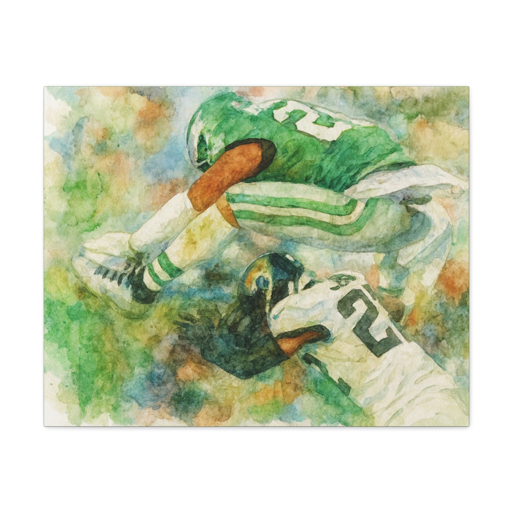 Saquon Barkley Backwards Hurdle Watercolor Canvas | Philadelphia Eagles Football Wall Art Print on 1.25" Canvas | Game Day Fan Cave Gift