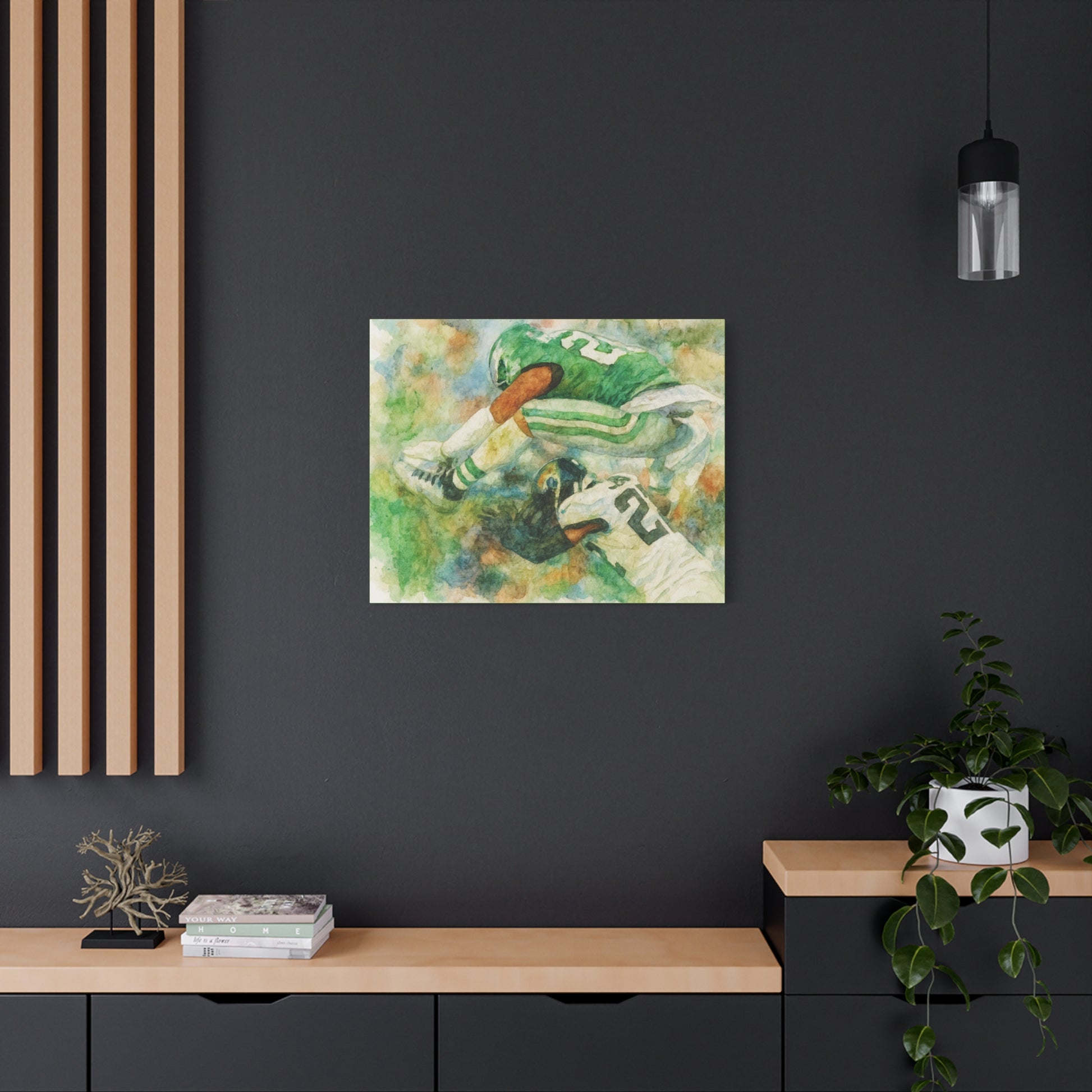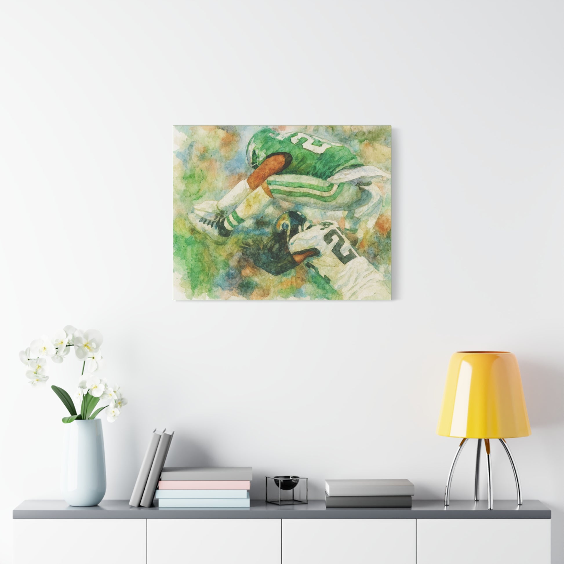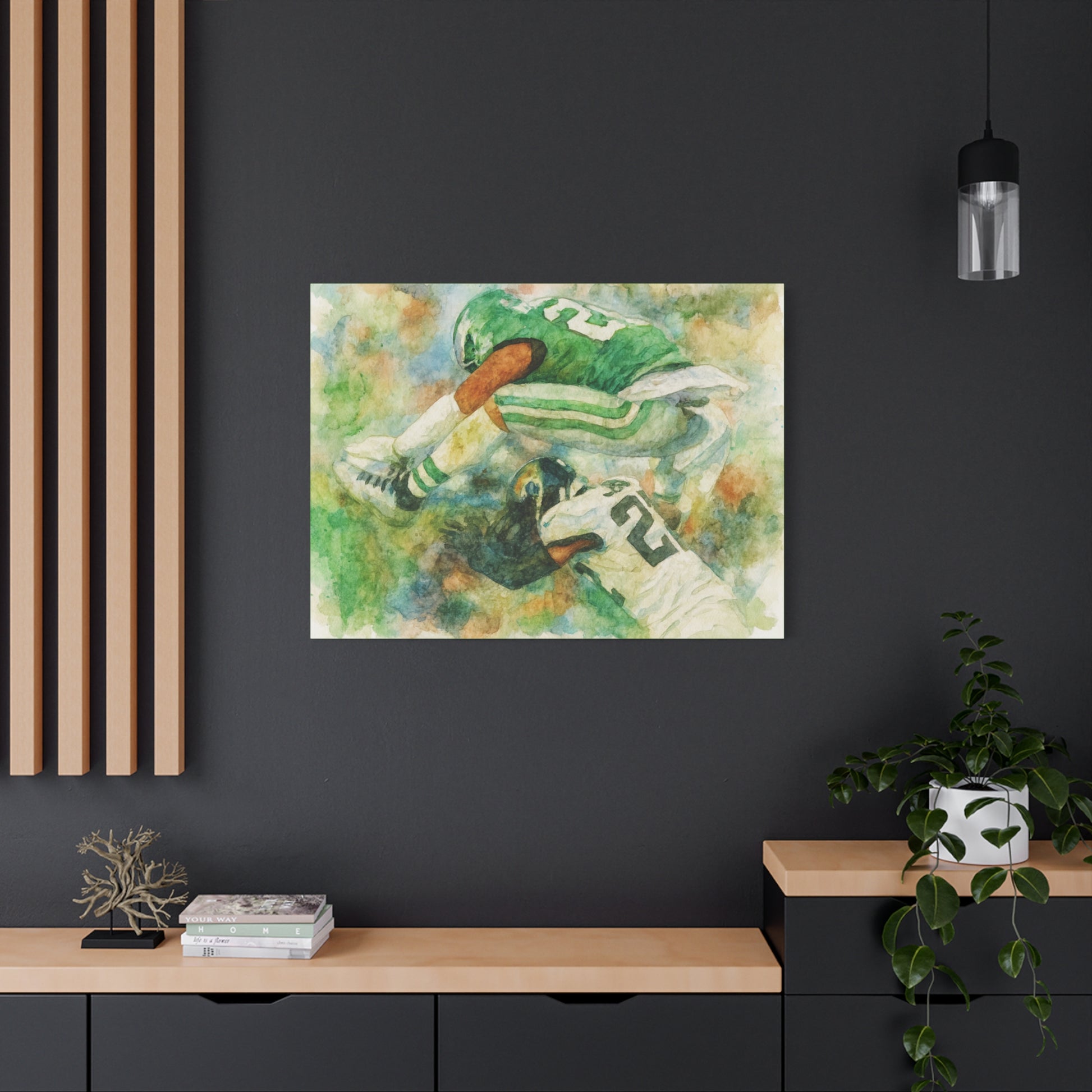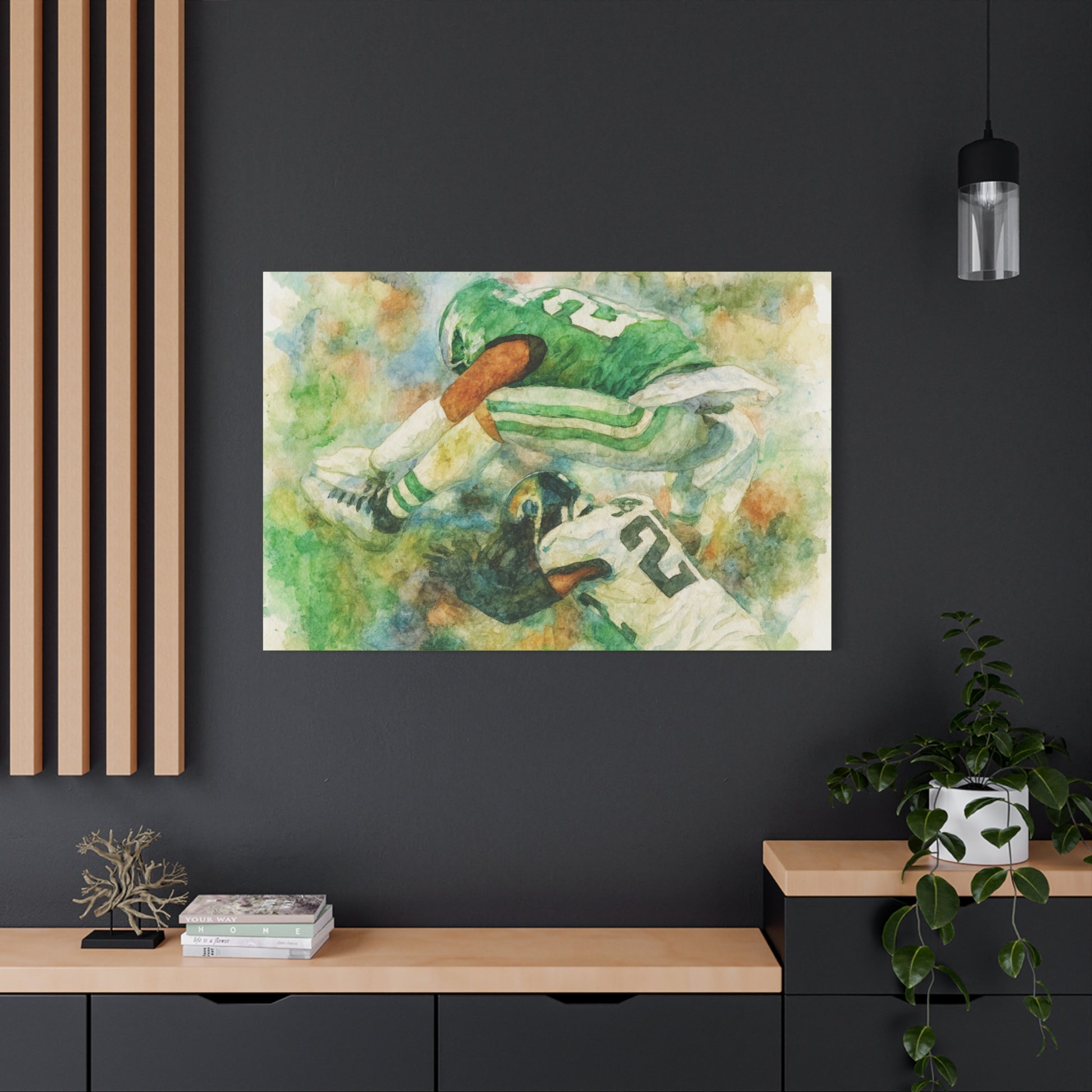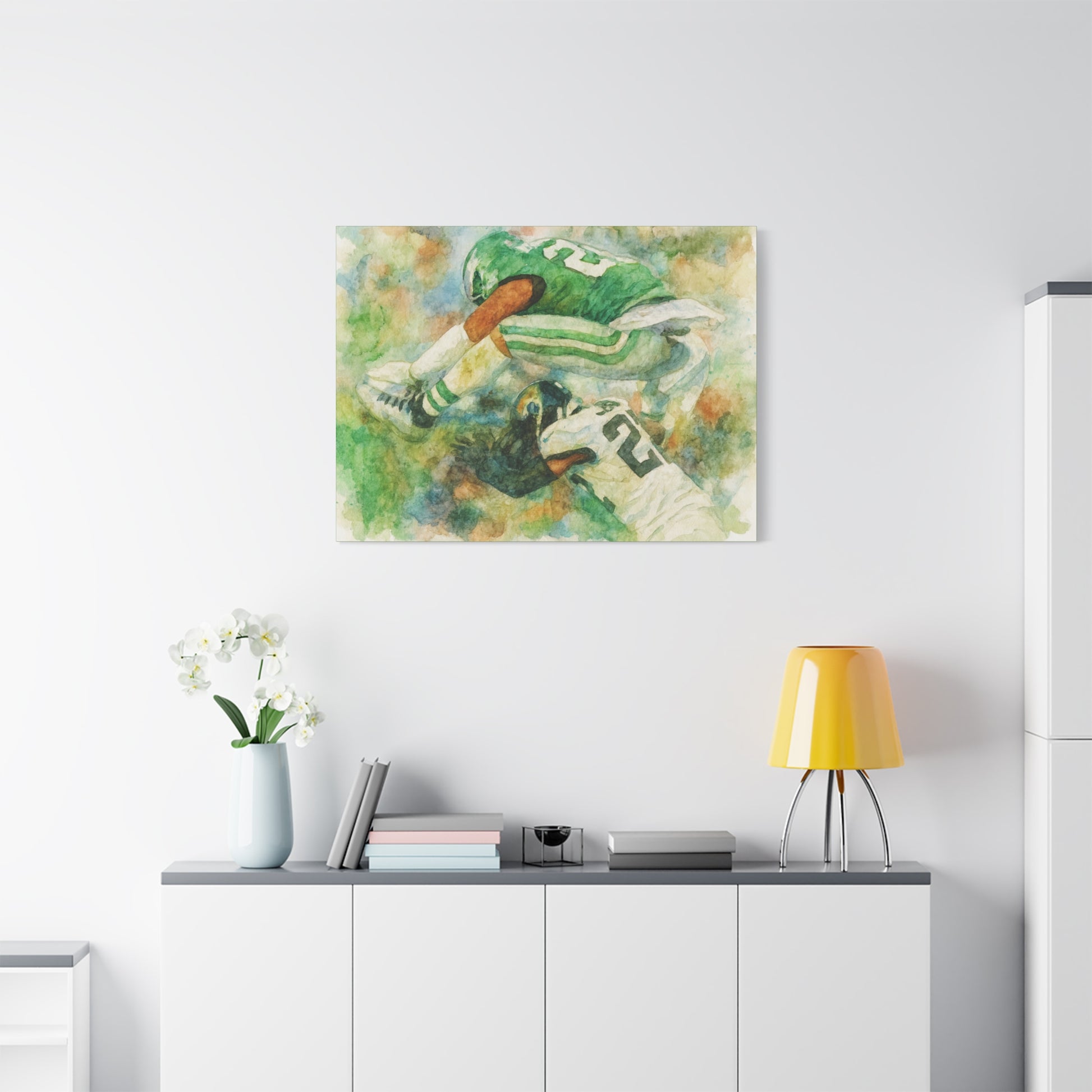 Saquon Barkley Backwards Hurdle Watercolor Canvas | Philadelphia Eagles Football Wall Art Print on 1.25" Canvas | Game Day Fan Cave Gift