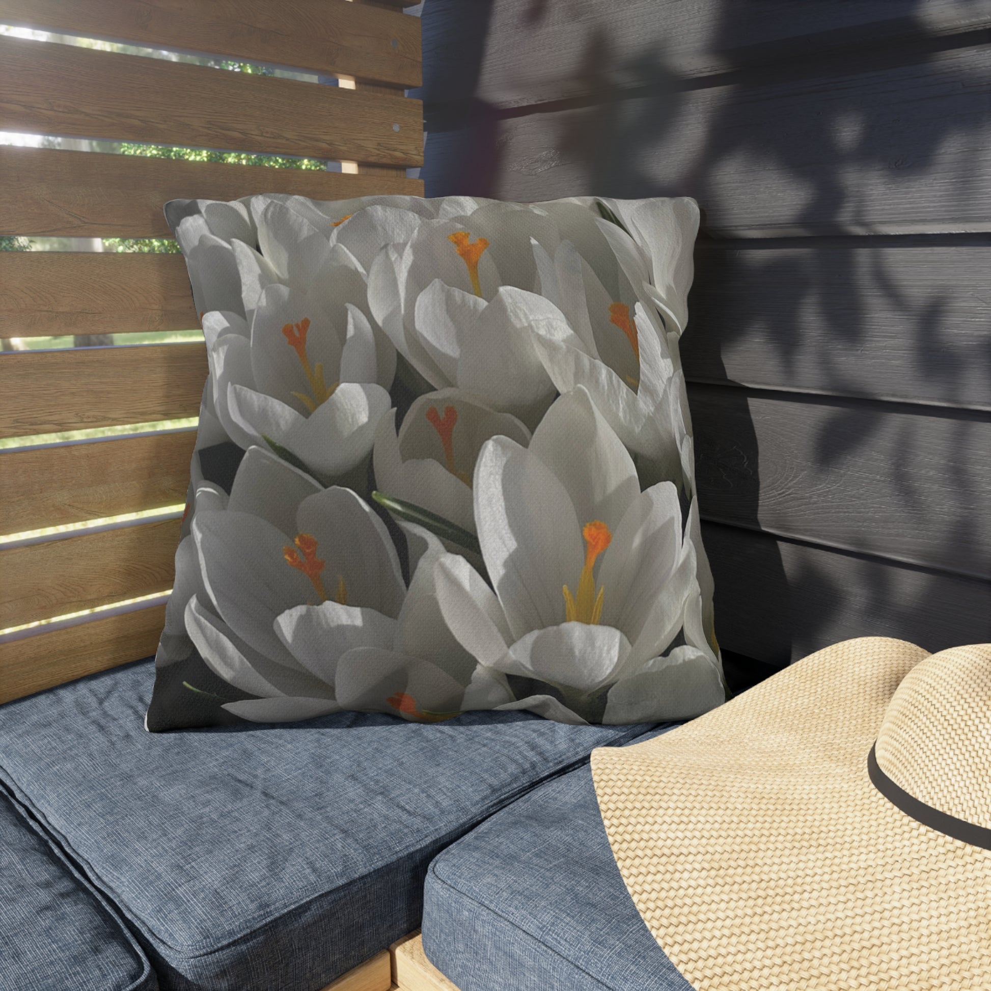 This White Tulip Flower Outdoor Pillow brings a vibrant and inviting atmosphere to any outdoor space. Made from 100% spun polyester, these pillows are comfortable, water, and UV resistant, perfect for adding a pop of color and style to your patio or garden. Ideal for those who enjoy spending time outdoors and hosting gatherings, this pillow is relevant to spring and summer celebrations, garden parties, and outdoor events.