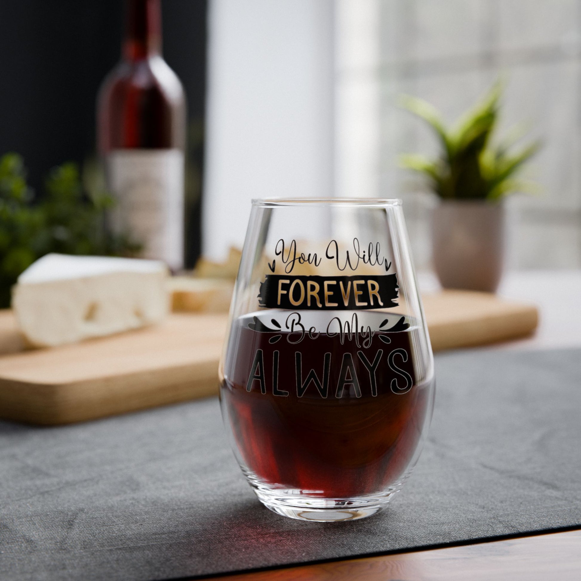 Celebrate a love that lasts forever. Our “You Will Forever Be My Always” Stemless Wine Glass is a heartfelt reminder of devotion, making every sip feel a little more special. Whether you're celebrating an anniversary, Valentine’s Day, a wedding, or simply a quiet evening together, this elegant glass adds a meaningful touch to the moment.